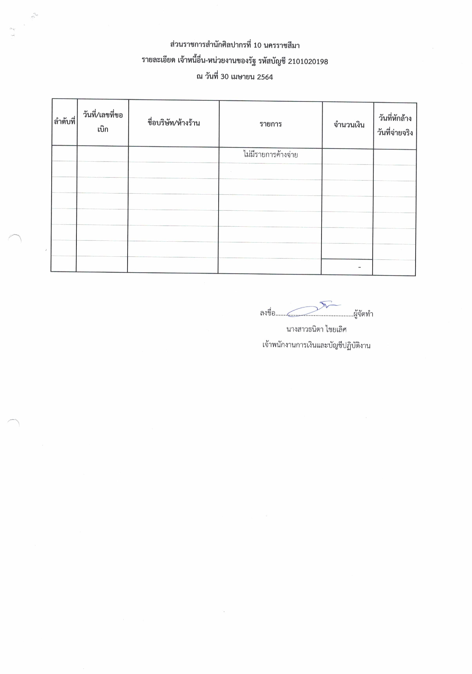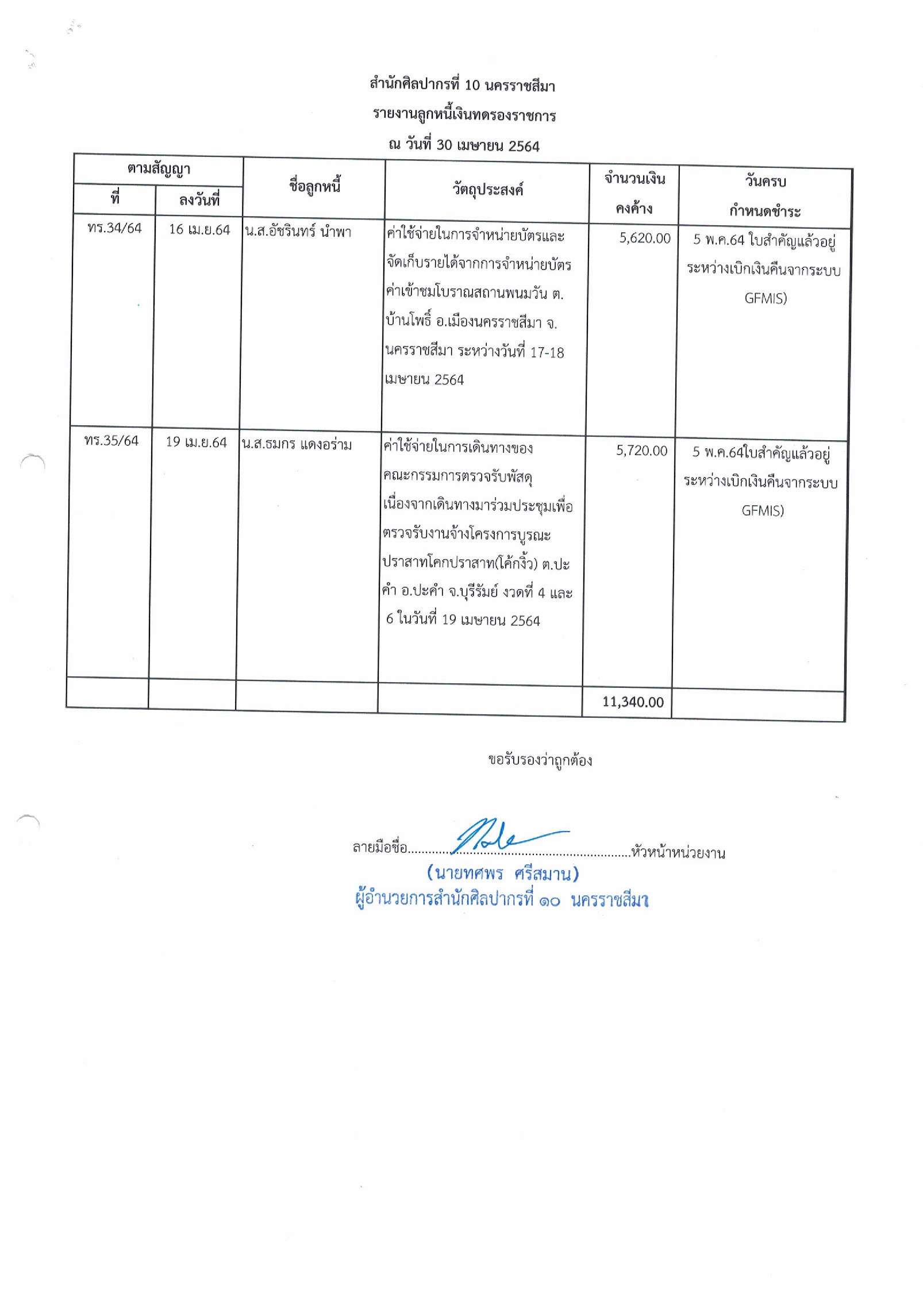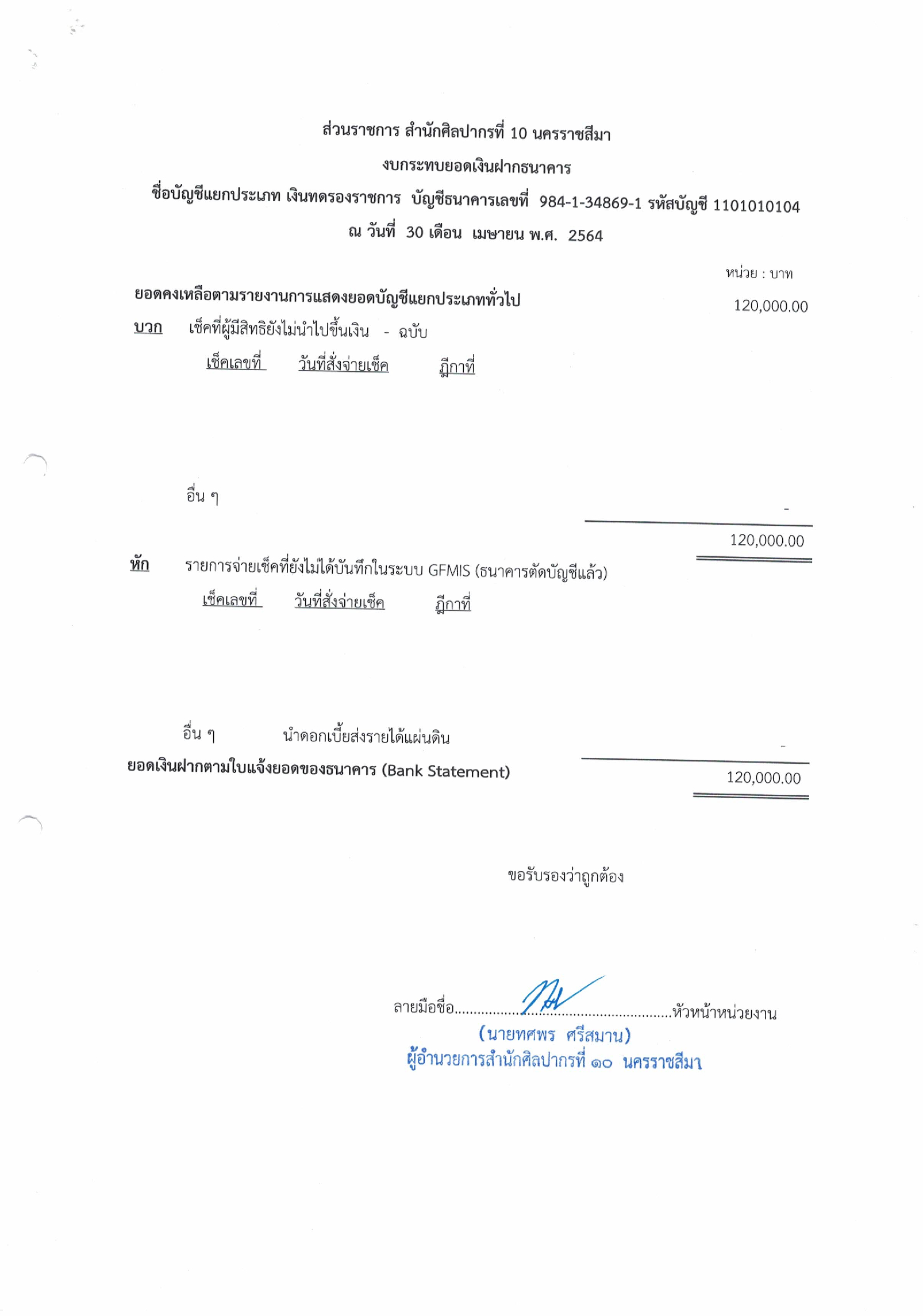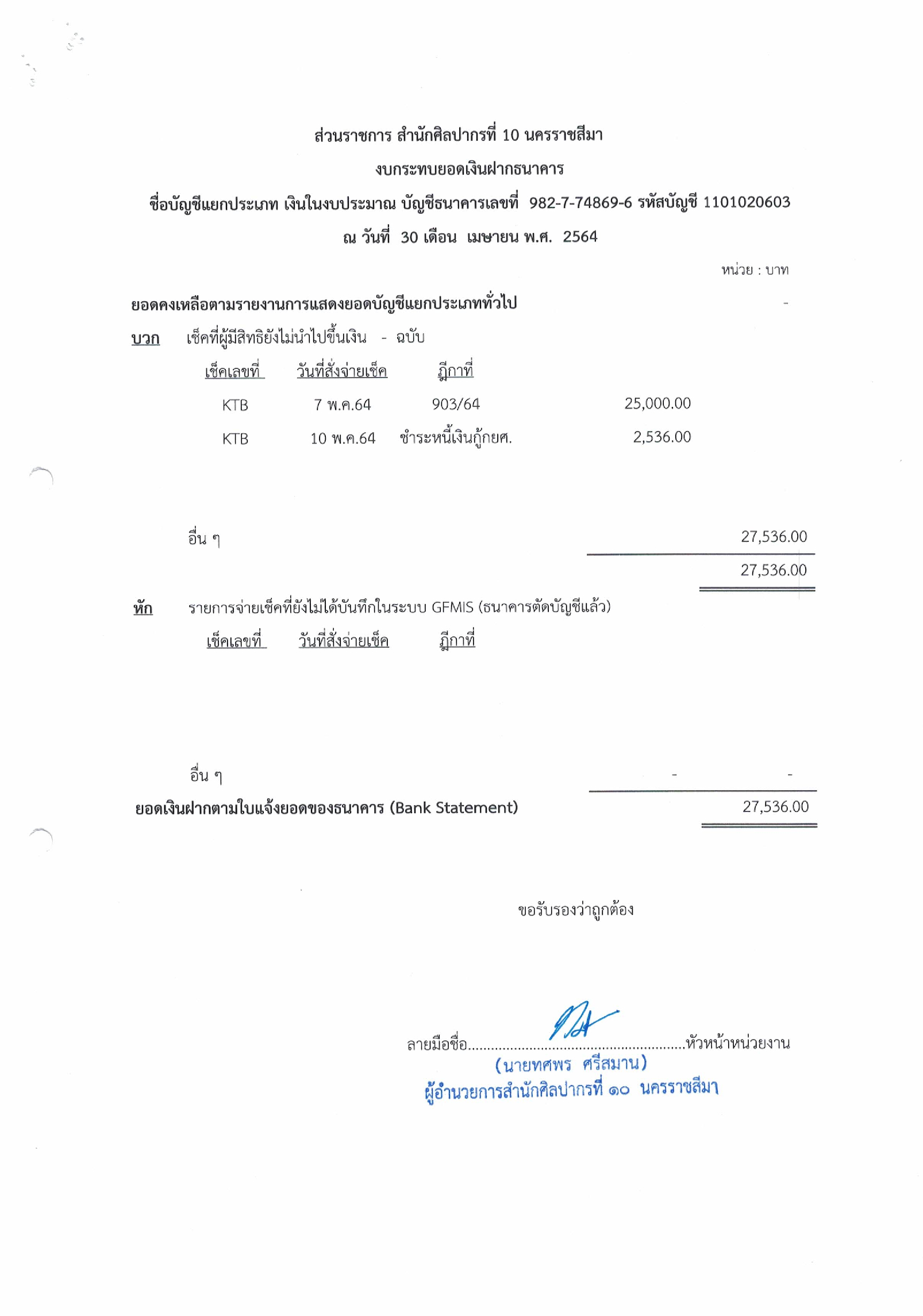 รายงานบัญชีงบทดลองและเอกสารประกอบงบทดลอง สำนักศิลปากรที่ ๑๐ นครราชสีมา (เดือนเมษายน ๒๕๖๔)