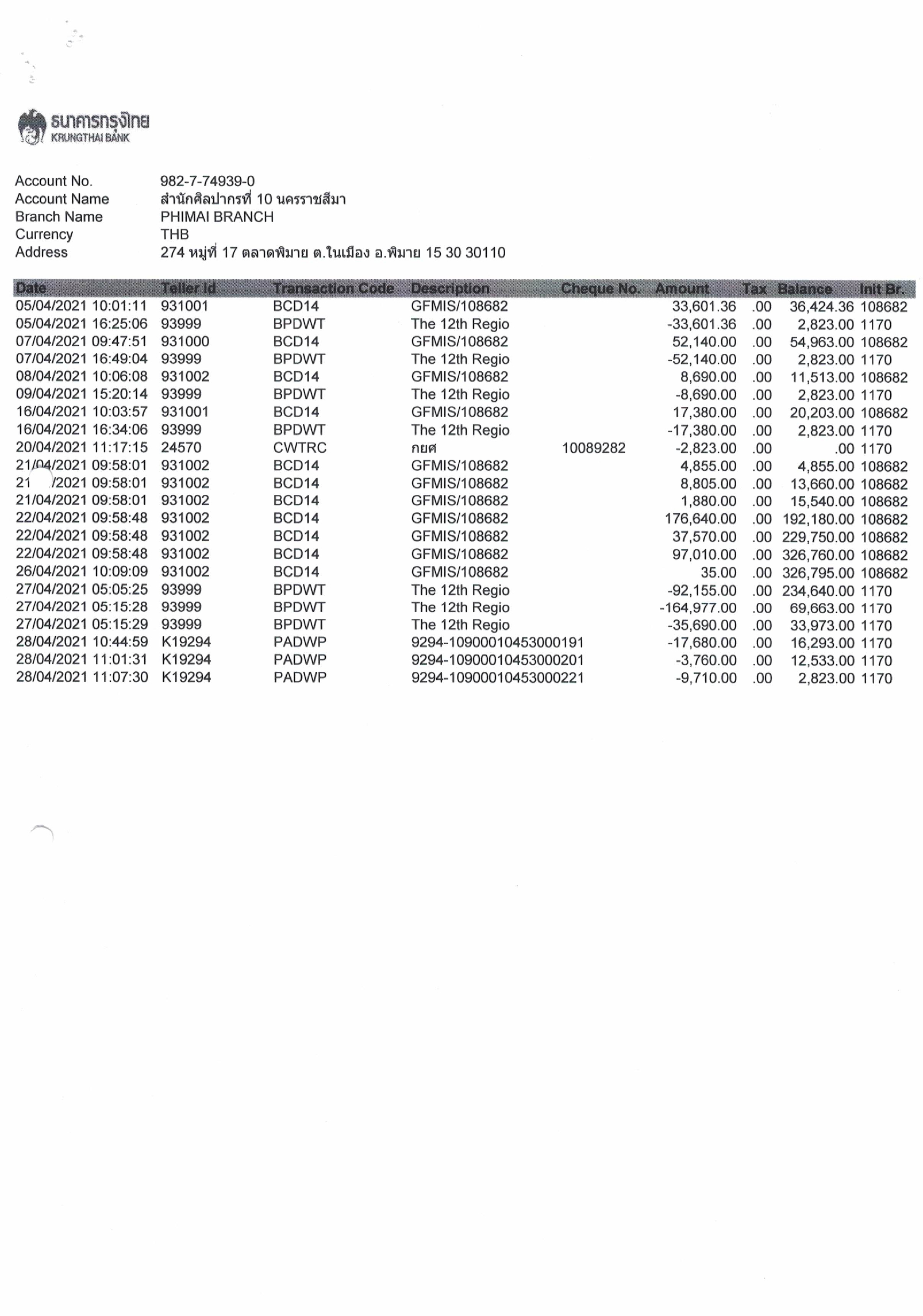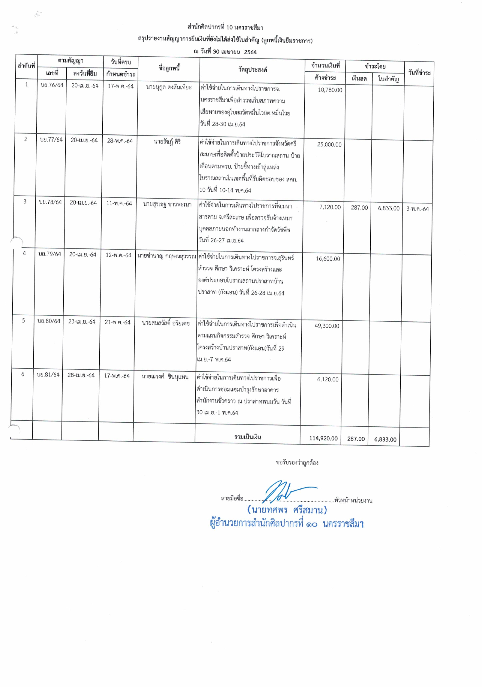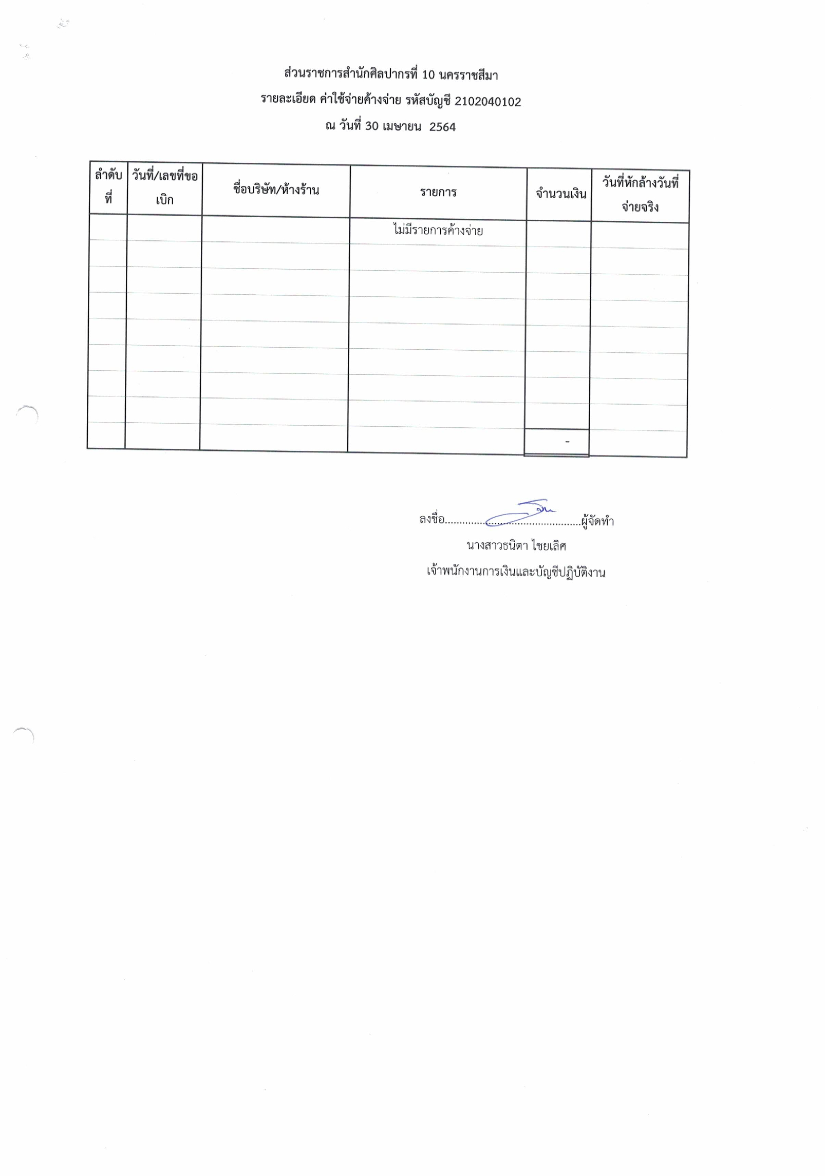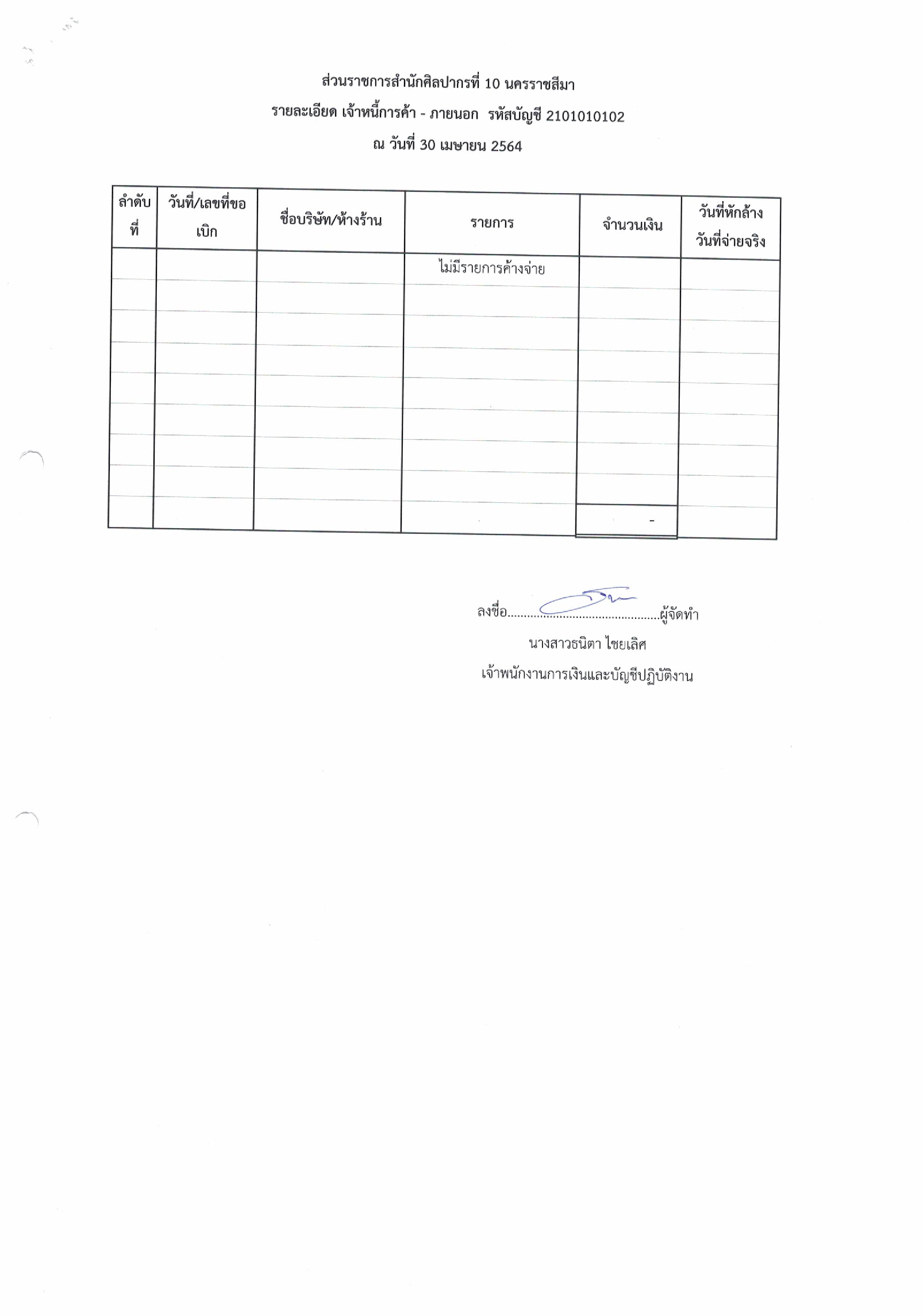 รายงานบัญชีงบทดลองและเอกสารประกอบงบทดลอง สำนักศิลปากรที่ ๑๐ นครราชสีมา (เดือนเมษายน ๒๕๖๔)