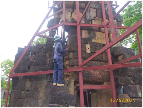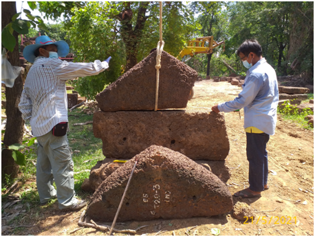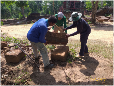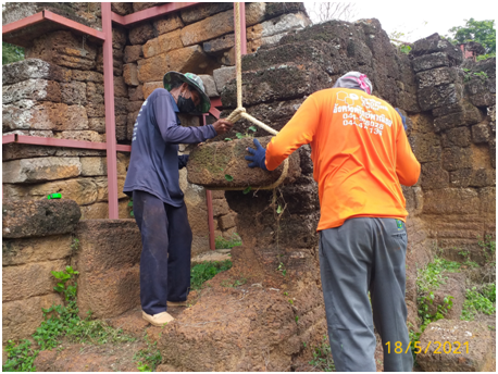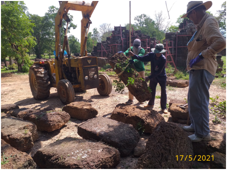 การดำเนินงานตามแผนงานกิจกรรมสำรวจ ศึกษา วิเคราะห์ โครงสร้างและองค์ประกอบโบราณสถานประเภทหินหลังการขุดแต่งทางโบราณคดี โบราณสถานปราสาทบ้านปราสาท(ปราสาทกังแอน) ตำบกระเทียมอำเภอสังขะ จังหวัดสุรินทร์ ระหว่างวันที่ ๑๐ – ๒๑ พฤษภาคม ๒๕๖๔