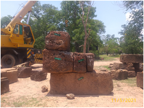 - ทดลองประกอบหินส่วนกำแพงโคปุระ