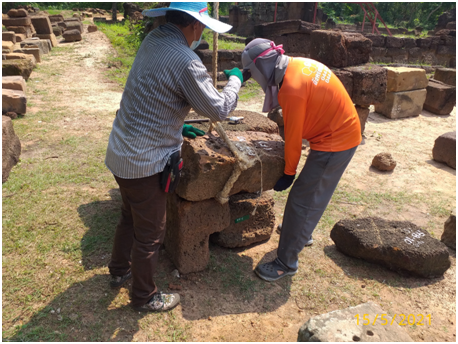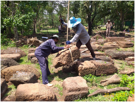 การดำเนินงานตามแผนงานกิจกรรมสำรวจ ศึกษา วิเคราะห์ โครงสร้างและองค์ประกอบโบราณสถานประเภทหินหลังการขุดแต่งทางโบราณคดี โบราณสถานปราสาทบ้านปราสาท(ปราสาทกังแอน) ตำบกระเทียมอำเภอสังขะ จังหวัดสุรินทร์