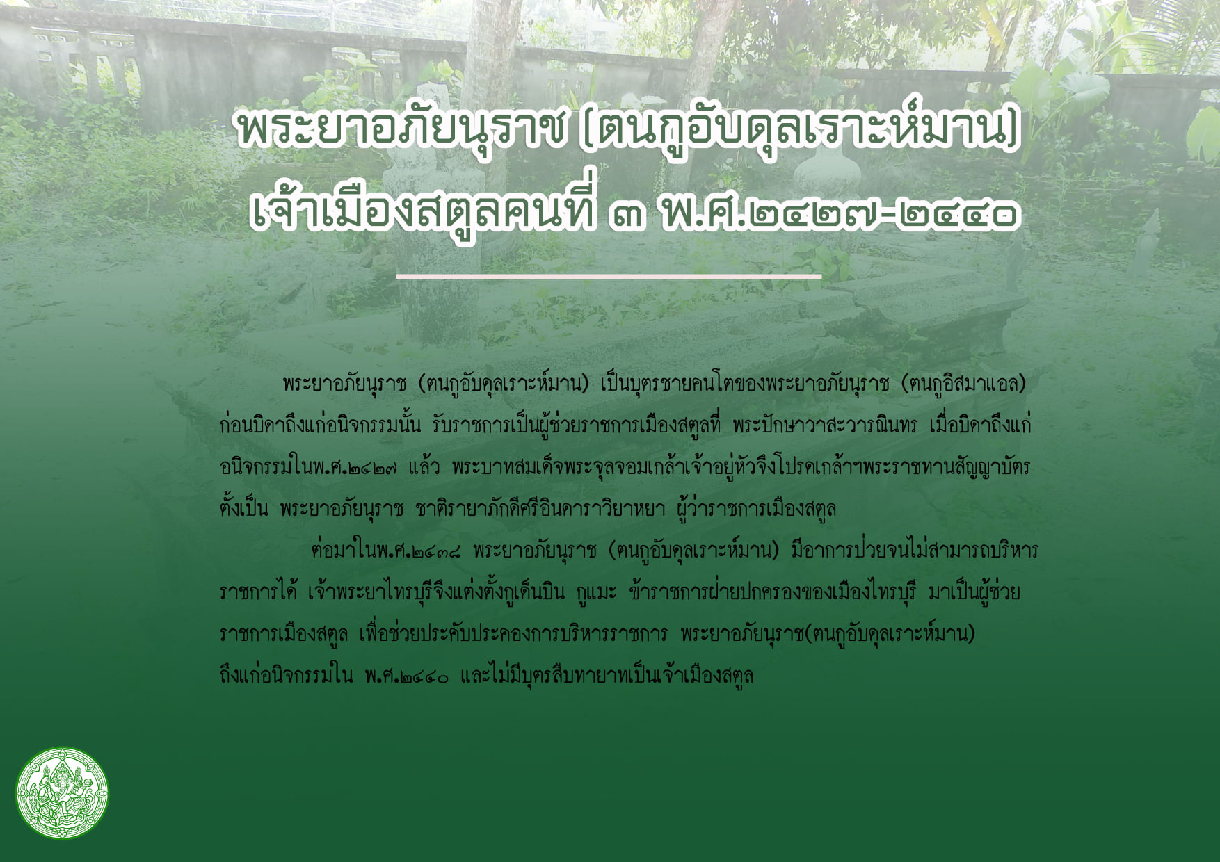 พระยาอภัยนุราช (ตนกูอับดุลเราะห์มาน) เมืองสตูล พ.ศ.๒๔๒๗-๒๔๔๐