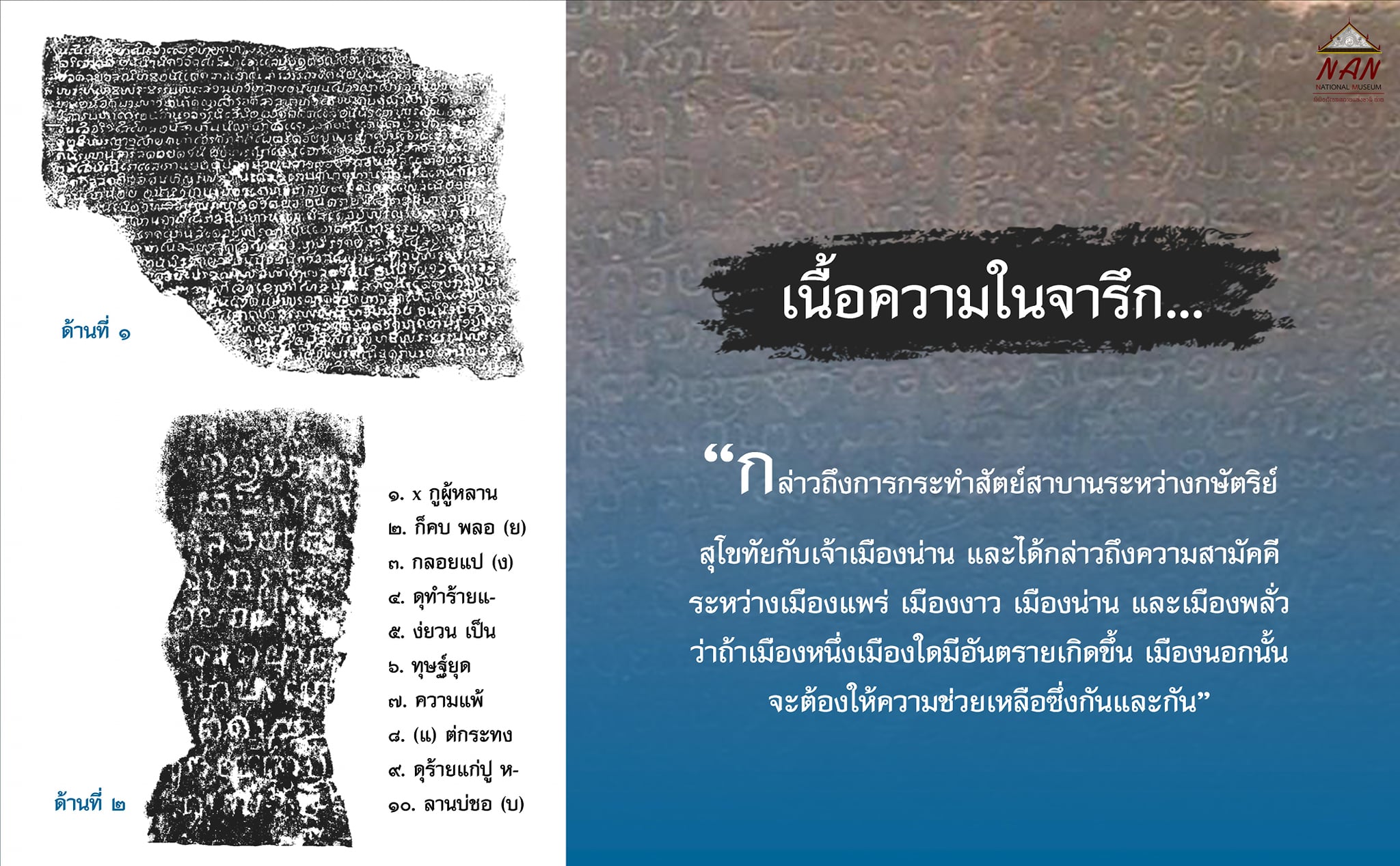 เรื่อง "จารึกคำปู่สบถ สายสัมพันธ์เมืองน่านและสุโขทัย"