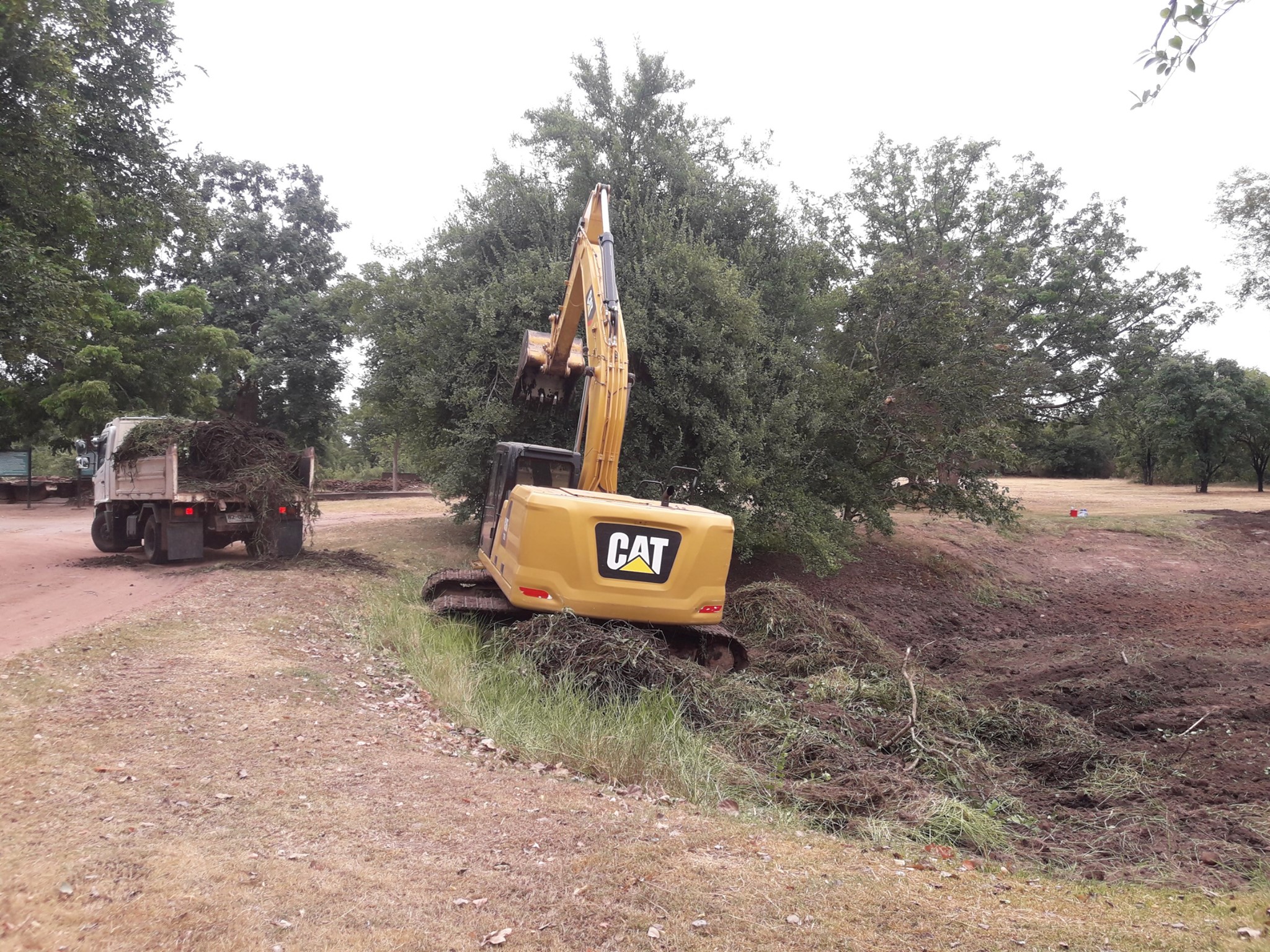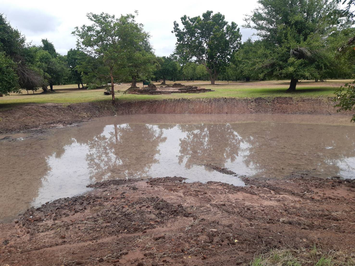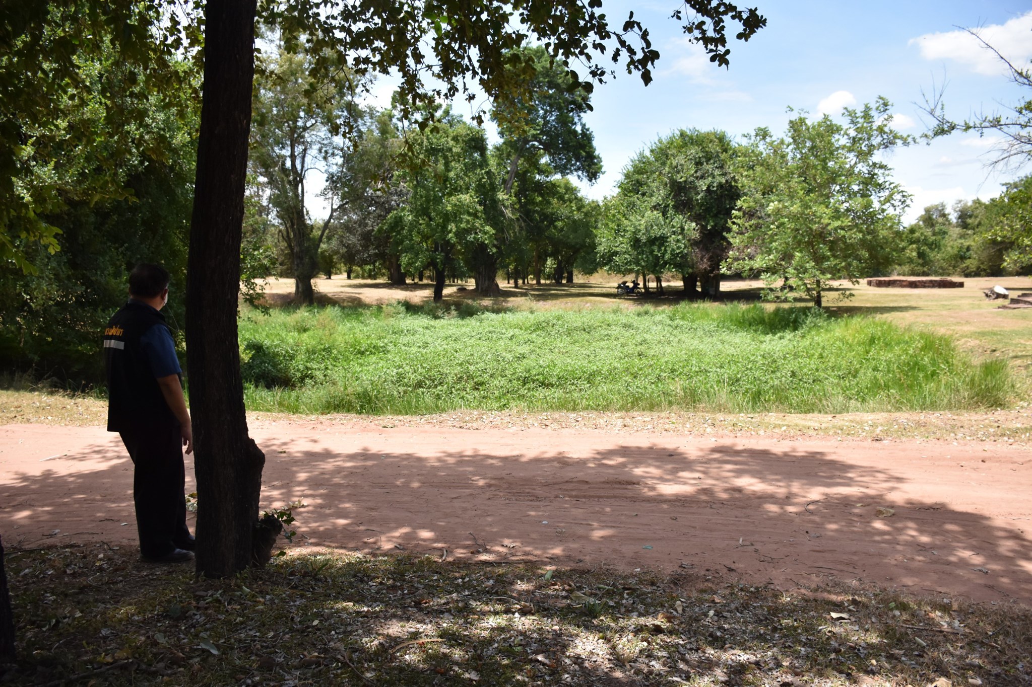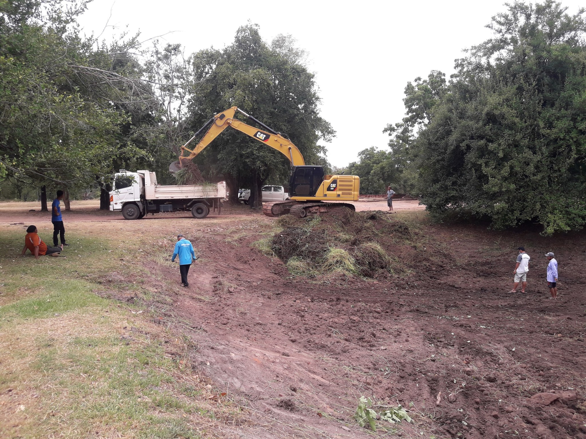 กิจกรรมการดำเนินการขุดลอกวัชพืช ดินโคลนและสิ่งกีดขวางทางน้ำ พร้อมปรับแต่งคันขอบสระตามสภาพ สระน้ำบ่ออีกา ภายในโบราณสถานเมืองเสมา ตำบลเสมา อำเภอสูงเนิน จังหวัดนครราชสีมา ในวันที่ ๖ กรกฎาคม ๒๕๖๔