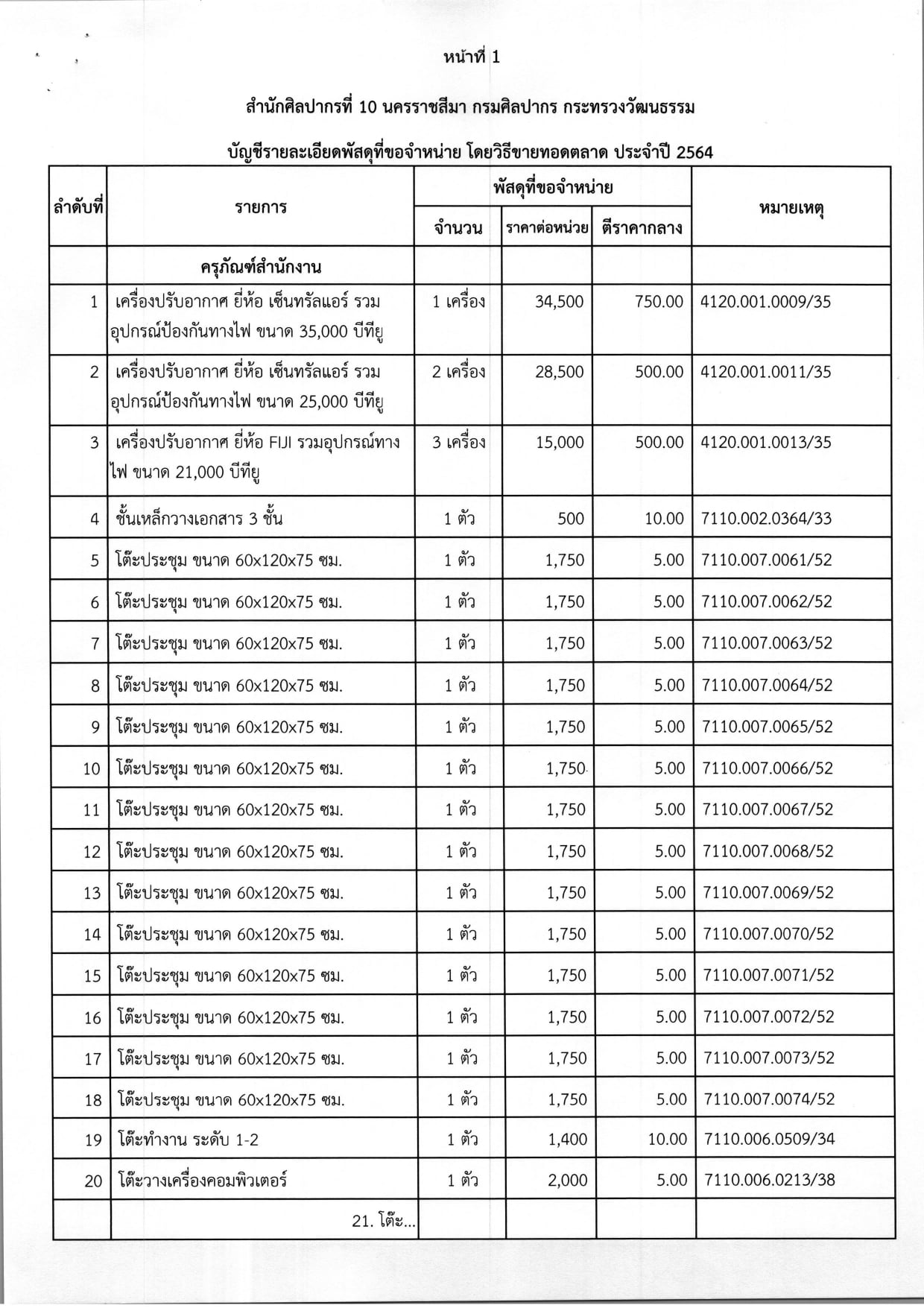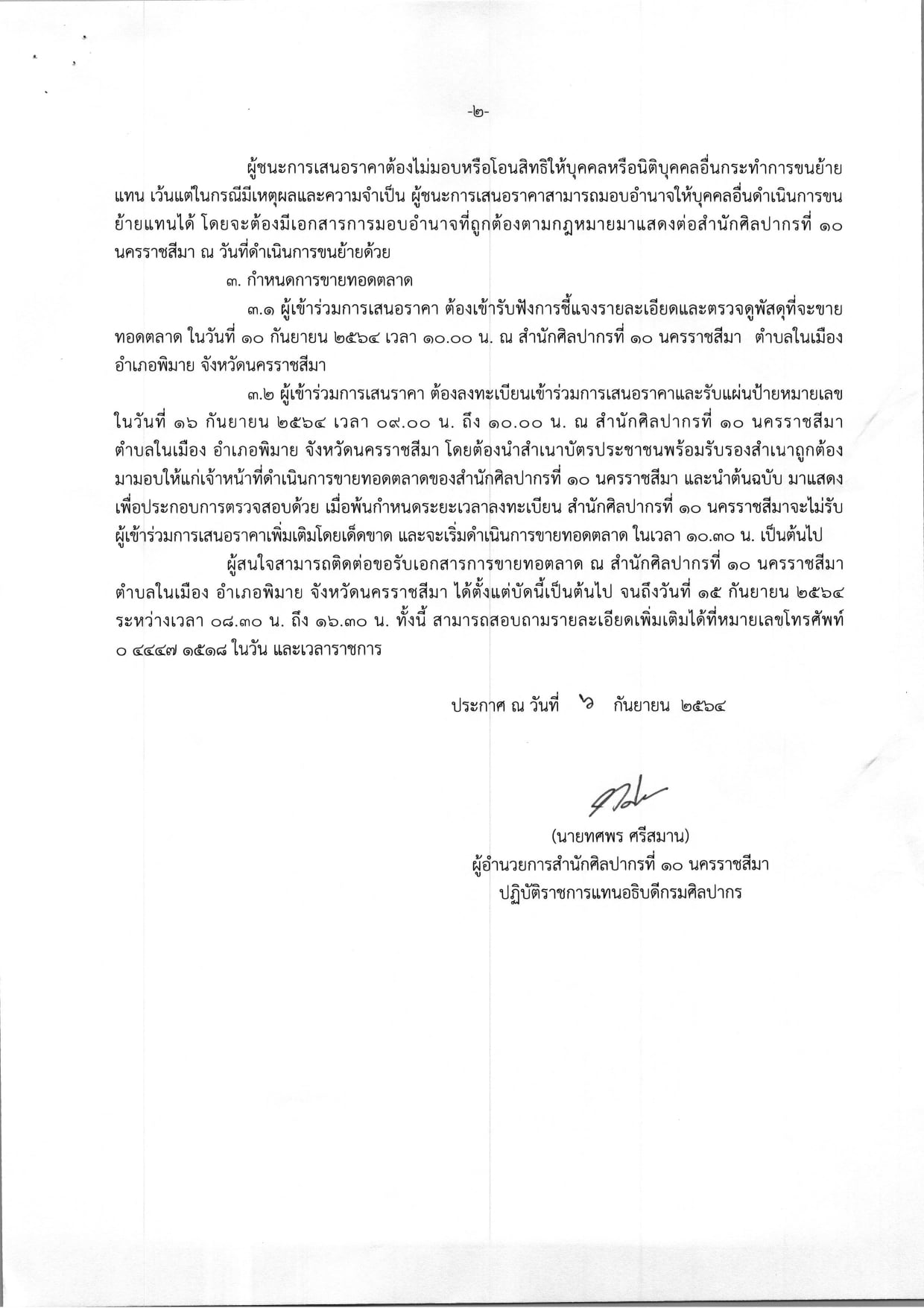 ประกาศสำนักศิลปากรที่ ๑๐ นครราชสีมา เรื่อง ขายทอดตลาดพัสดุ ปีงบประมาณ ๒๕๖๔