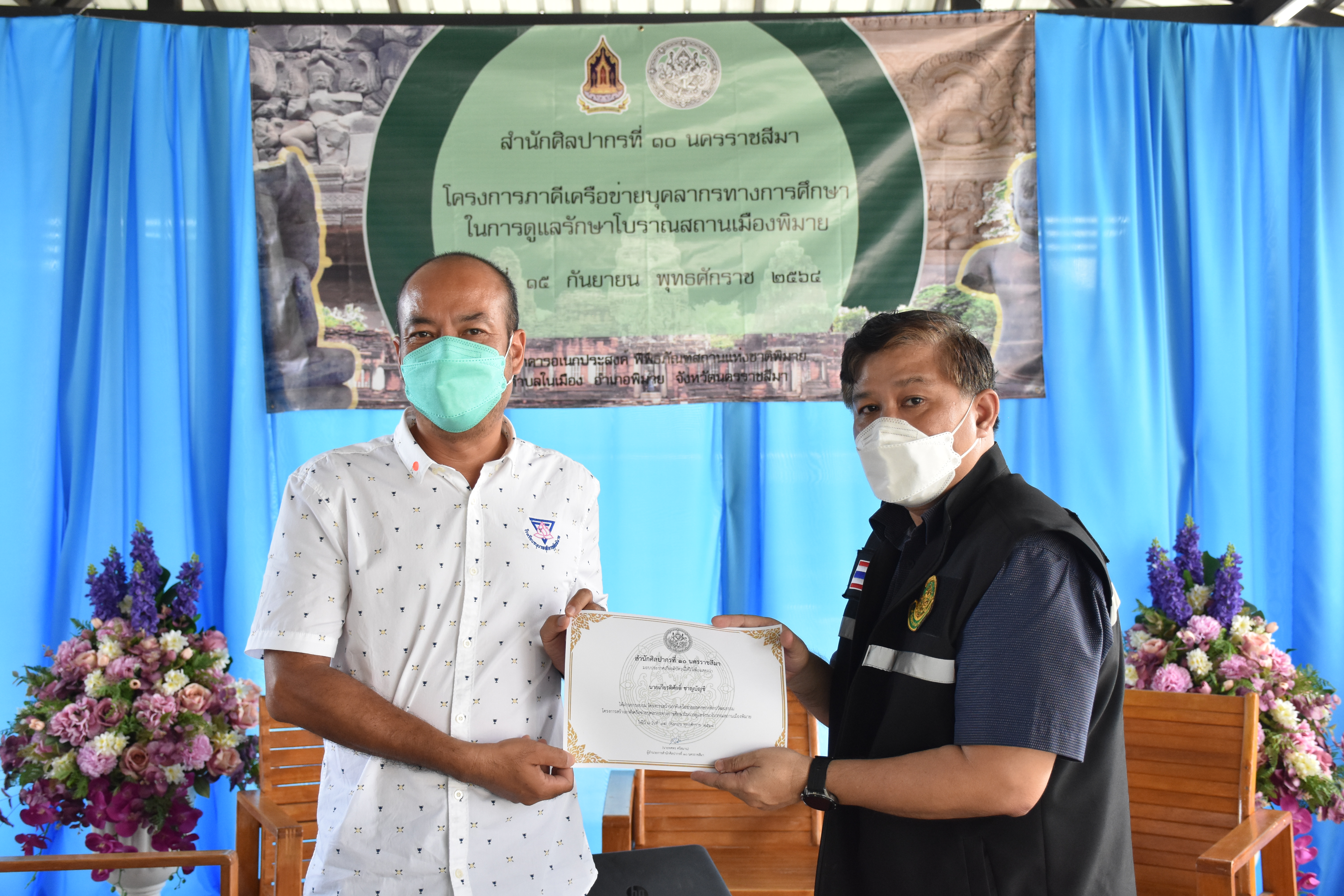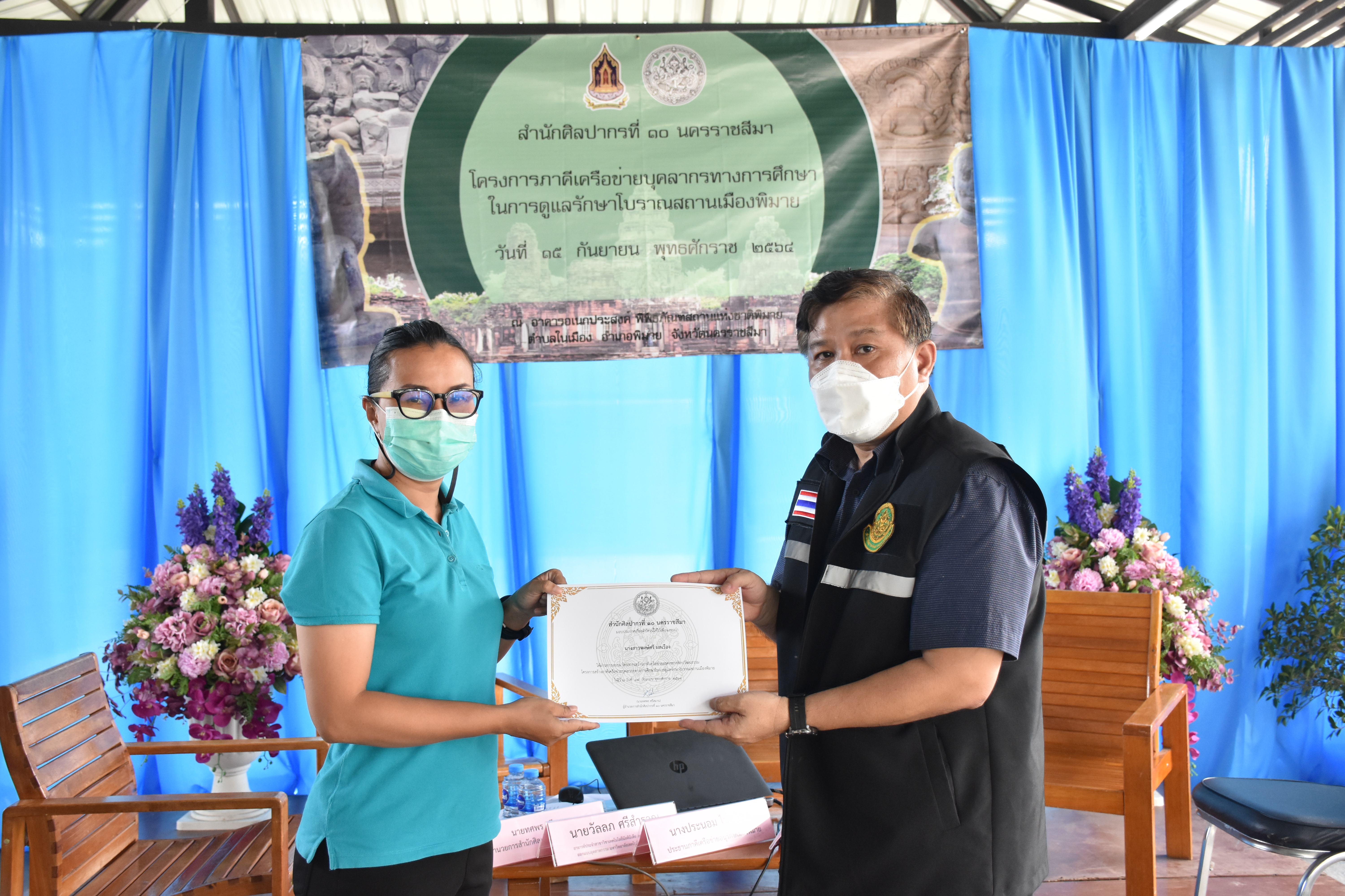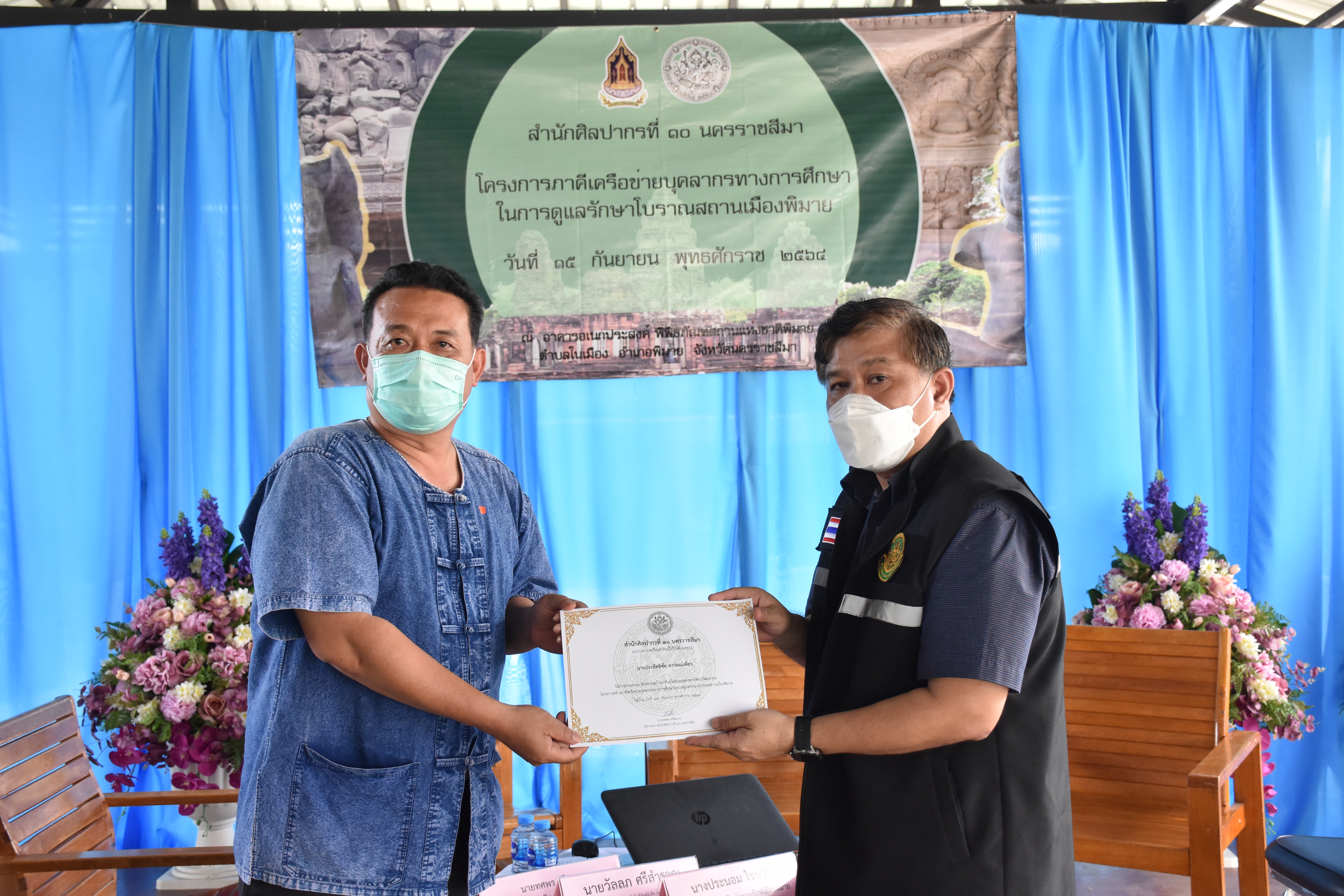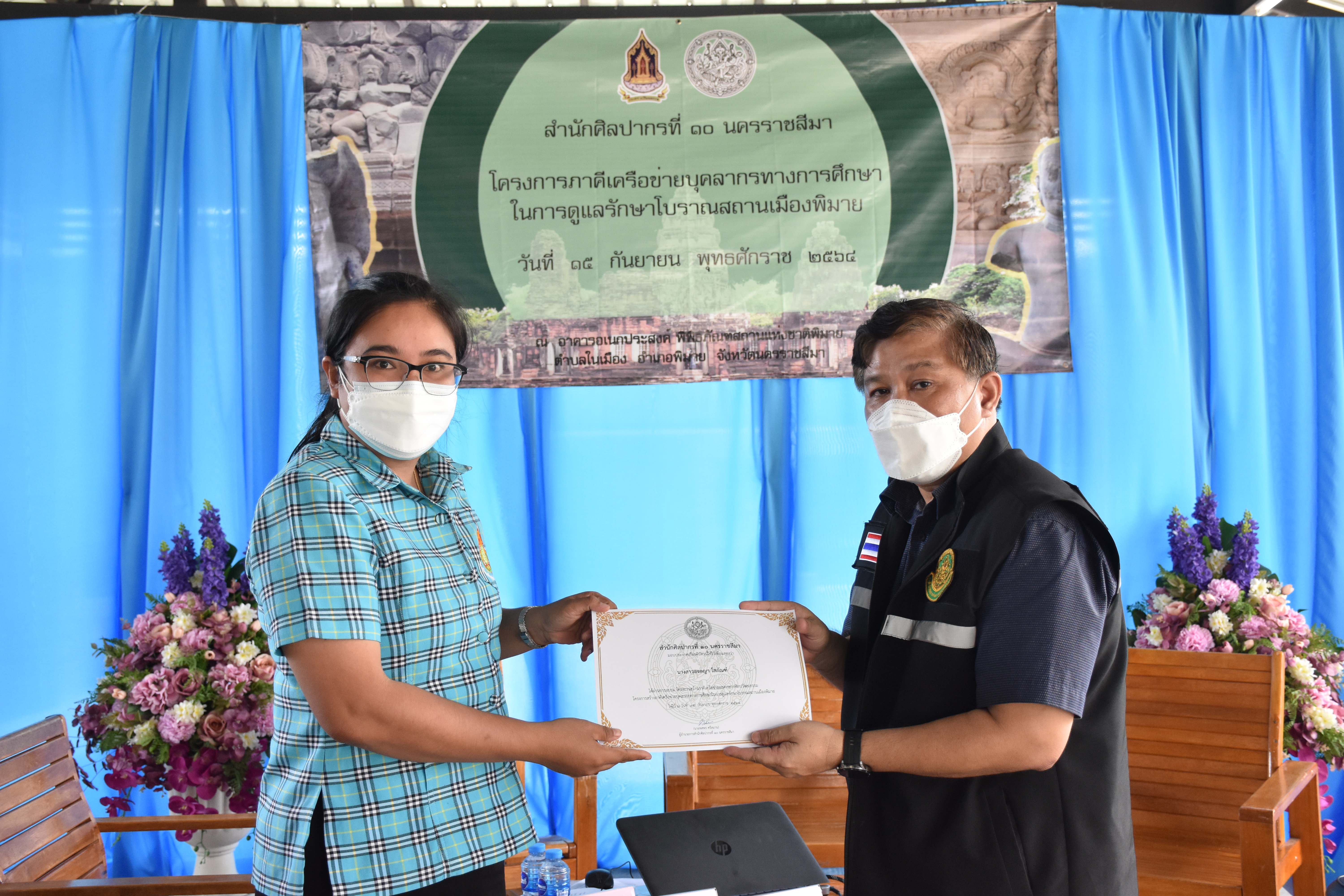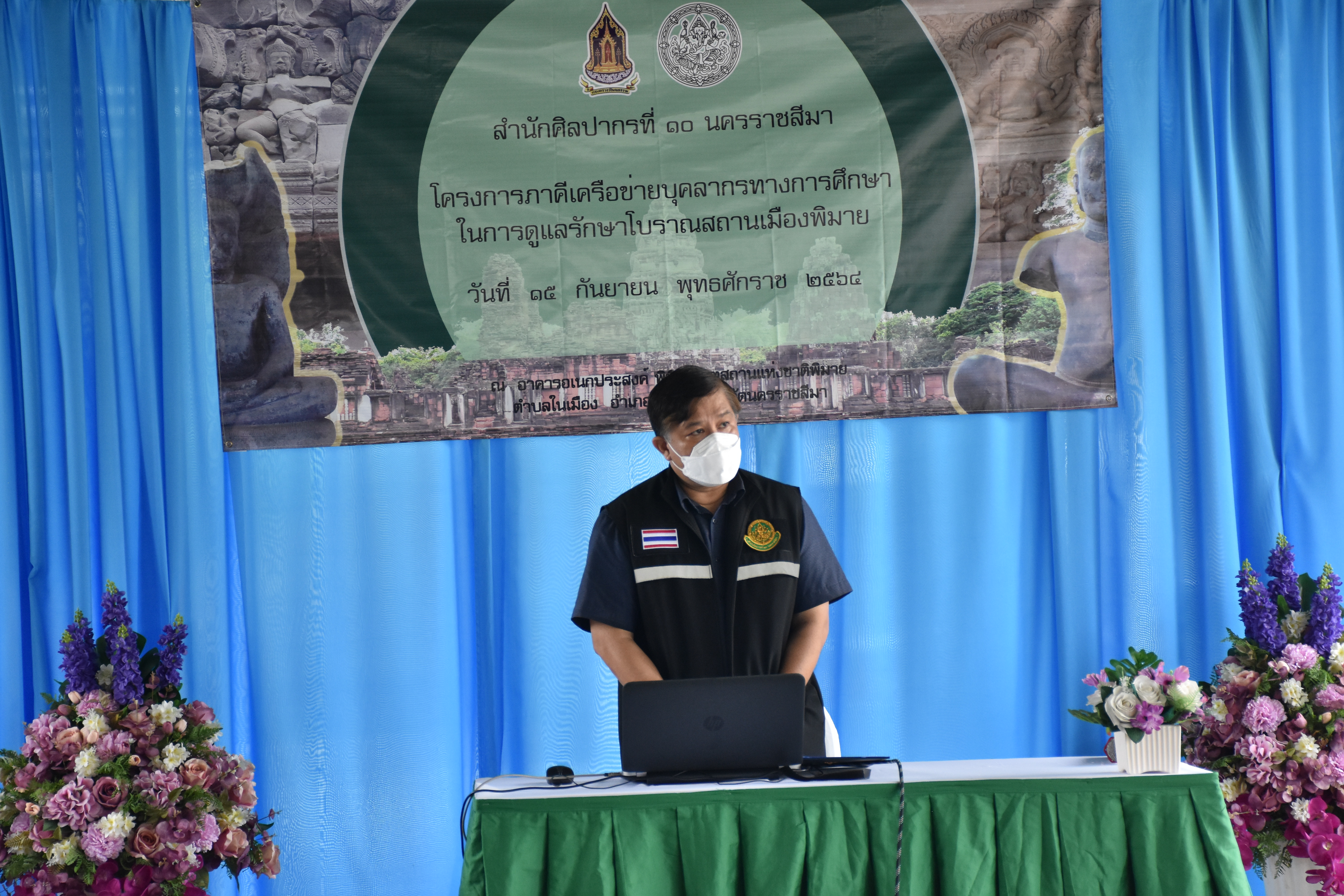 วันพุธที่ ๑๕ กันยายน ๒๕๖๔ สำนักศิลปากรที่ ๑๐ นครราชสีมา จัดโครงการภาคีเครือข่ายบุคลากรทางการศึกษาในการดูแลรักษาโบราณสถานเมืองพิมาย ณ พิพิธภัณฑสถานแห่งชาติพิมาย