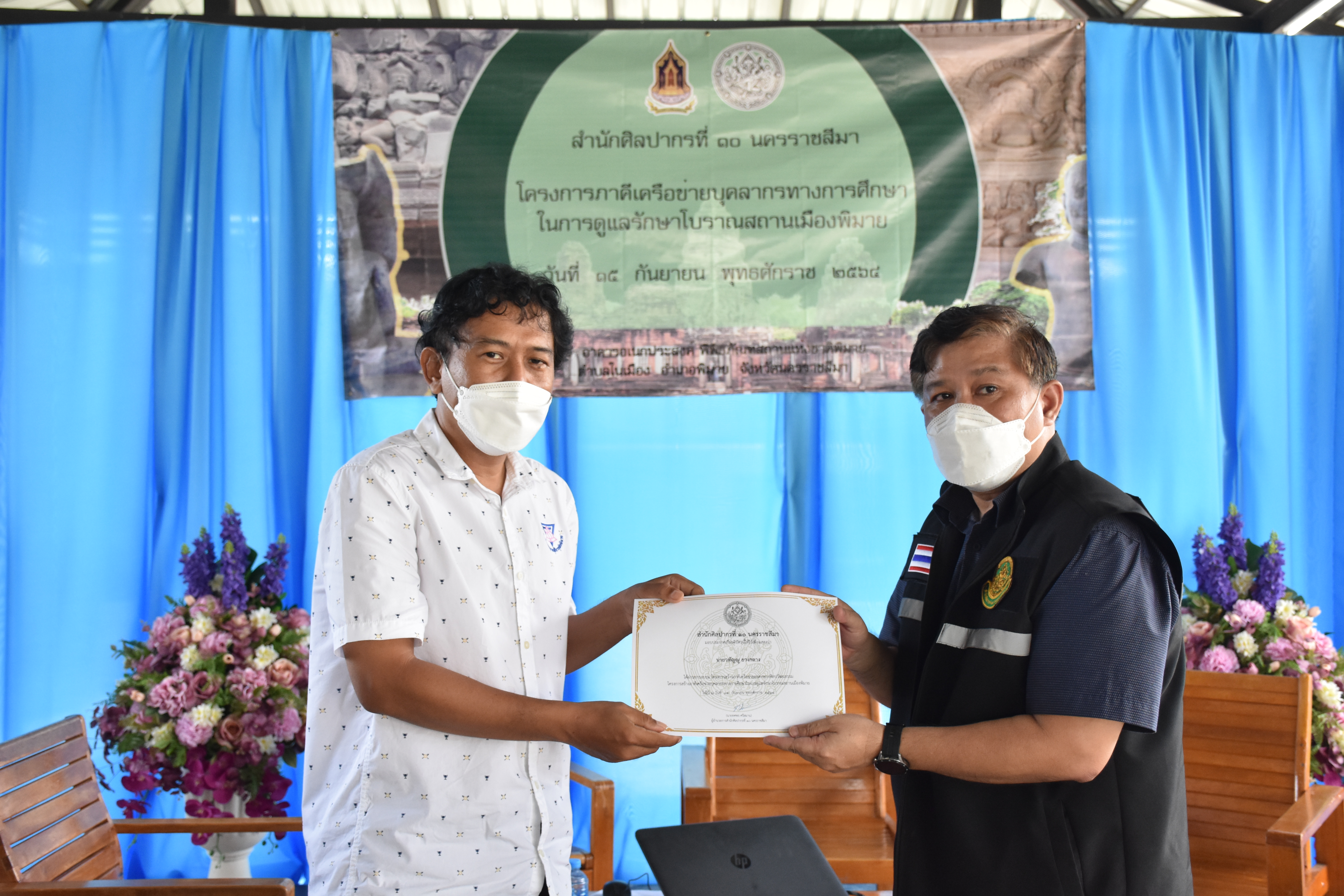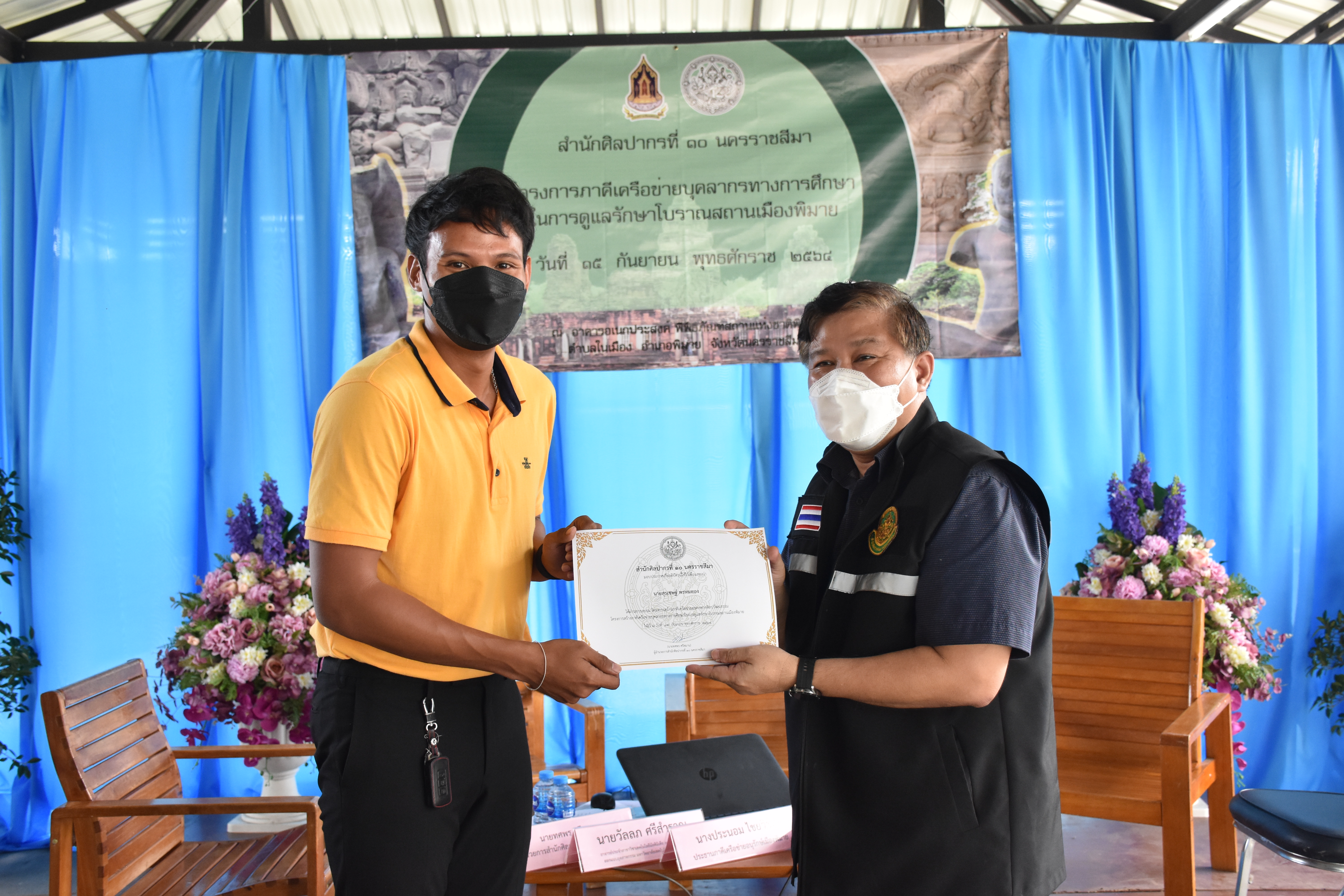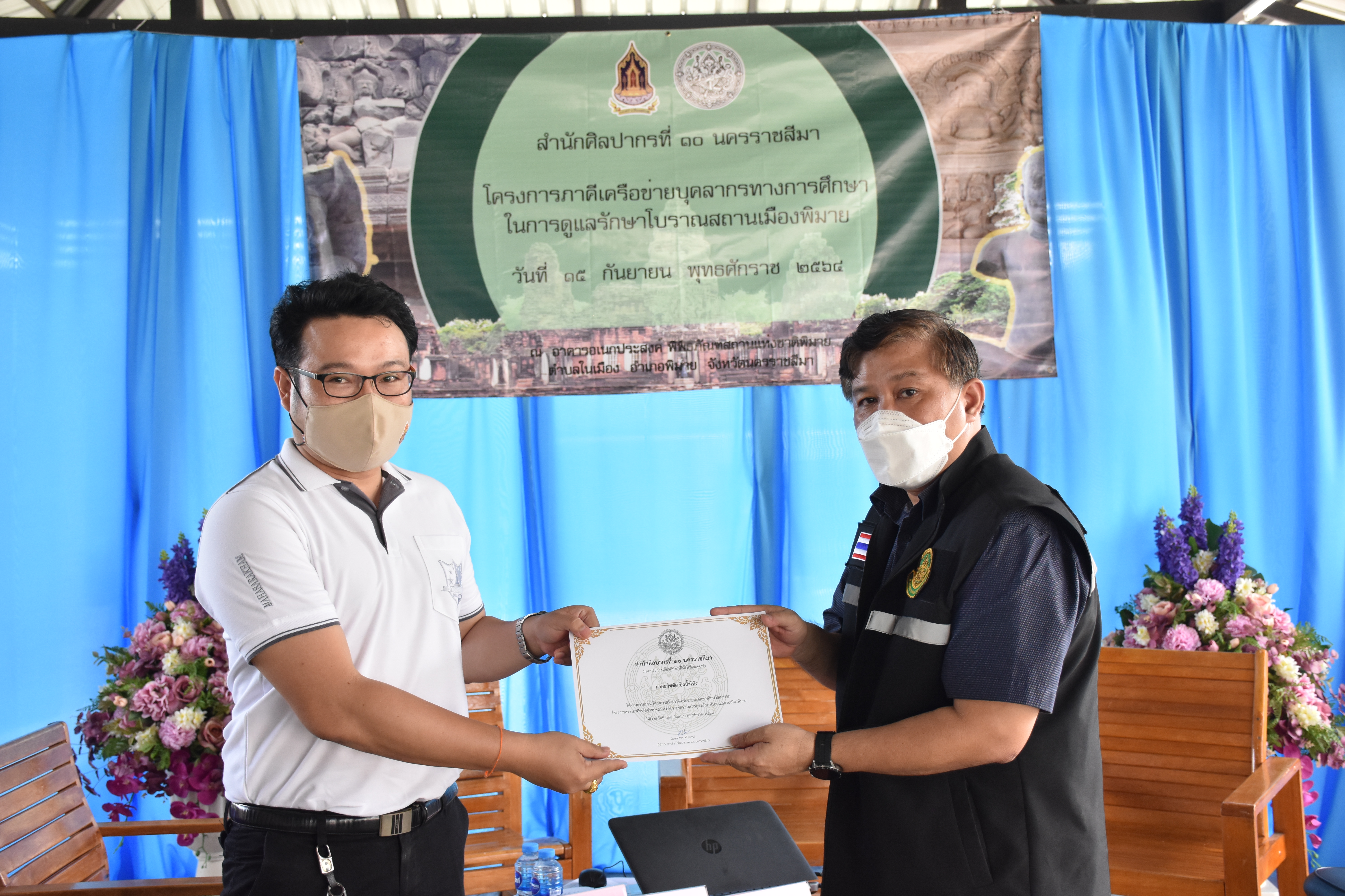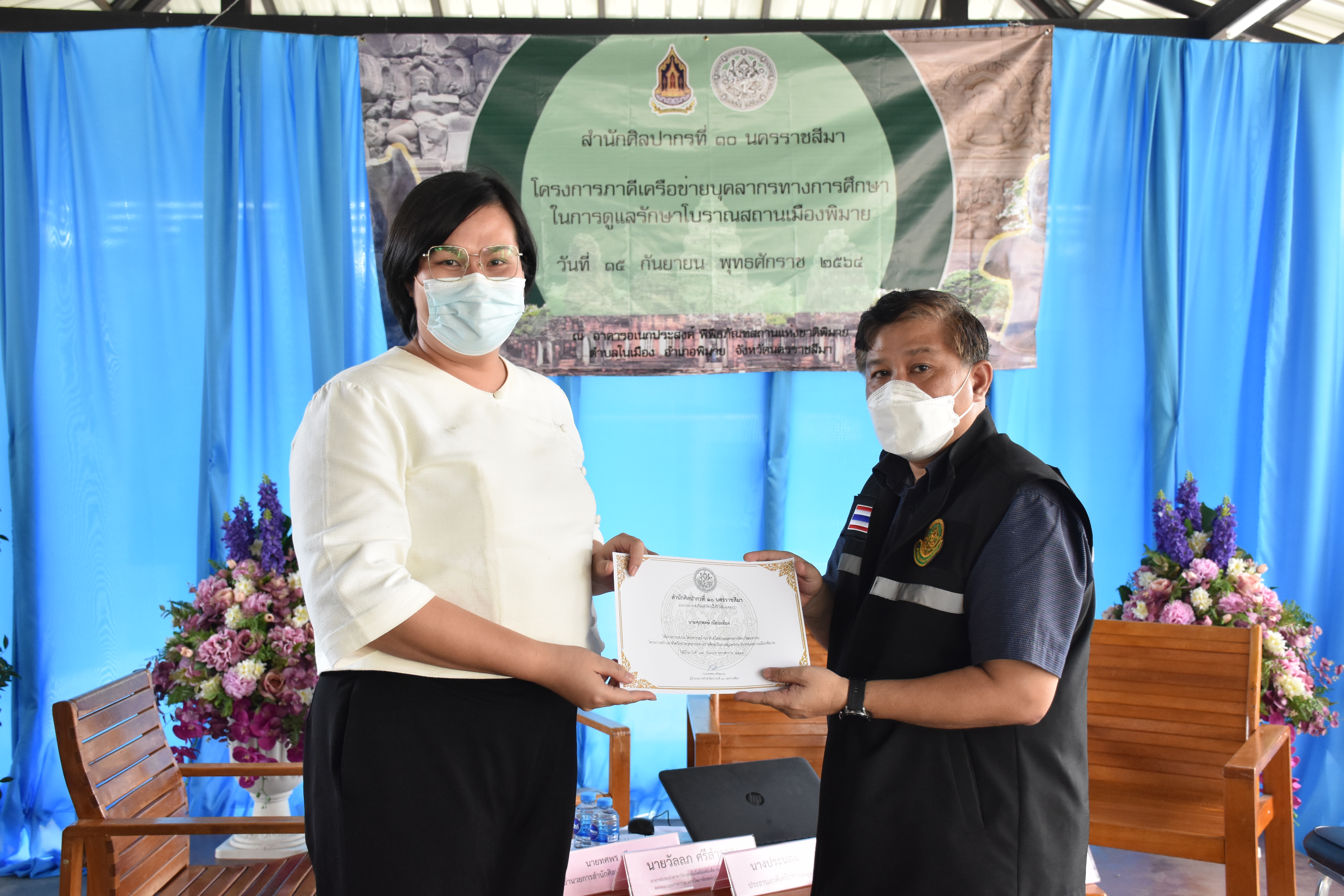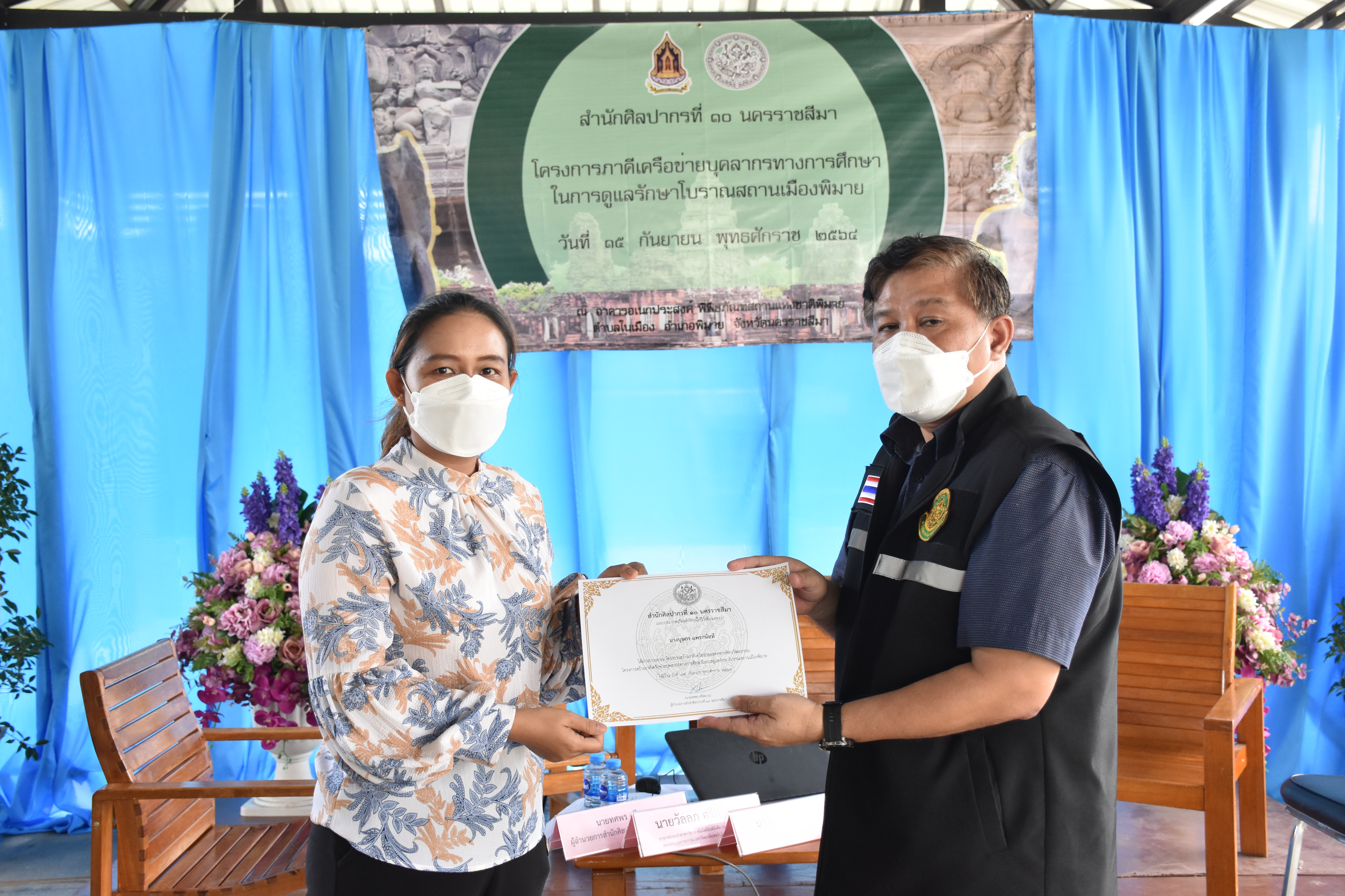 วันพุธที่ ๑๕ กันยายน ๒๕๖๔ สำนักศิลปากรที่ ๑๐ นครราชสีมา จัดโครงการภาคีเครือข่ายบุคลากรทางการศึกษาในการดูแลรักษาโบราณสถานเมืองพิมาย ณ พิพิธภัณฑสถานแห่งชาติพิมาย