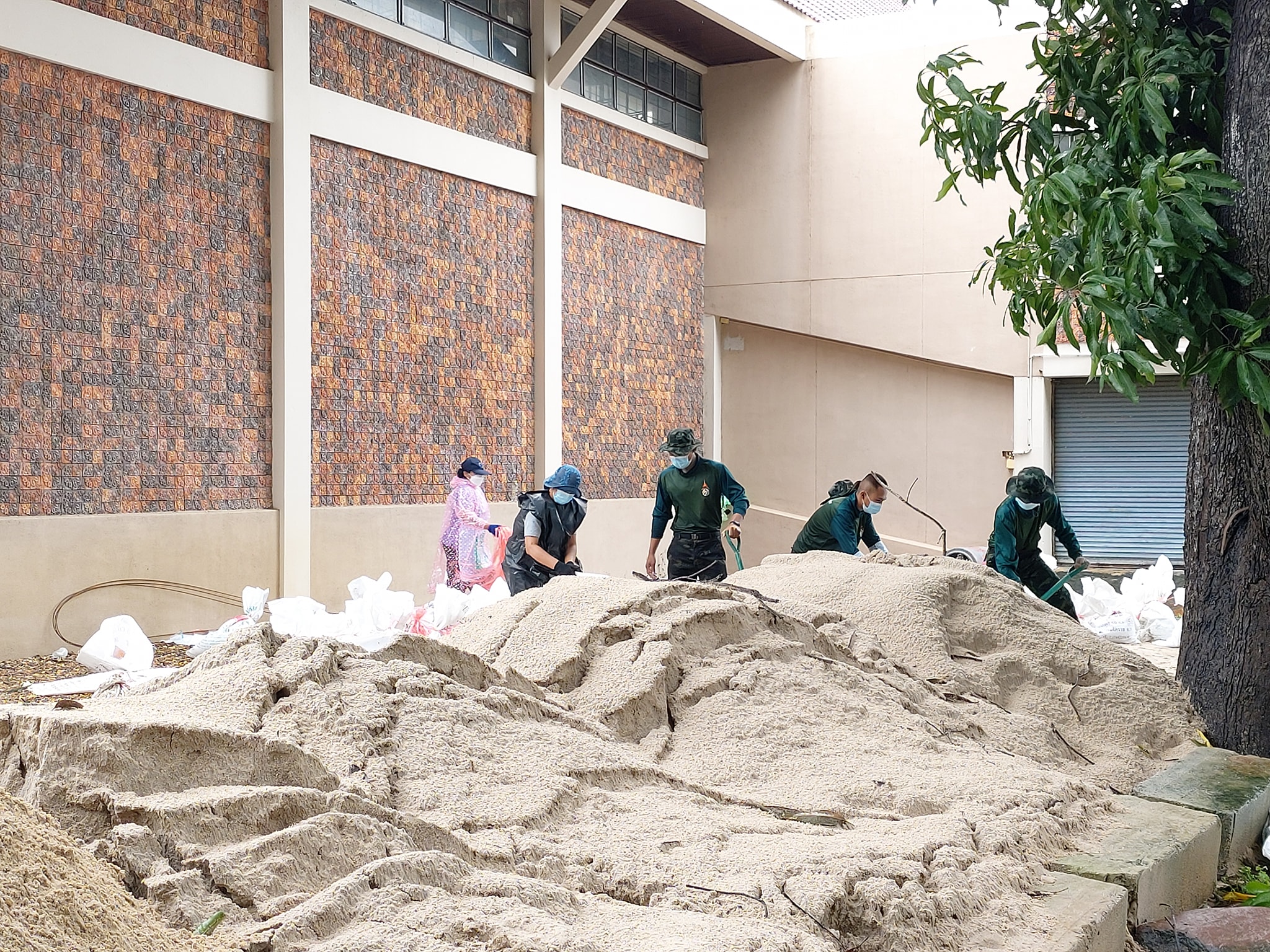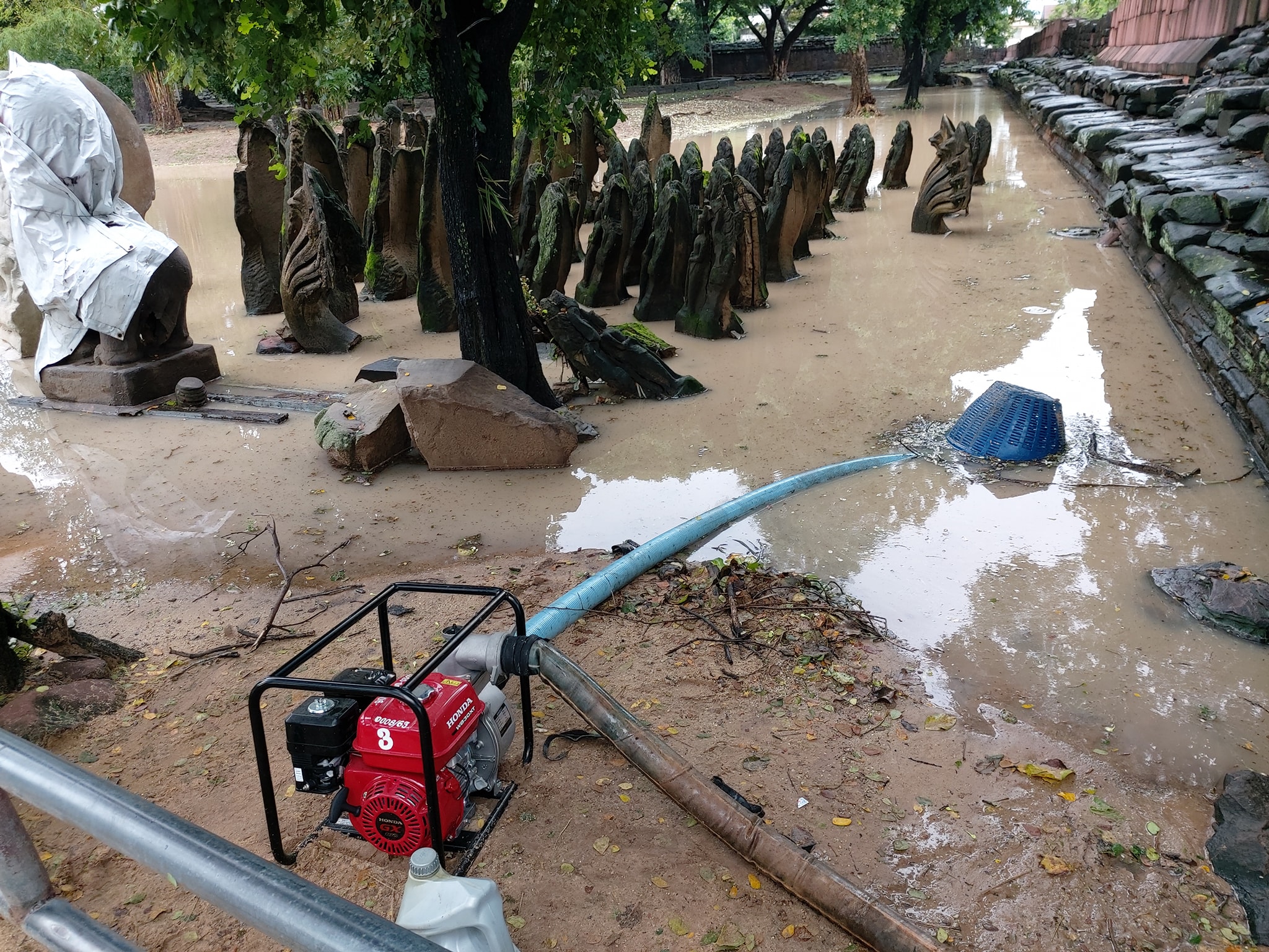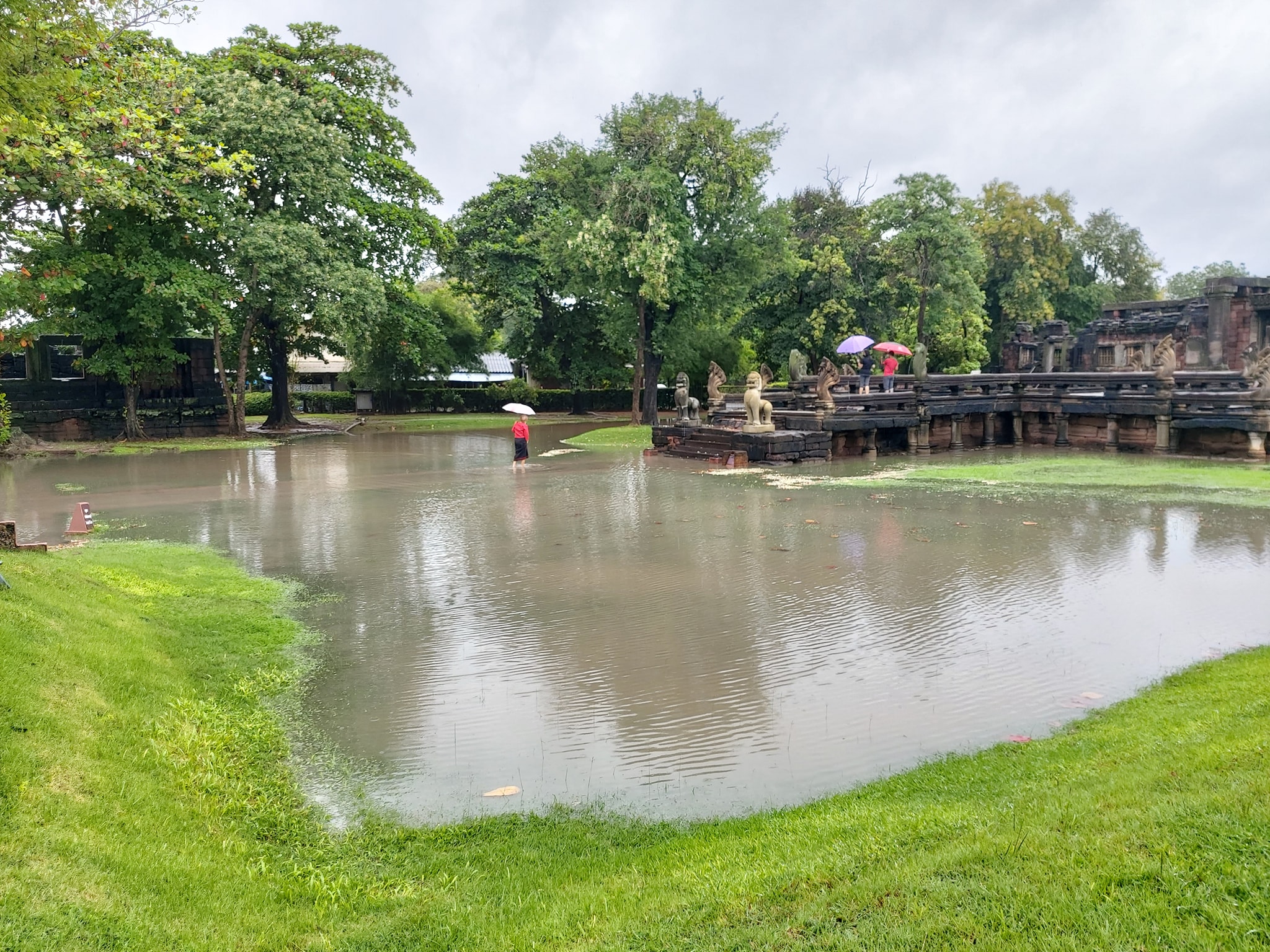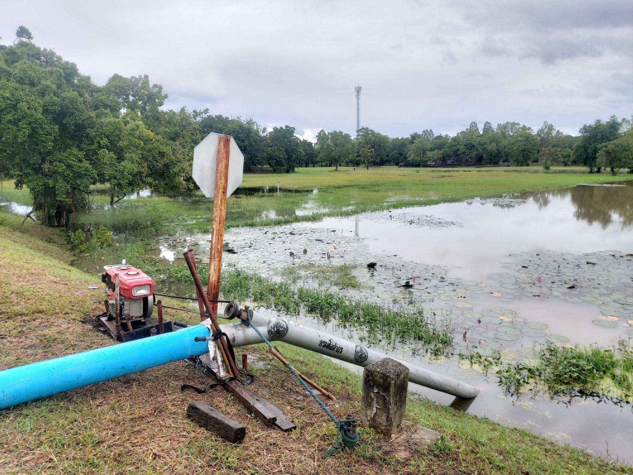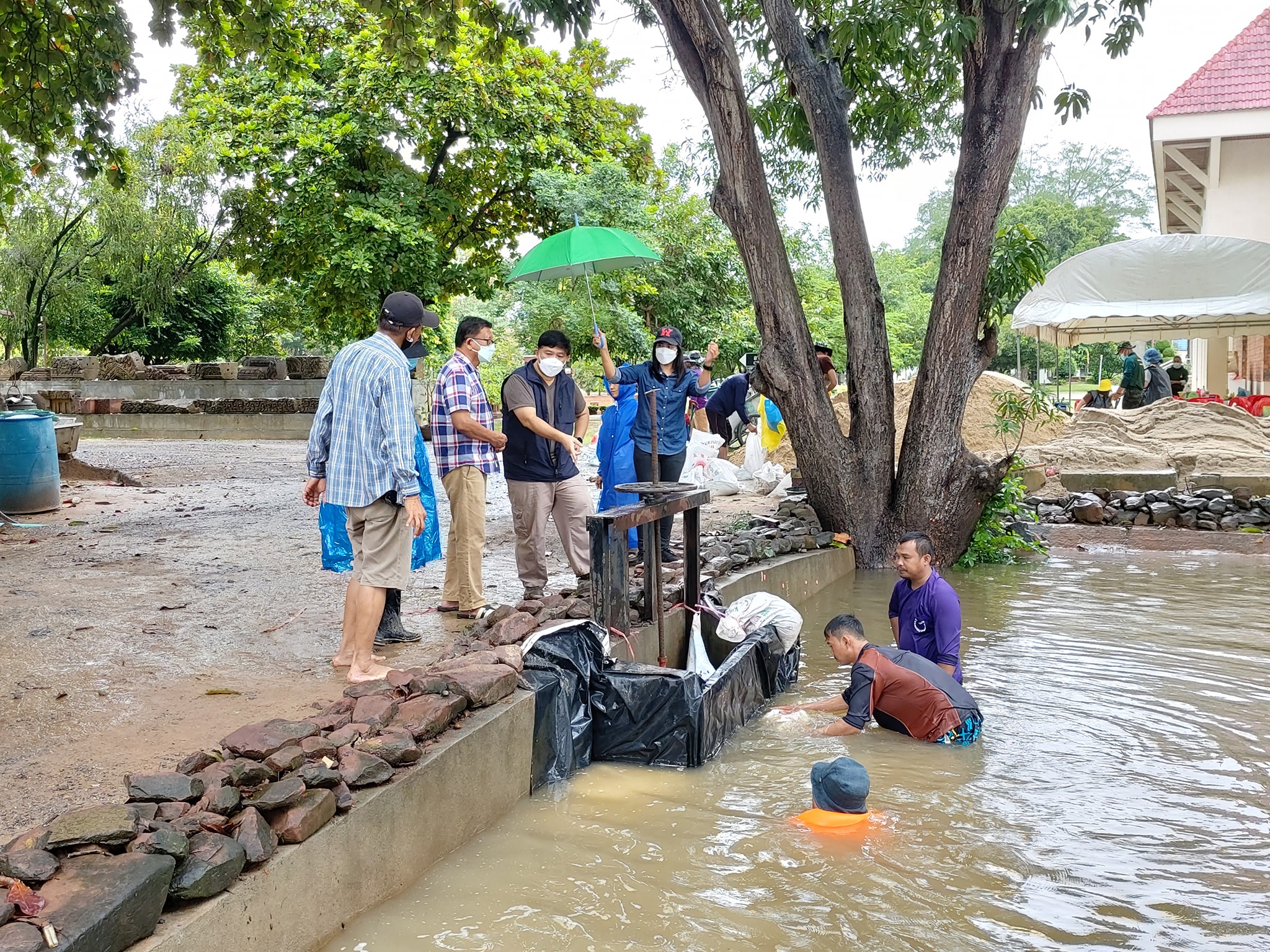 เนื่องจากพายุฝนตกหนักในเขตจังหวัดนครราชสีมาเมื่อคืนที่ผ่านมา(๒๔ กันยายน ๒๕๖๔) ทำให้ระดับน้ำในแม่น้ำมูลสูงขึ้นและส่งผลกระทบต่อโบราณสถานบางส่วน โดยนายทศพร ศรีสมาน ผู้อำนวยการสำนักศิลปากรที่ ๑๐ นครราชสีมา นางสาวฑาริกา กรรมจันทร์ หัวหน้าฝ่ายบริหารงานทั่วไป ลงพื้นที่อุทยานประวัติศาสตร์พิมาย พิพิธภัณฑสถานแห่งชาติพิมาย กุฏิฤาษี เพื่อมอบหมายเจ้าหน้าที่เร่งดำเนินการติดตั้งเครื่องสูบน้ำระบายน้ำที่ท่วมขังโบราณสถาน ทั้งนี้เจ้าหน้าที่ได้ดำเนินการก่อกระสอบทรายป้องกันน้ำล้นตลิ่งร่วมกับทหารกองพันทหารช่างที่ ๒๐๒ กรมทหารช่าง ๒ ค่ายสุรธรรมพิทักษ์ ณ พิพิธภัณฑสถานแห่งชาติพิมาย จังหวัดนครราชสีมา ในส่วนโบราณสถานปรางค์พะโค อำเภอโชคชัย จังหวัดนครราชสีมา สถานการณ์ระดับน้ำยังคงปกติ