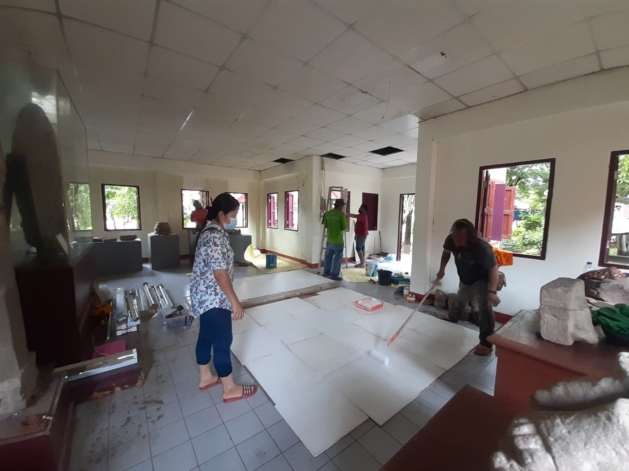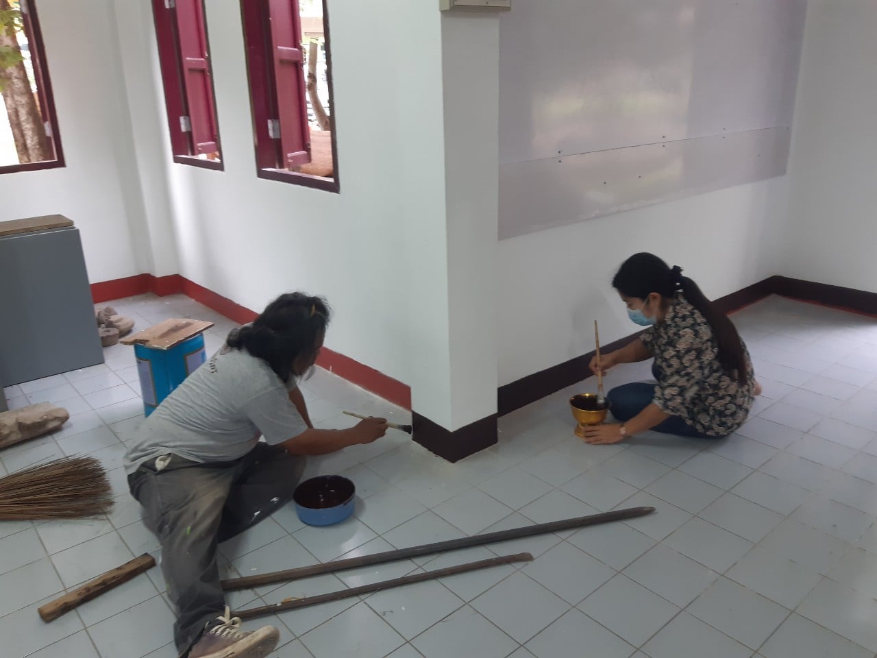 -ดำเนินการปรับปรุงภายในอาคาร งานสีผนังโดยรอบทั้งหมดภายในอาคาร ขัดพื้นผิวผนังโดยรอบ ทาสีรองพื้นปูนเก่า ทาสีน้ำพลาสติก สีทาภายในอาคารสีขาว แล้วทาสีเดินเส้นรอบอาคารด้านล่างแล้วเสร็จ