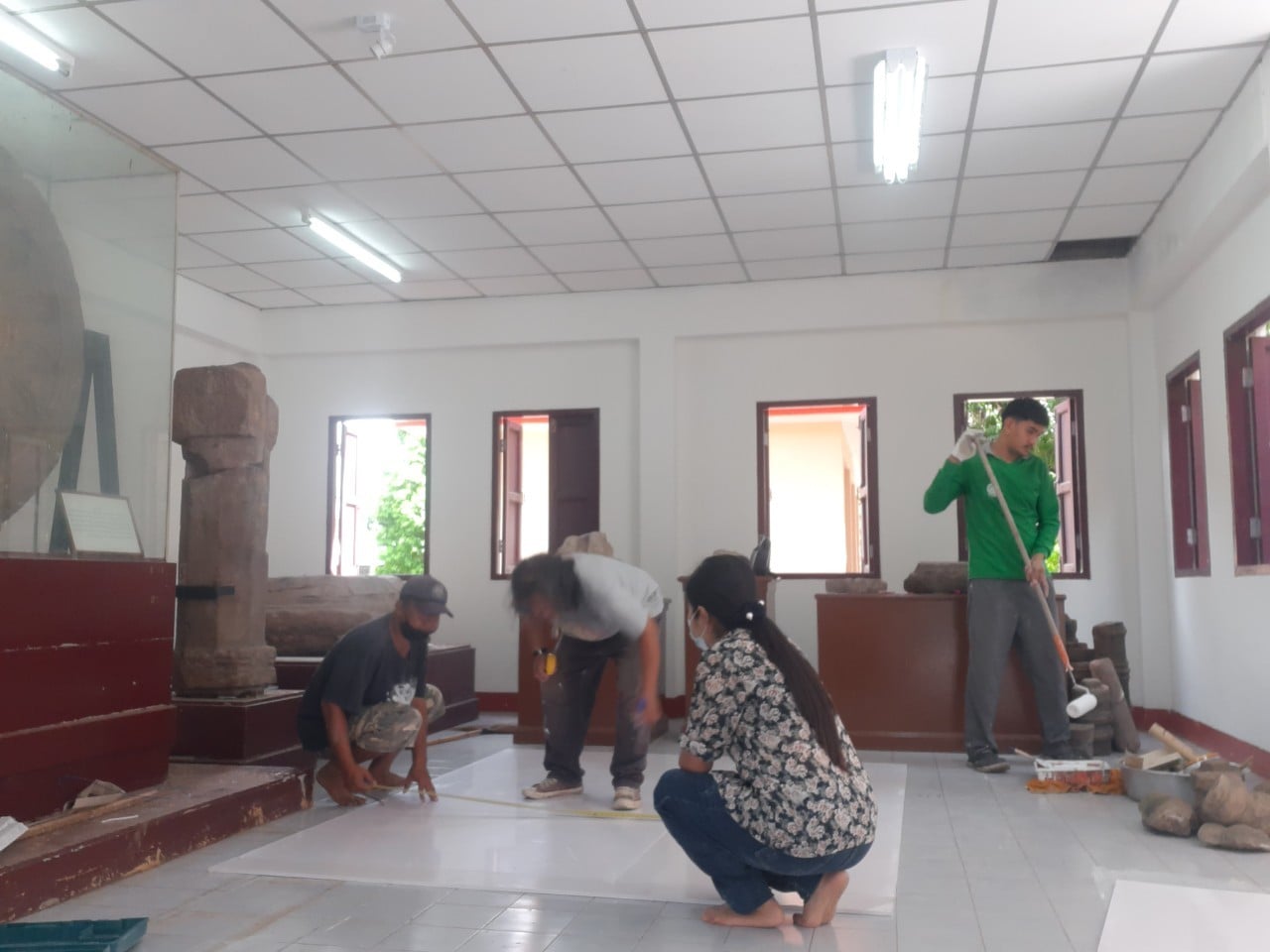 -งานติดตั้งระบบไฟฟ้า ติดตั้งและเดินสายไฟฟ้าภายในอาคาร ไฟ LED หลอดเดี่ยว จำนวน ๔ ชุด ไฟLED รางหลอดคู่ จำนวน ๒ ชุด ไฟสปอร์ตไลท์ส่องโบราณวัตถุ จำนวน ๒ ชุด ติดตั้งแผงควบคุมไฟฟ้าภายในอาคารเปลี่ยนใหม่แล้วเสร็จ
