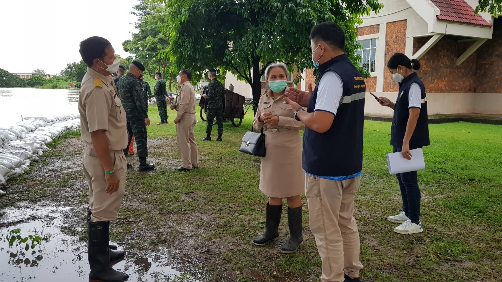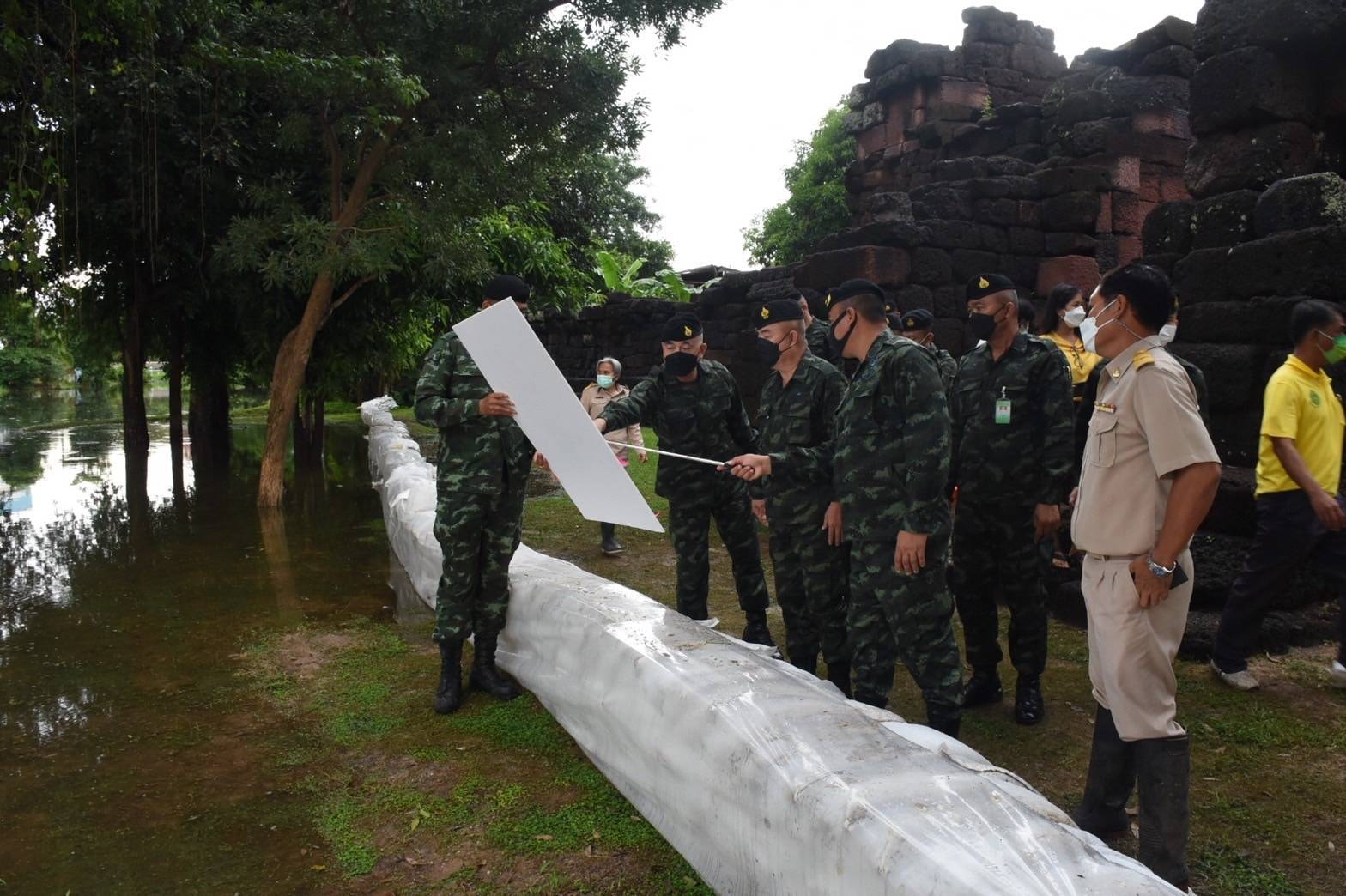 นายชำนาญ กฤษณสุวรรณ ผู้อำนวยการกลุ่มอนุรักษ์โบราณสถาน และนางสาวฑาริกา กรรมจันทร์ หัวหน้าฝ่ายบริหารงานทั่วไป ลงพื้นที่เพื่อเข้าร่วมประชุมติดตามสถานการณ์น้ำท่วมในเขตพื้นที่อำเภอพิมาย