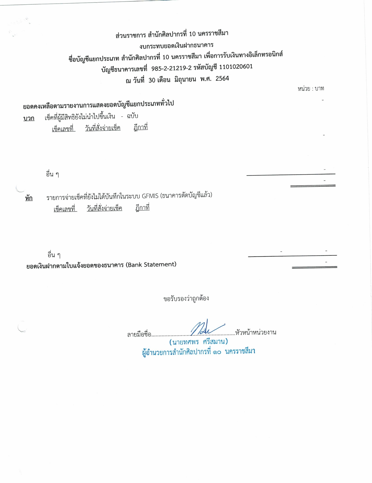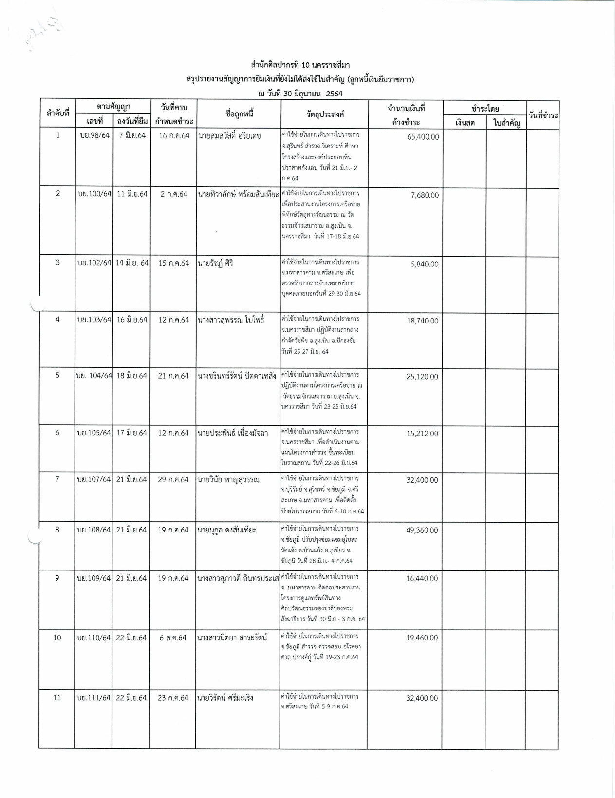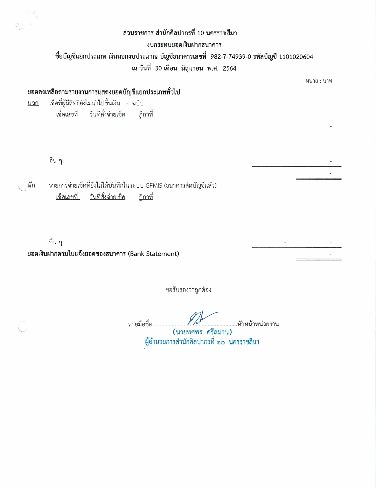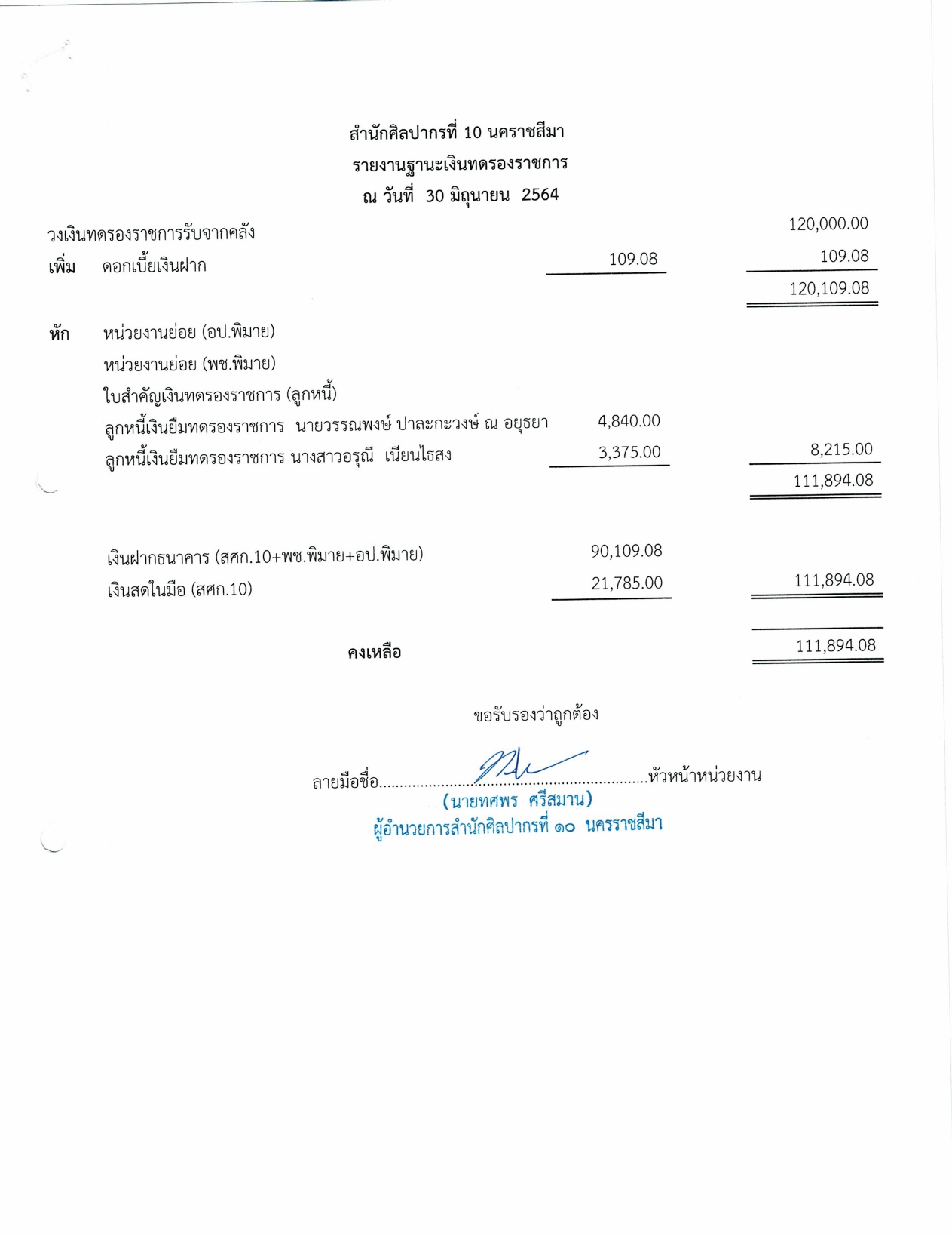 รายงานบัญชีงบทดลองและเอกสารประกอบงบทดลอง สำนักศิลปากรที่ ๑๐ นครราชสีมา (เดือนมิถุนายน ๒๕๖๔)