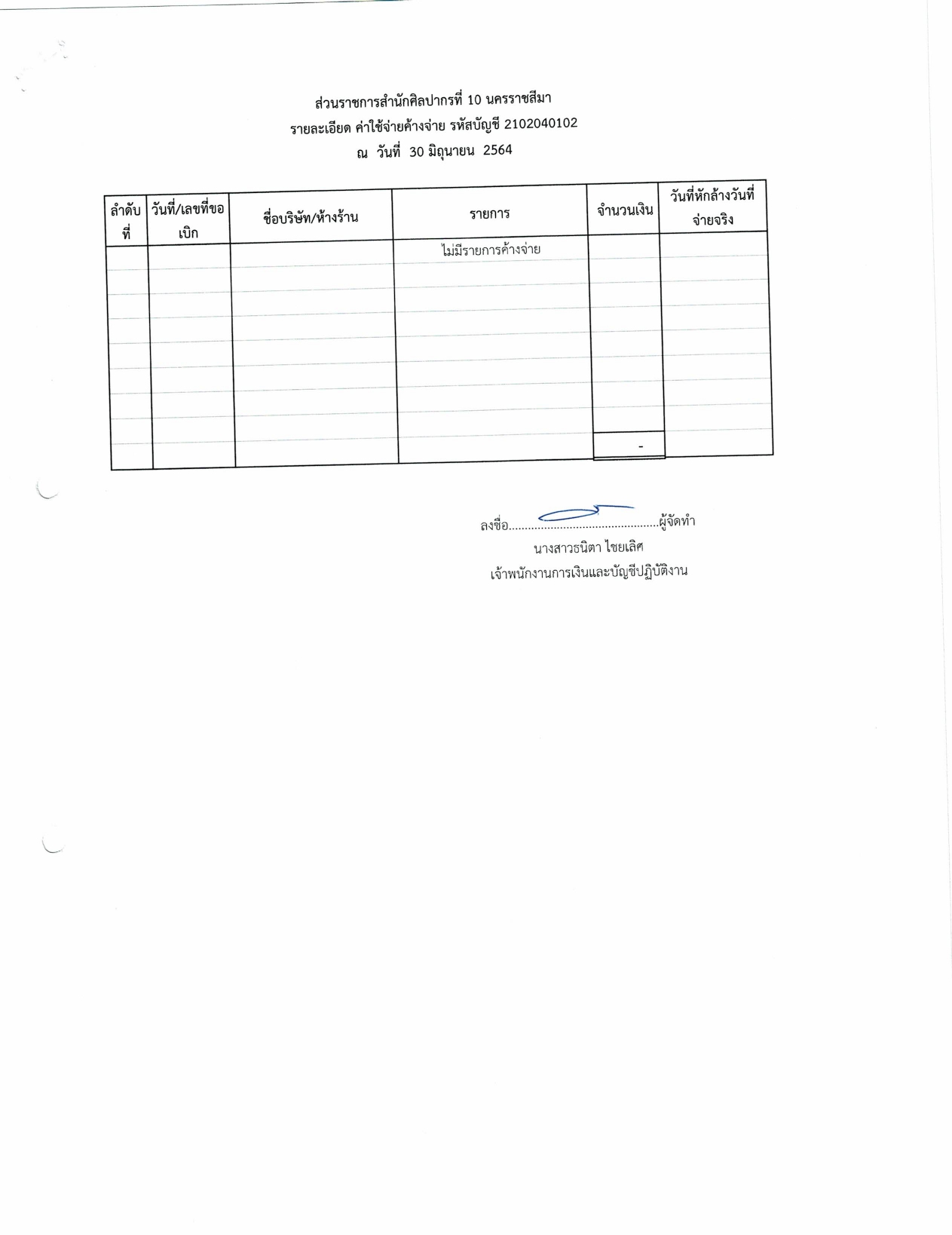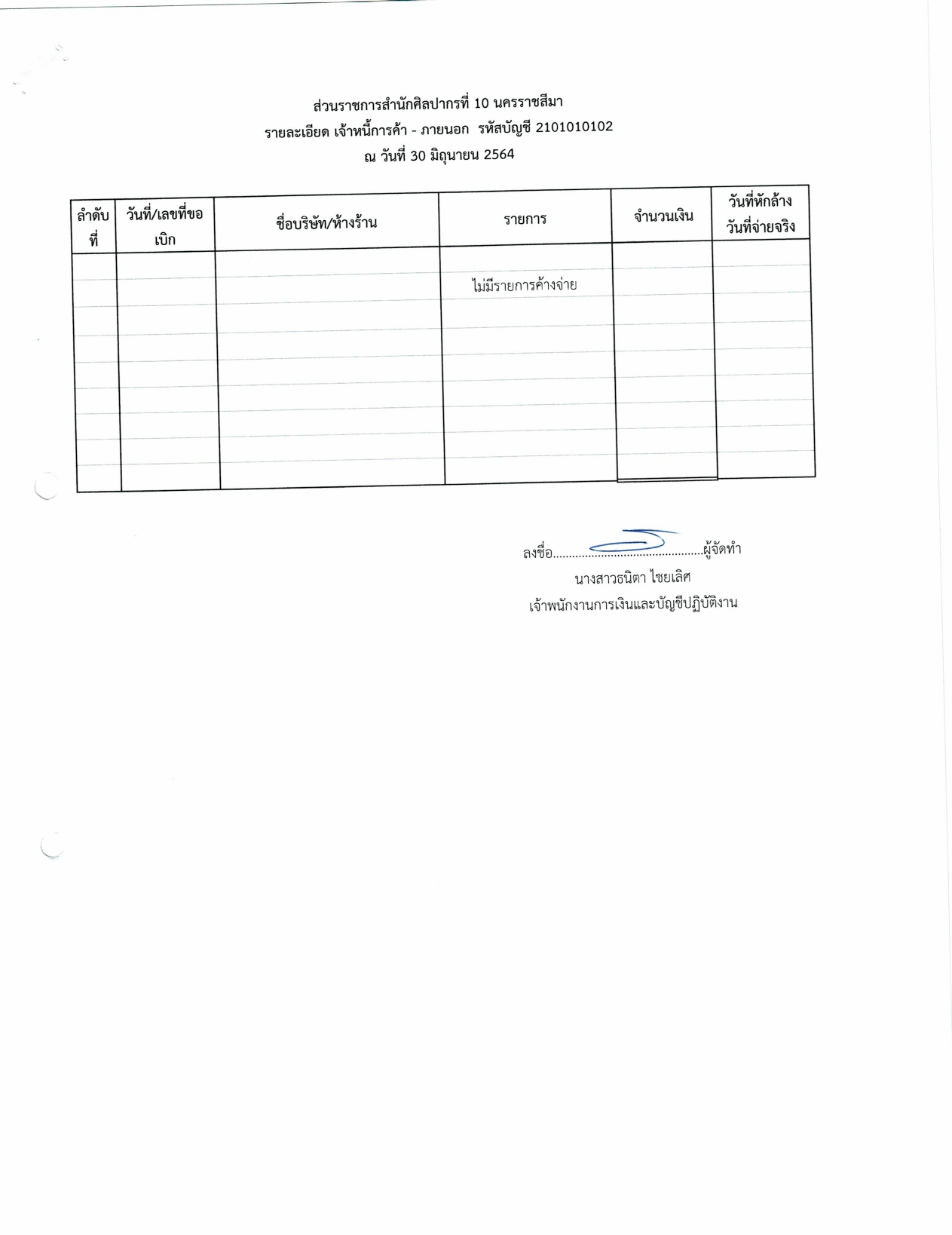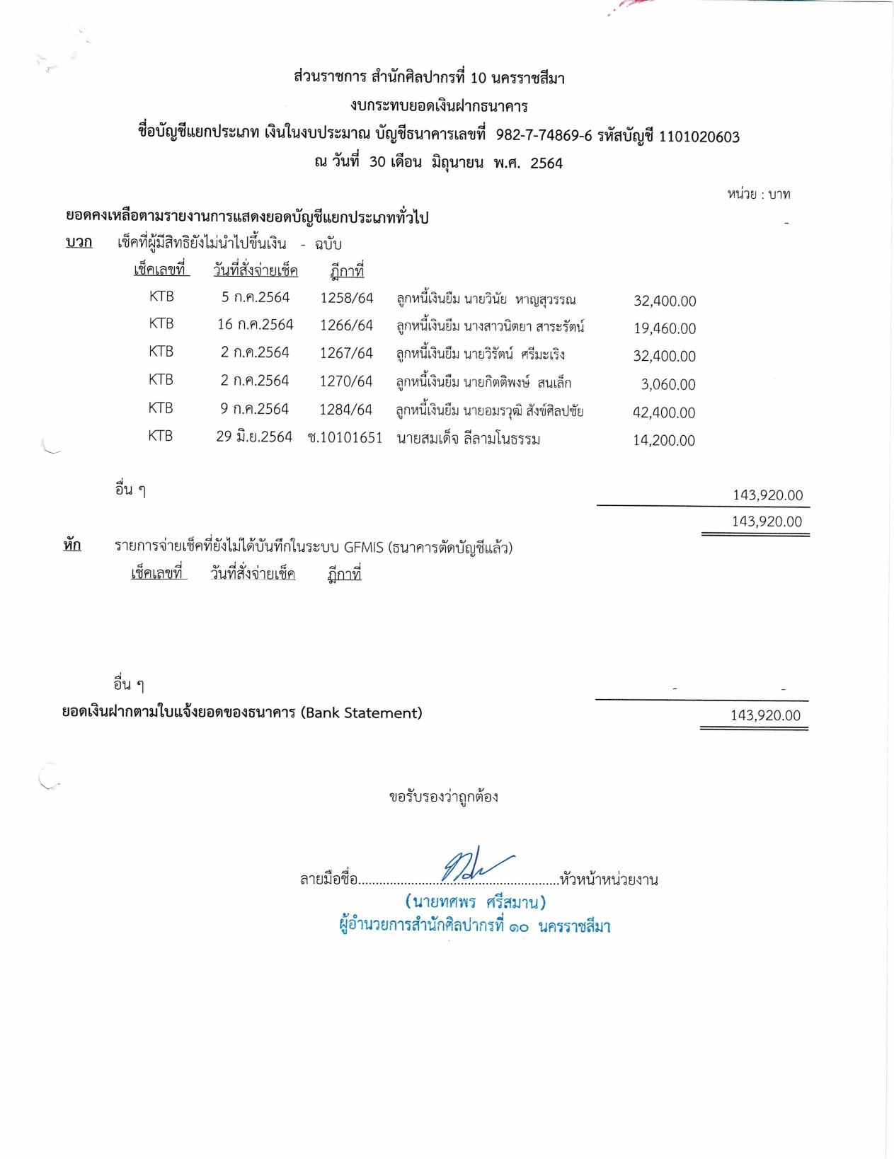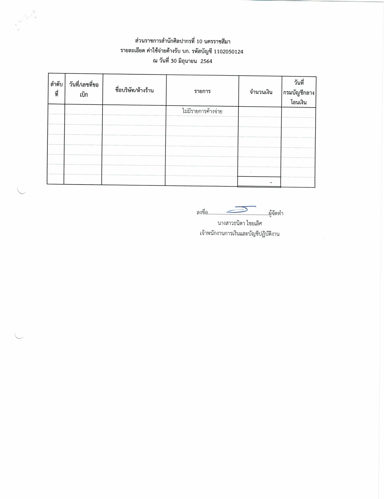 รายงานบัญชีงบทดลองและเอกสารประกอบงบทดลอง สำนักศิลปากรที่ ๑๐ นครราชสีมา (เดือนมิถุนายน ๒๕๖๔)