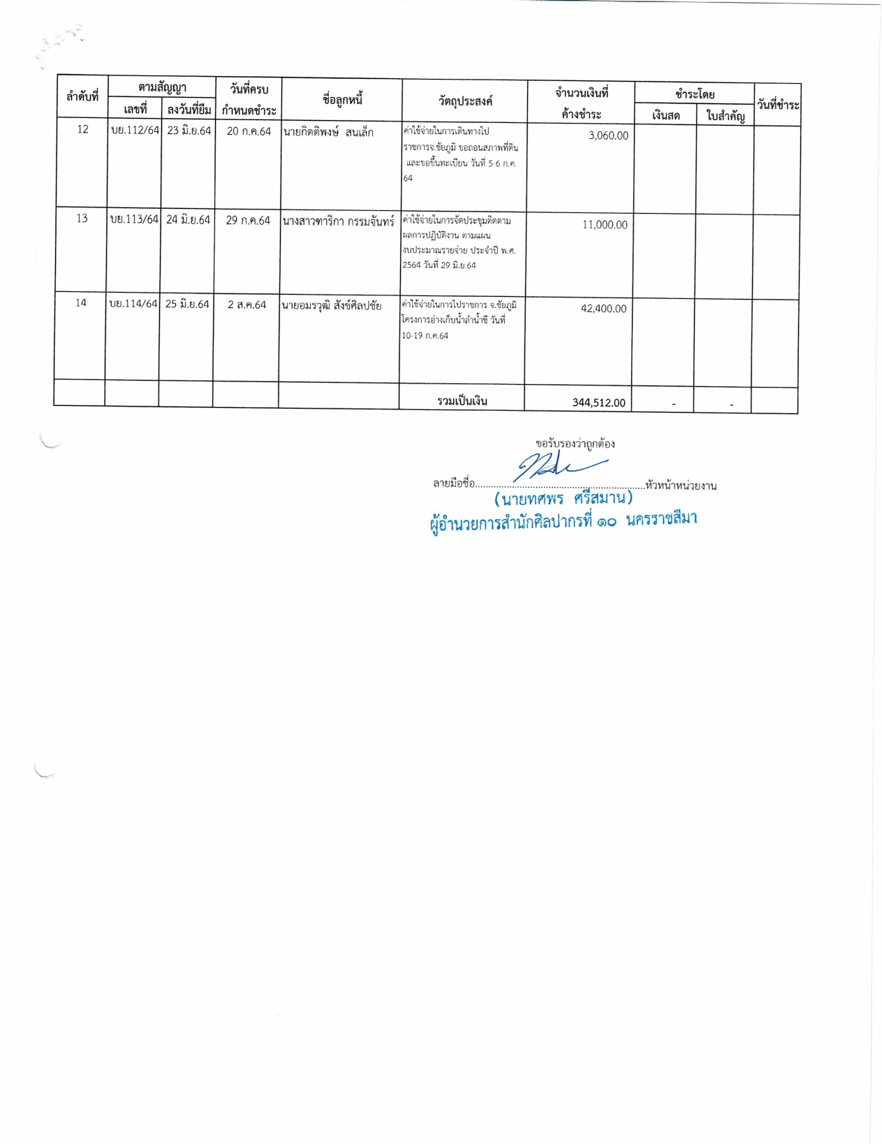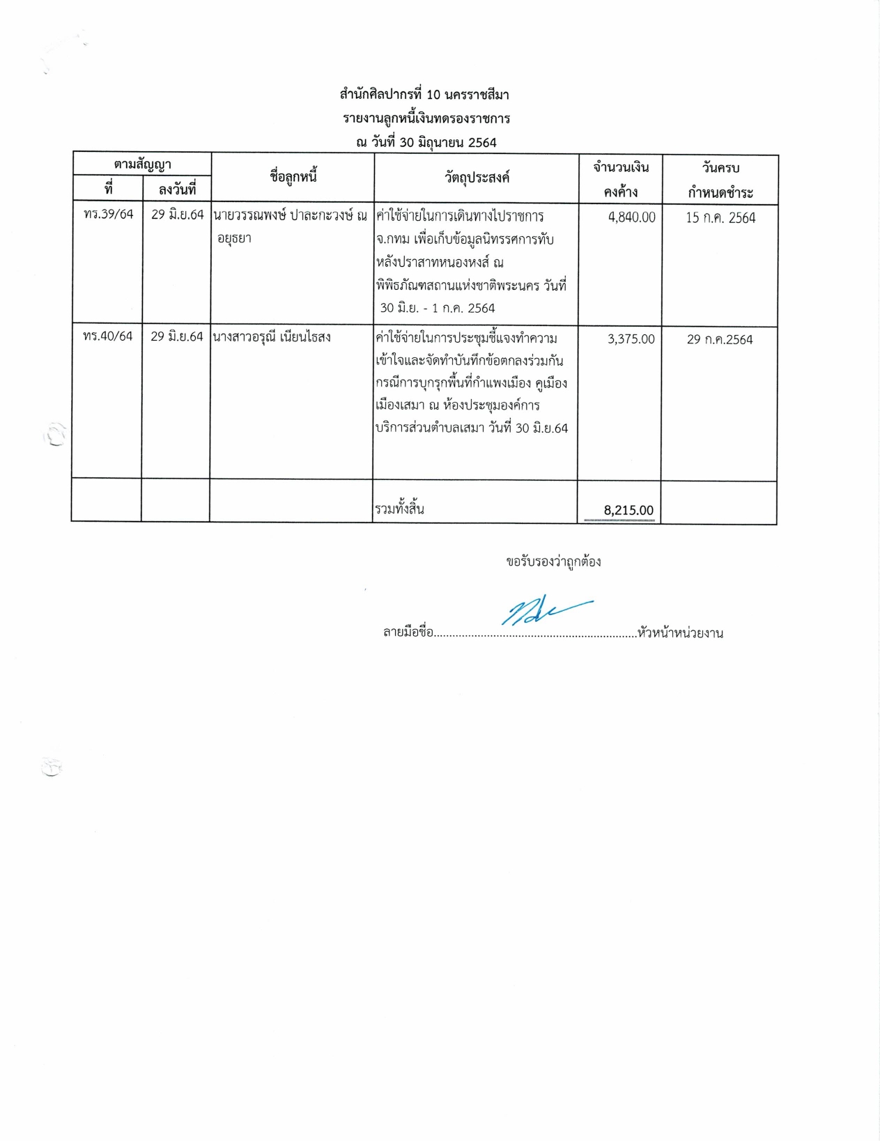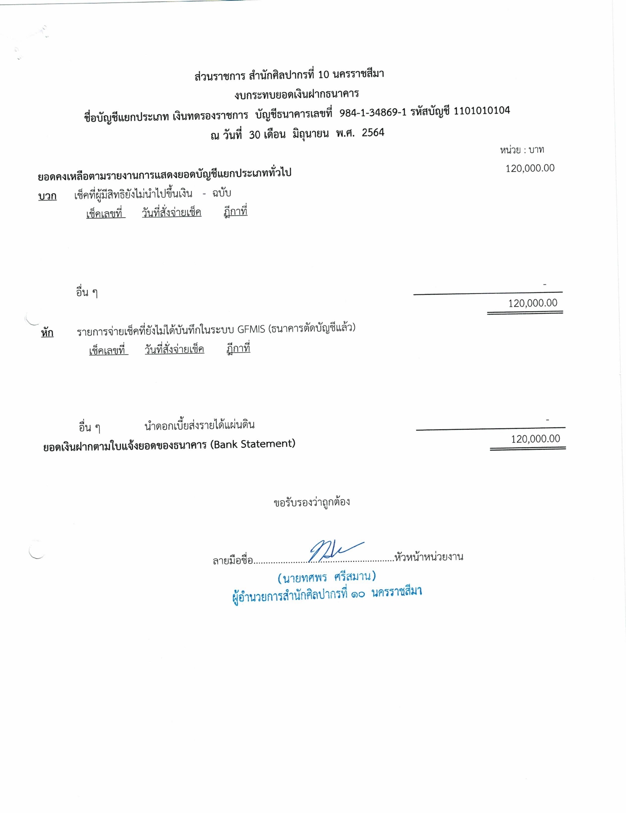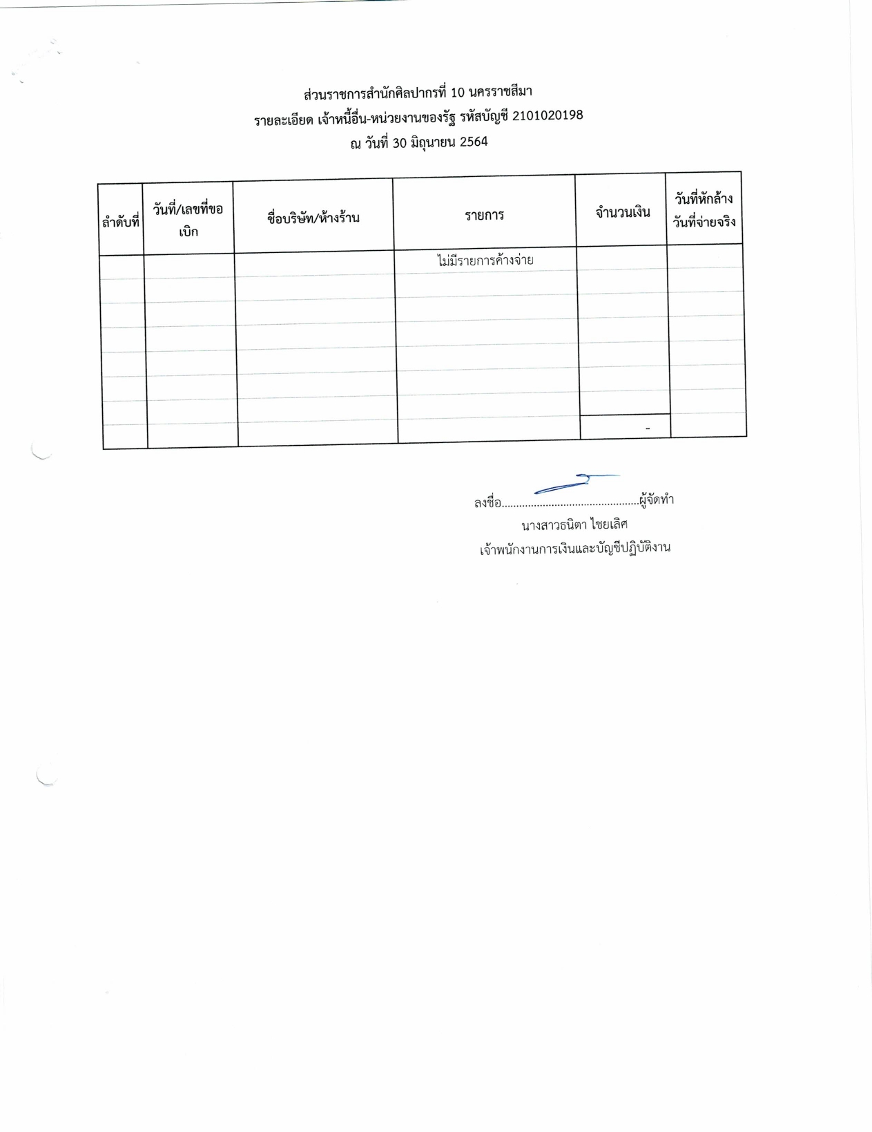รายงานบัญชีงบทดลองและเอกสารประกอบงบทดลอง สำนักศิลปากรที่ ๑๐ นครราชสีมา (เดือนมิถุนายน ๒๕๖๔)