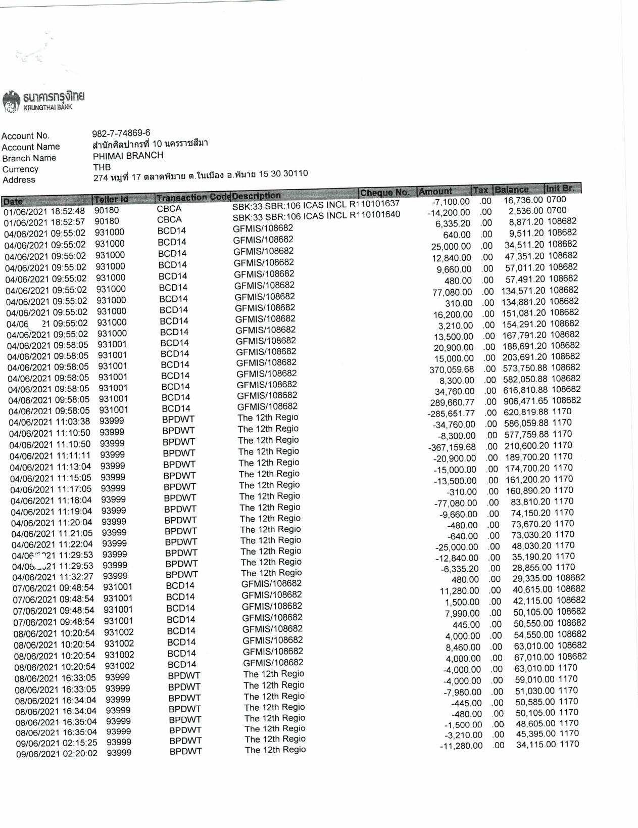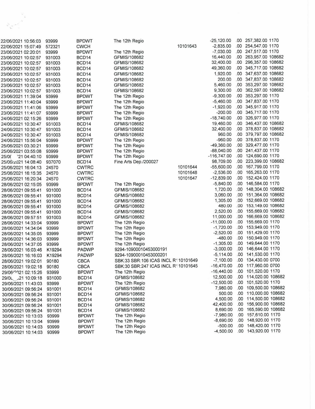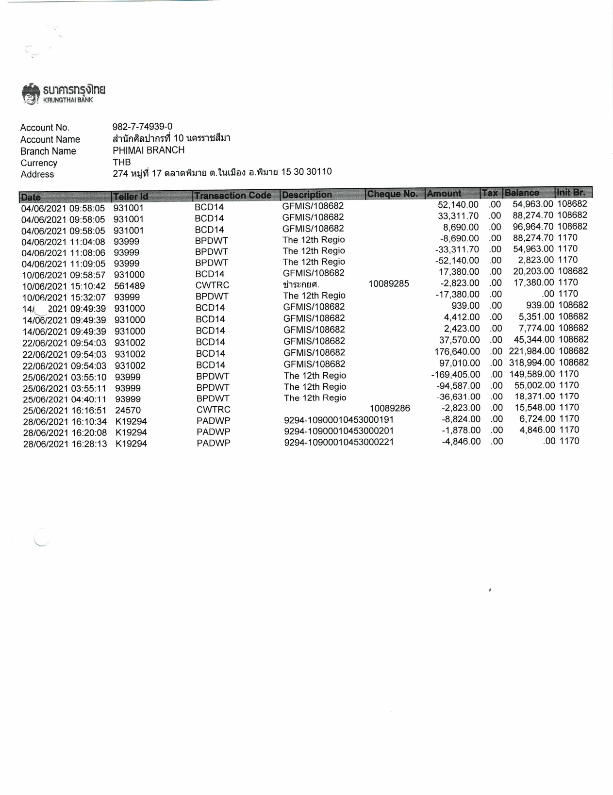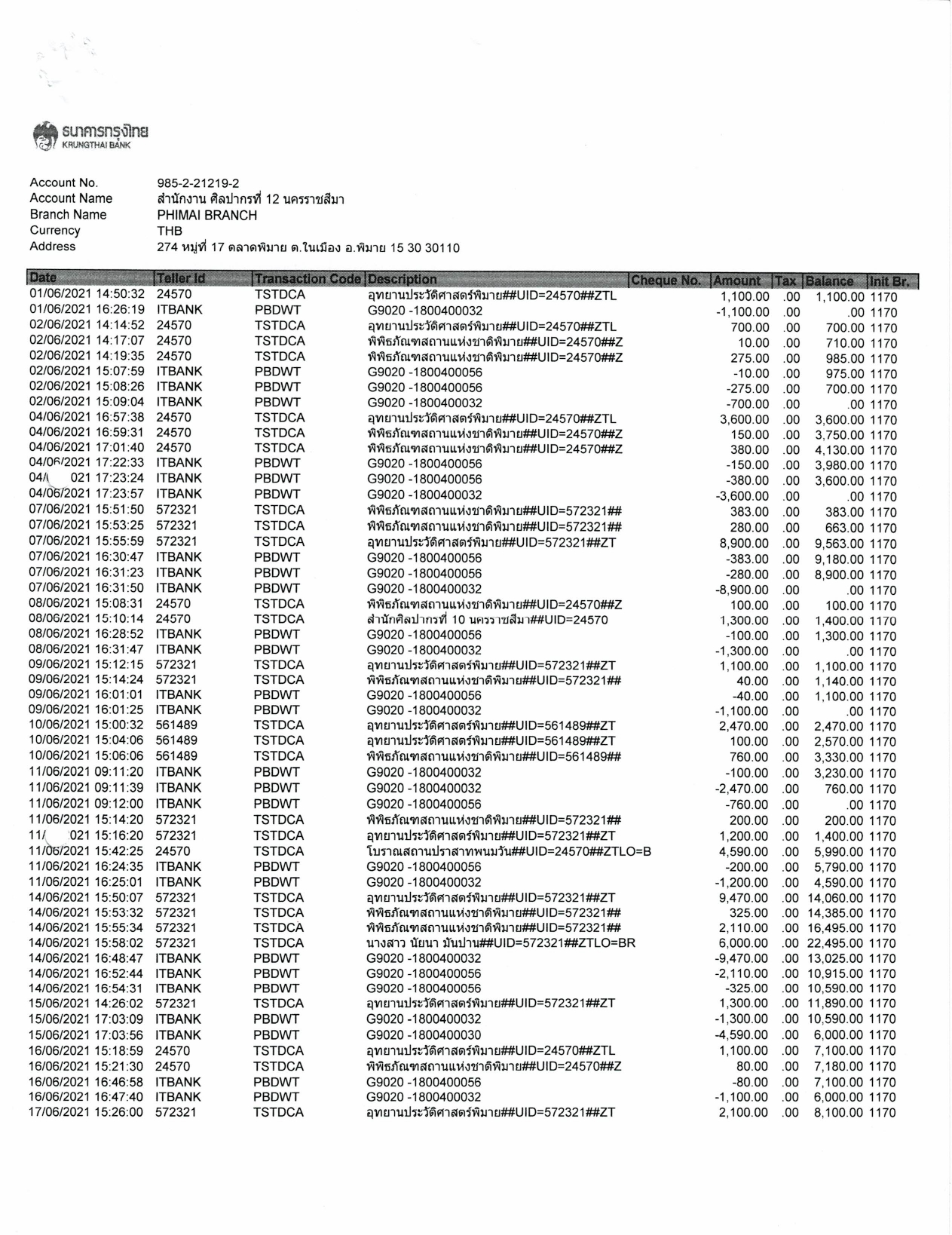 รายงานบัญชีงบทดลองและเอกสารประกอบงบทดลอง สำนักศิลปากรที่ ๑๐ นครราชสีมา (เดือนมิถุนายน ๒๕๖๔)