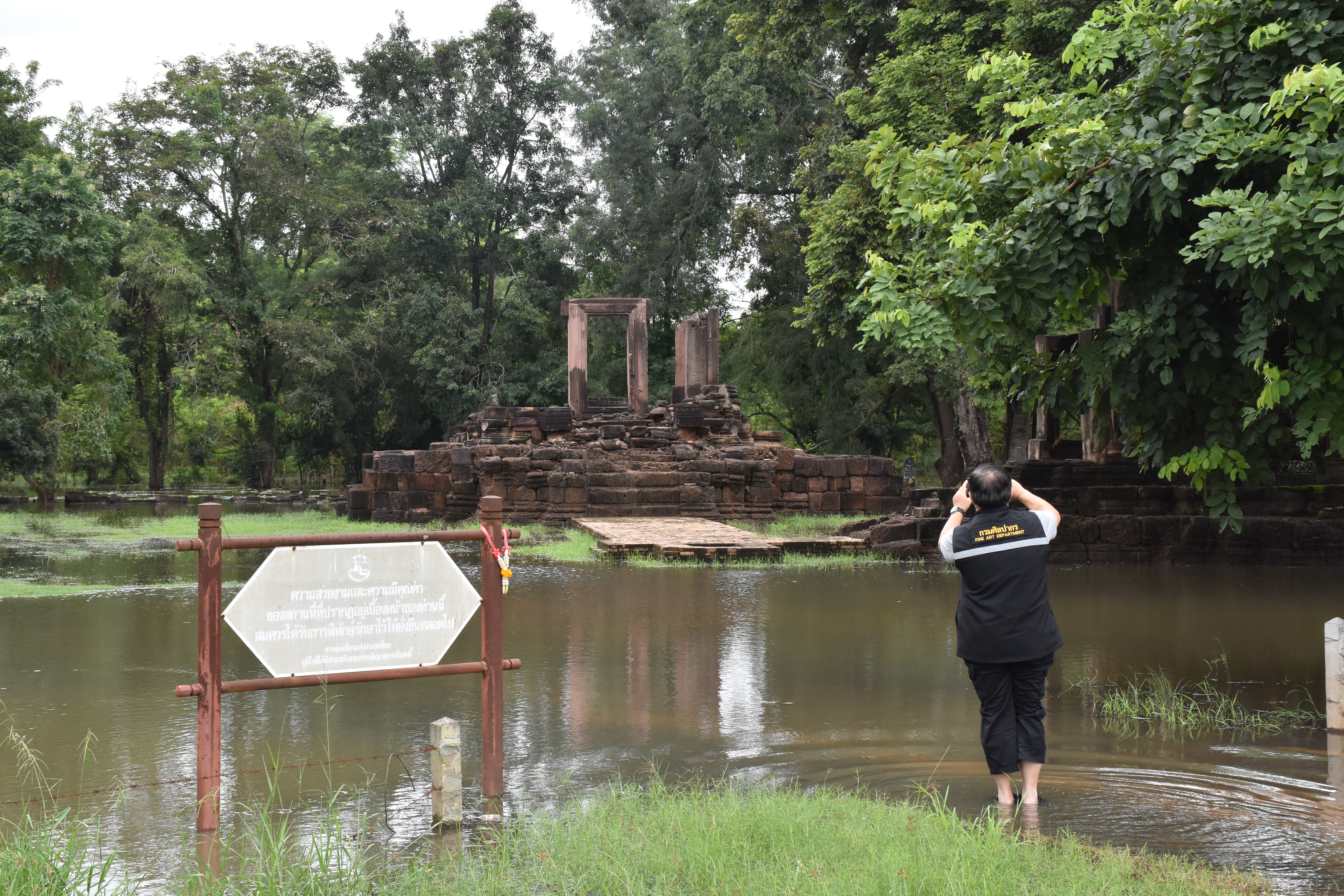 นายทศพร ศรีสมาน ผู้อำนวยการสำนักศิลปากรที่ ๑๐ นครราชสีมา ลงพื้นที่ตรวจสอบโบราณสถานที่ได้รับผลกระทบจากสถานการณ์นำท่วมในเขตจังหวัดนครราชสีมา