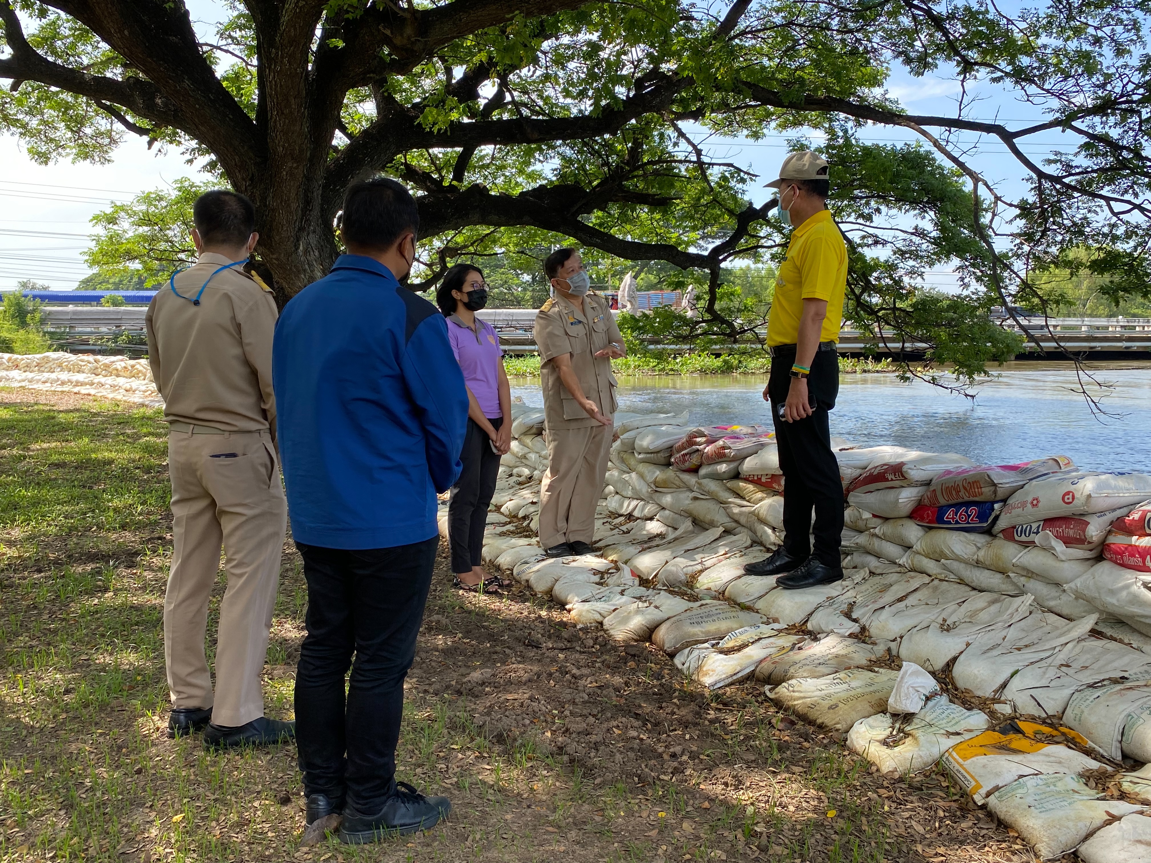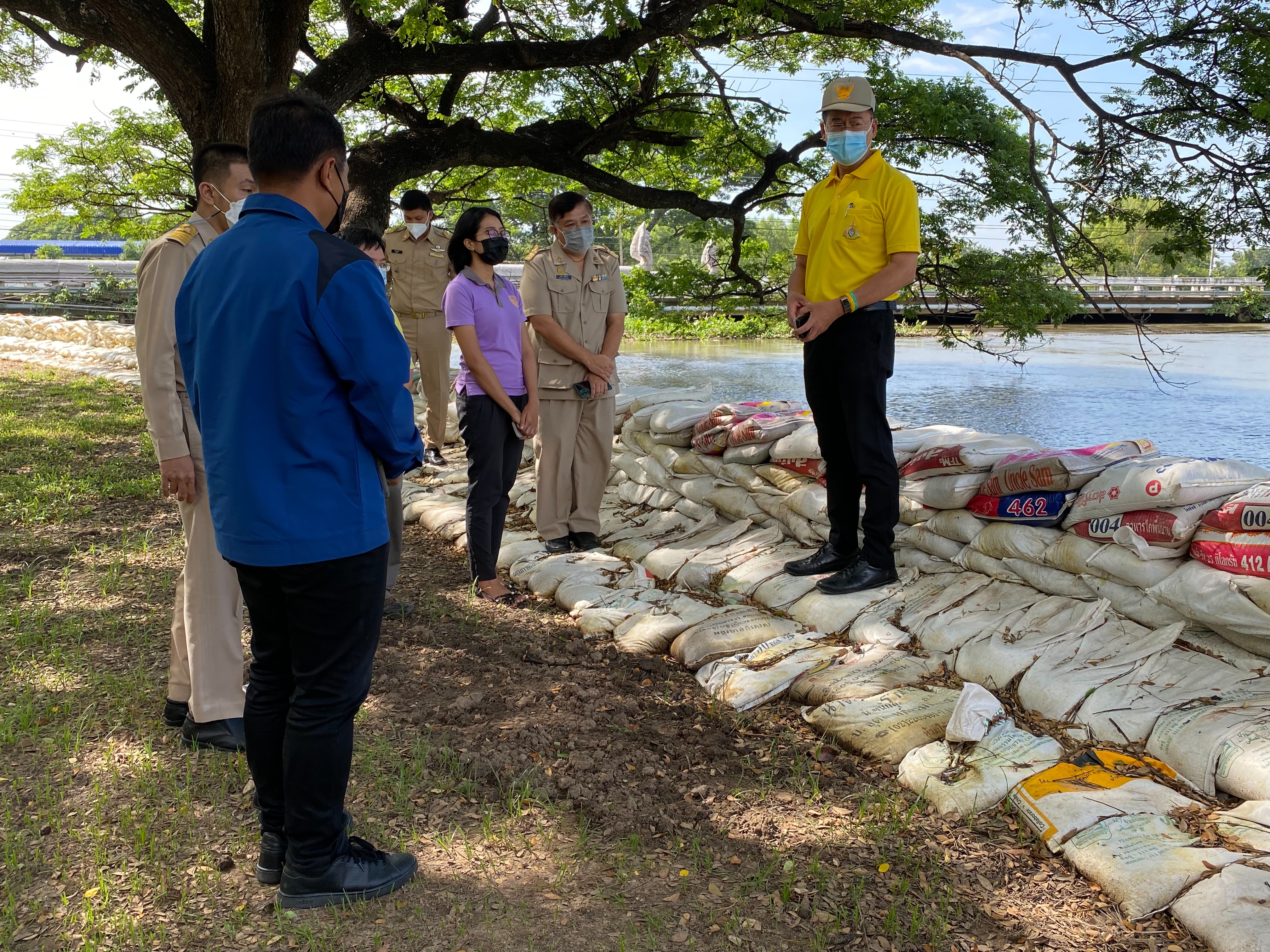 วันจันทร์ที่ ๒๕ ตุลาคม ๒๕๖๔ นายวิเชียร จันทรโณทัย ผู้ว่าราชการจังหวัดนครราชสีมา ลงพื้นที่ตรวจสอบแนวป้องกันน้ำท่วมลำน้ำมูล อำเภอพิมาย