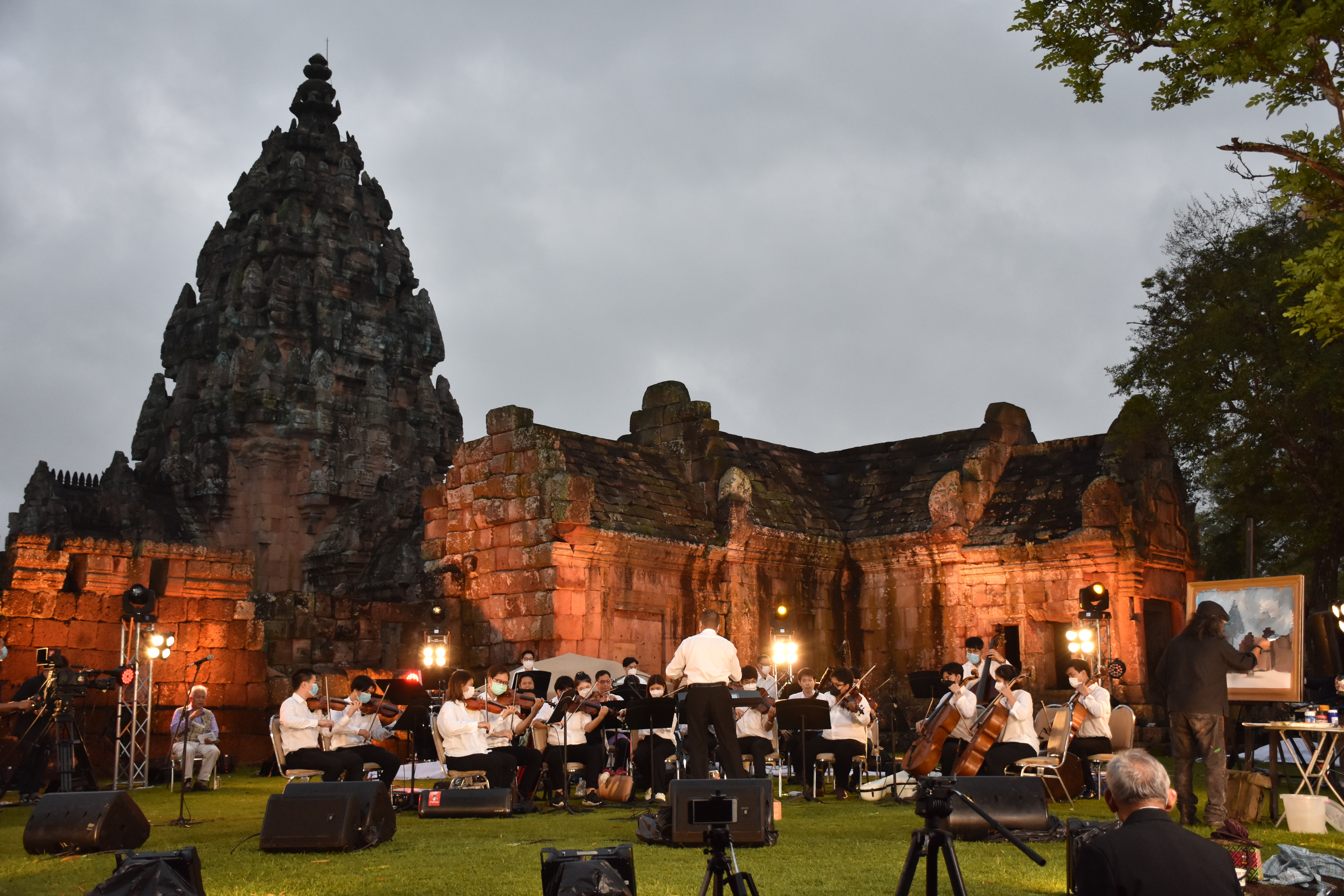 วันพฤหัสบดีที่ ๒๘ ตุลาคม ๒๕๖๔ ศาสตราจารย์พิเศษ ดร.เอนก เหล่าธรรมทัศน์ รัฐมนตรีว่าการกระทรวงการอุดมศึกษา วิทยาศาสตร์ วิจัยและนวัตกรรม เข้าเยี่ยมชมโบราณสถานปราสาทพนมรุ้ง และชมการแสดงวงดนตรีสากลซิมโฟนีออร์เคสตร้า ในโครงการขยายผลต่อยอดนวัตกรรมเพลงพื้นบ้านเพื่อเผยแพร่ให้เป็นมรดกของชาติ ซึ่งอำนวยการแสดงโดย รศ.ดร.สุกรี เจริญสุข ในการนี้ นายทศพร ศรีสมาน ผู้อำนวยการสำนักศิลปากรที่ ๑๐ นครราชสีมา นายภาณุวัฒน์ เอื้อสามาลย์ หัวหน้าอุทยานประวัติศาสตร์พนมรุ้ง และหัวหน้าหน่วยงานในสังกัด ร่วมให้การต้อนรับ ณ อุทยานประวัติศาสตร์พนมรุ้ง จังหวัดบุรีรัมย์