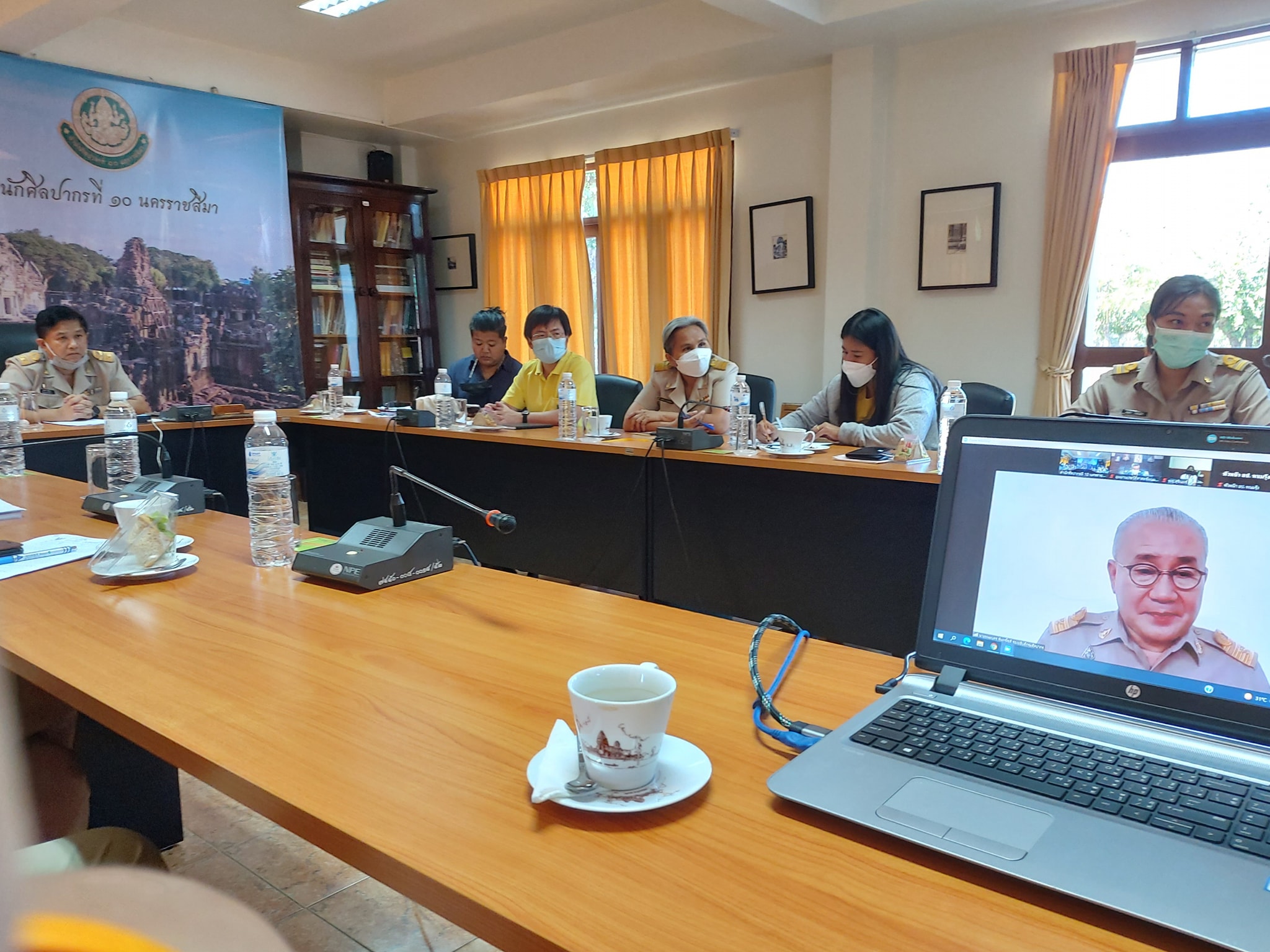 การประชุมสำนักศิลปากรที่ ๑๐ นครราชสีมา เพื่อรับมอบนโยบายจากรองอธิบดีกรมศิลปากร (นายพนมบุตร จันทรโชติ) การบริหารงบประมาณรายจ่ายประจำปีงบประมาณ พ.ศ. ๒๕๖๕ และแนวทางการจัดทำงบประมาณรายจ่ายประจำปีงบประมาณ พ.ศ. ๒๕๖๖