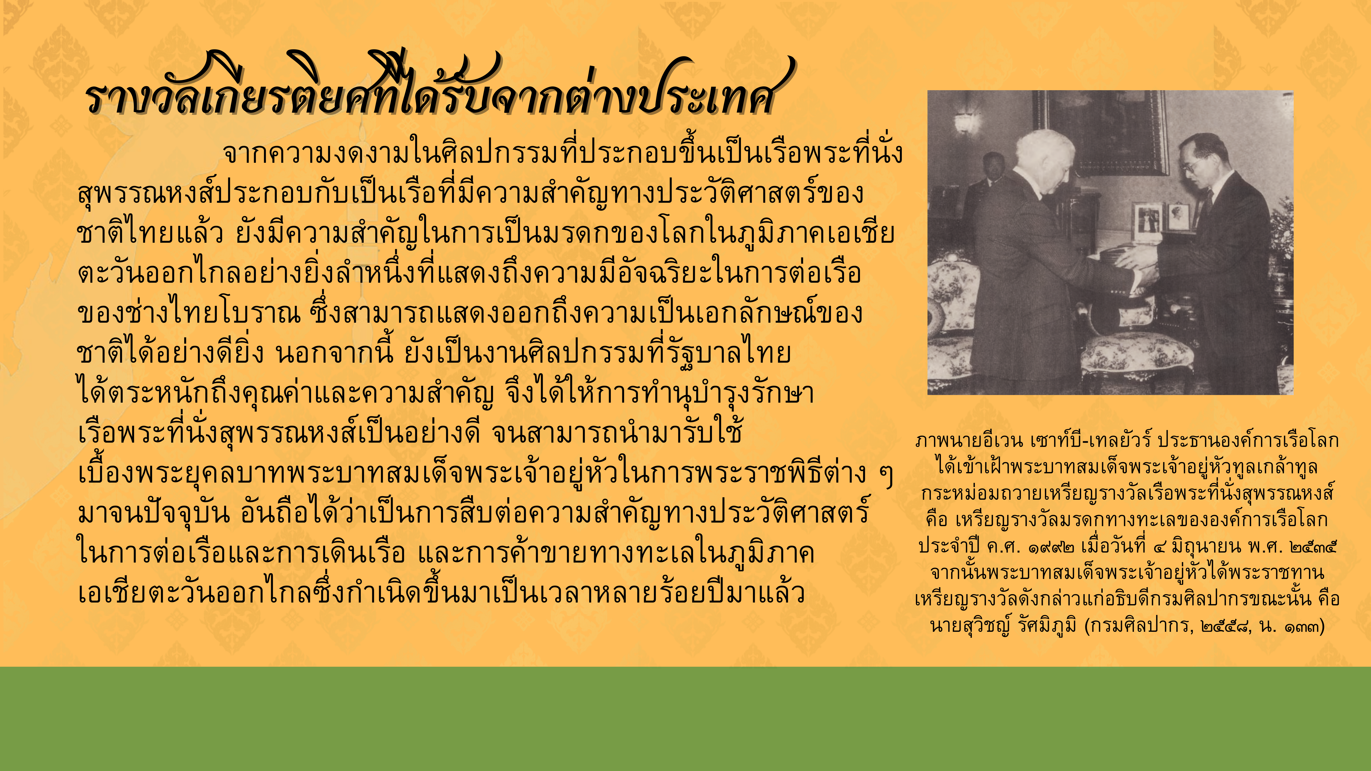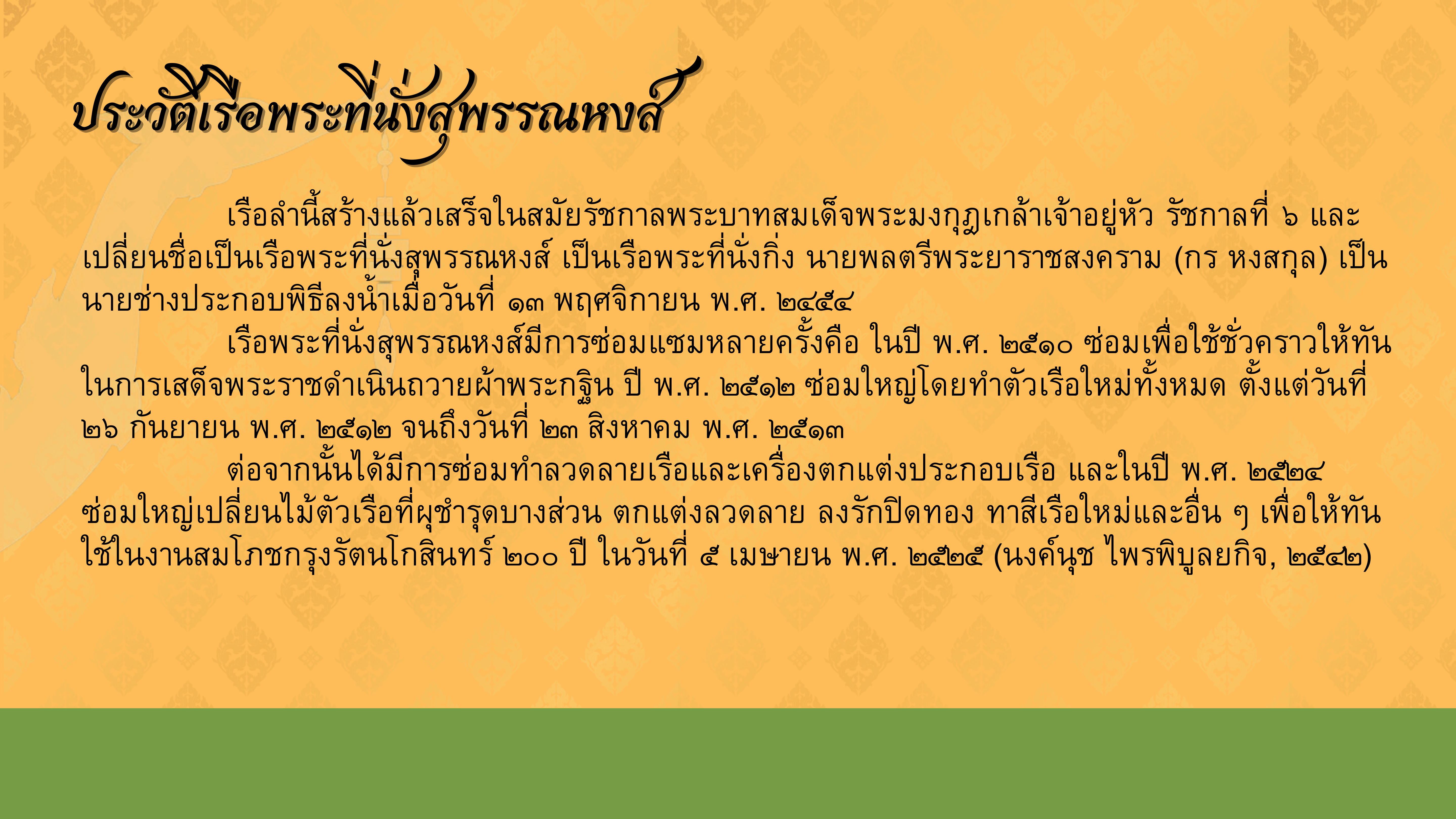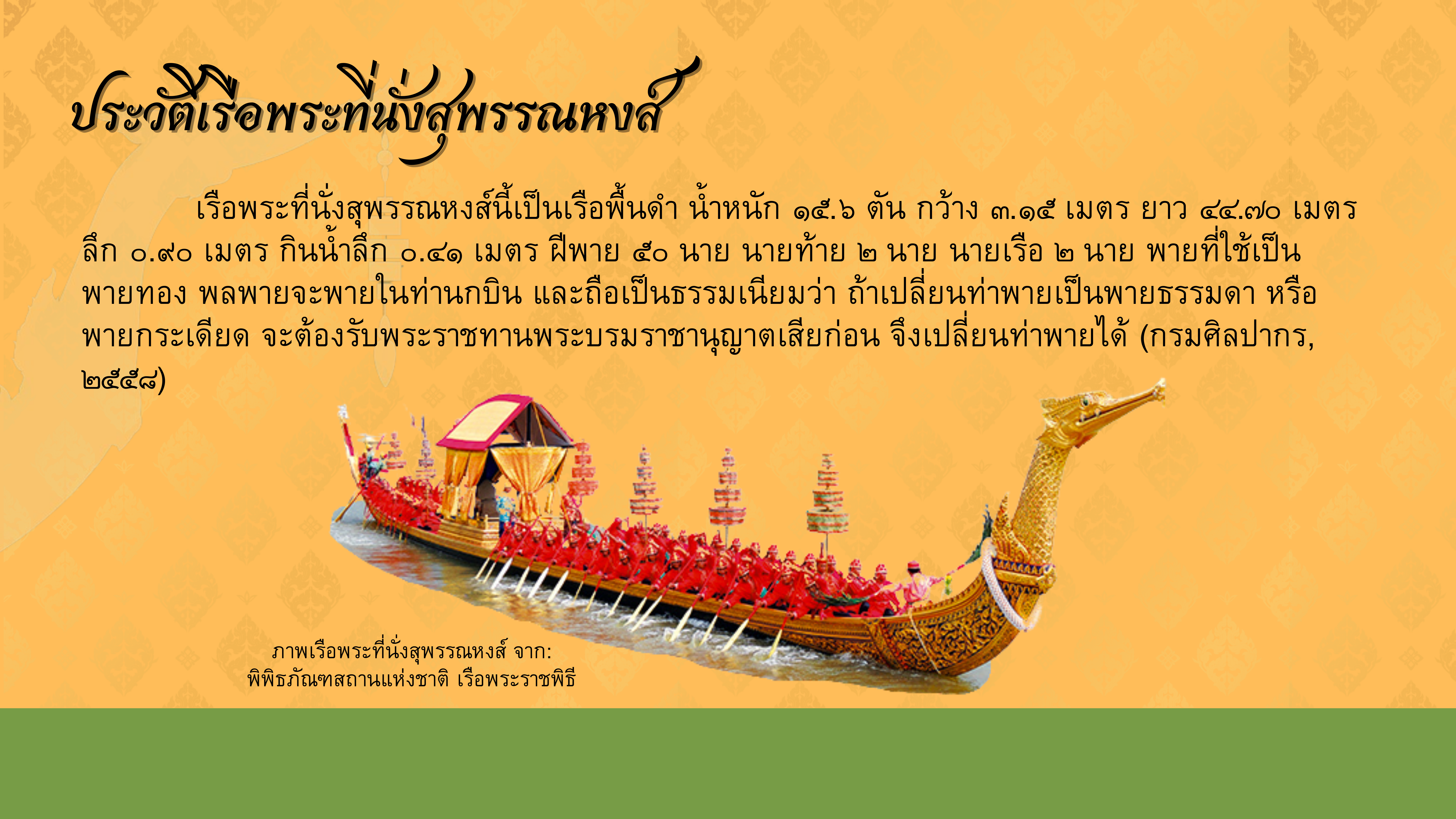 เรื่อง "ศิลปกรรมแห่งสายน้ำ : เรือพระที่นั่งสุพรรณหงส์"