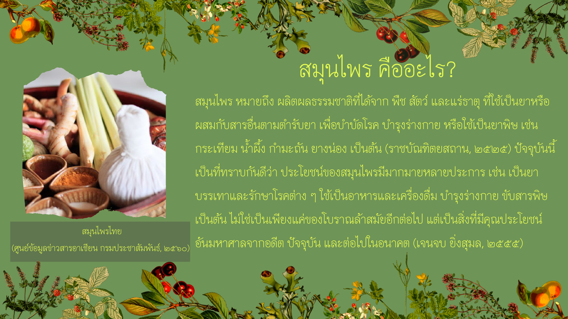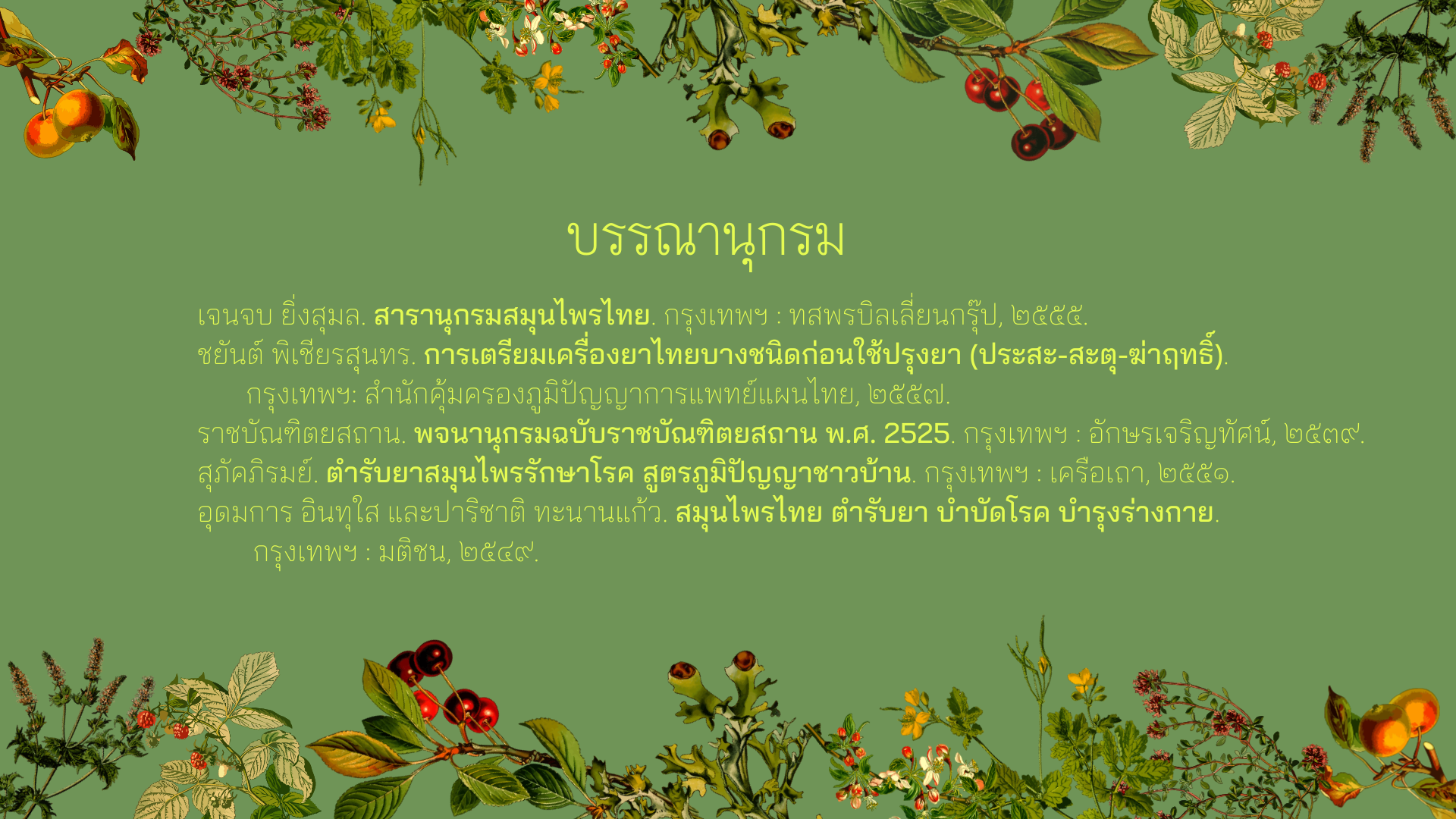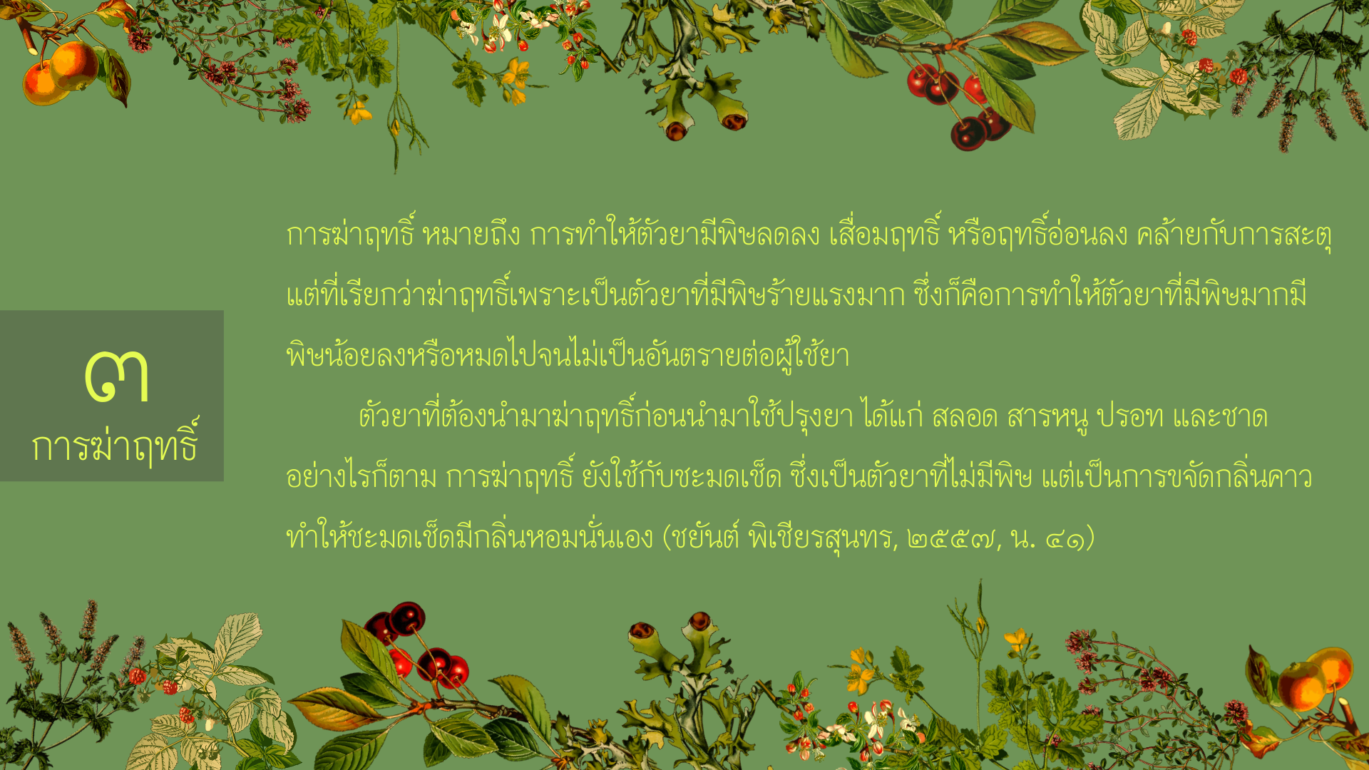 องค์ความจากหอสมุดแห่งชาติรัชมังคลาภิเษก เชียงใหม่ เรื่อง “ยาแผนไทย” : กรรมวิธีการแปรสภาพและเก็บสมุนไพร ตลอดจนการเตรียมเครื่องยาในการ ผลิตยาสมุนไพรไทยอย่างถูกวิธี