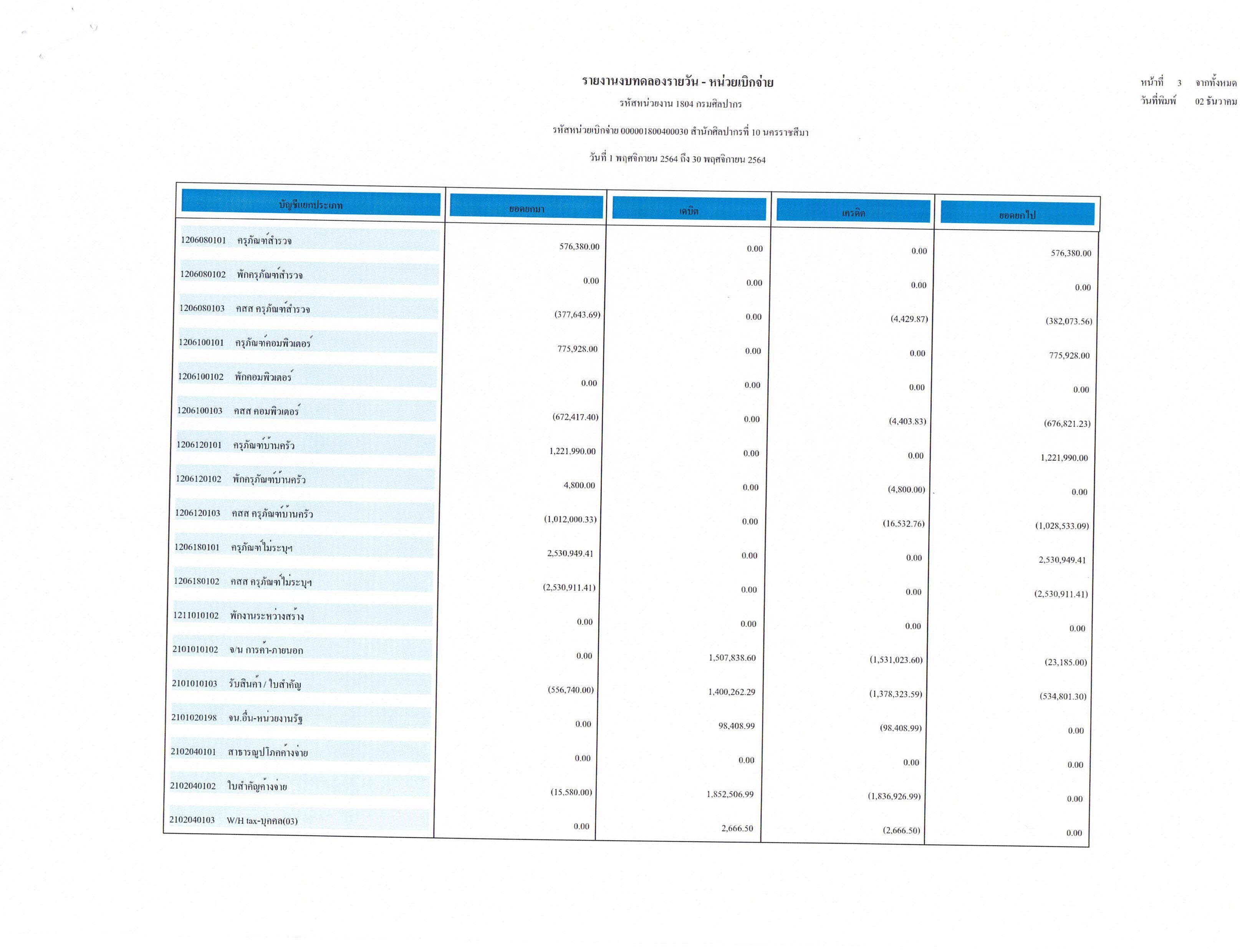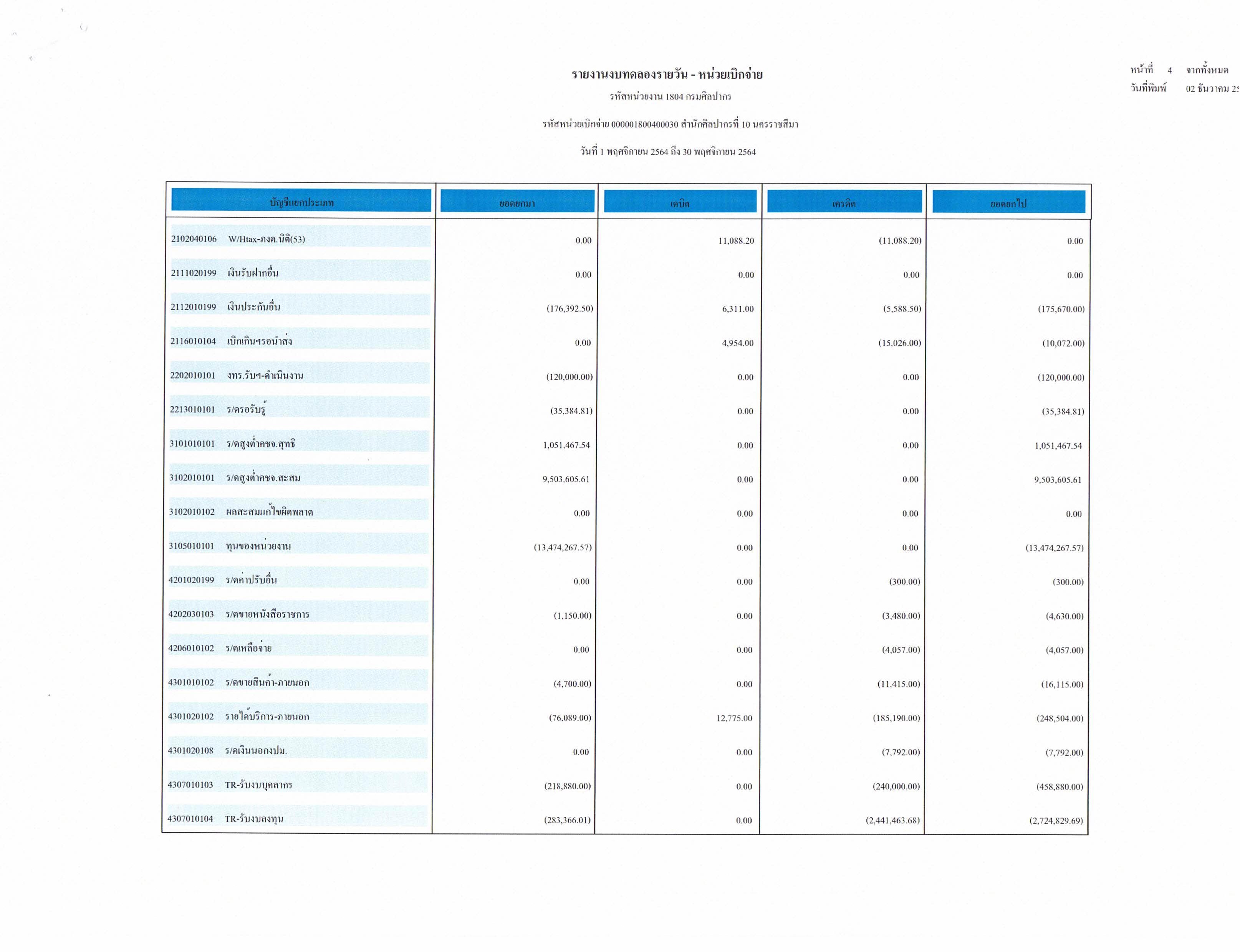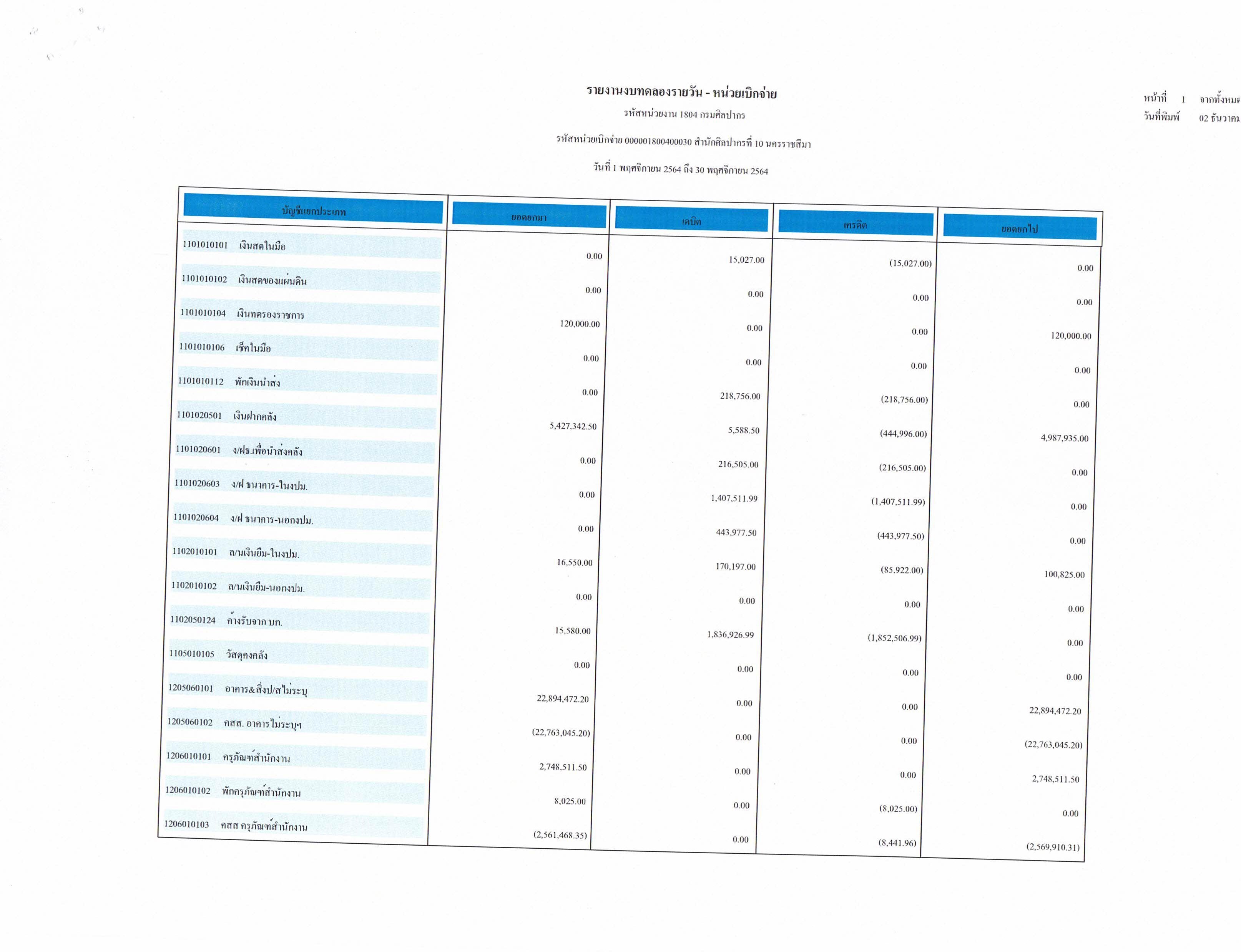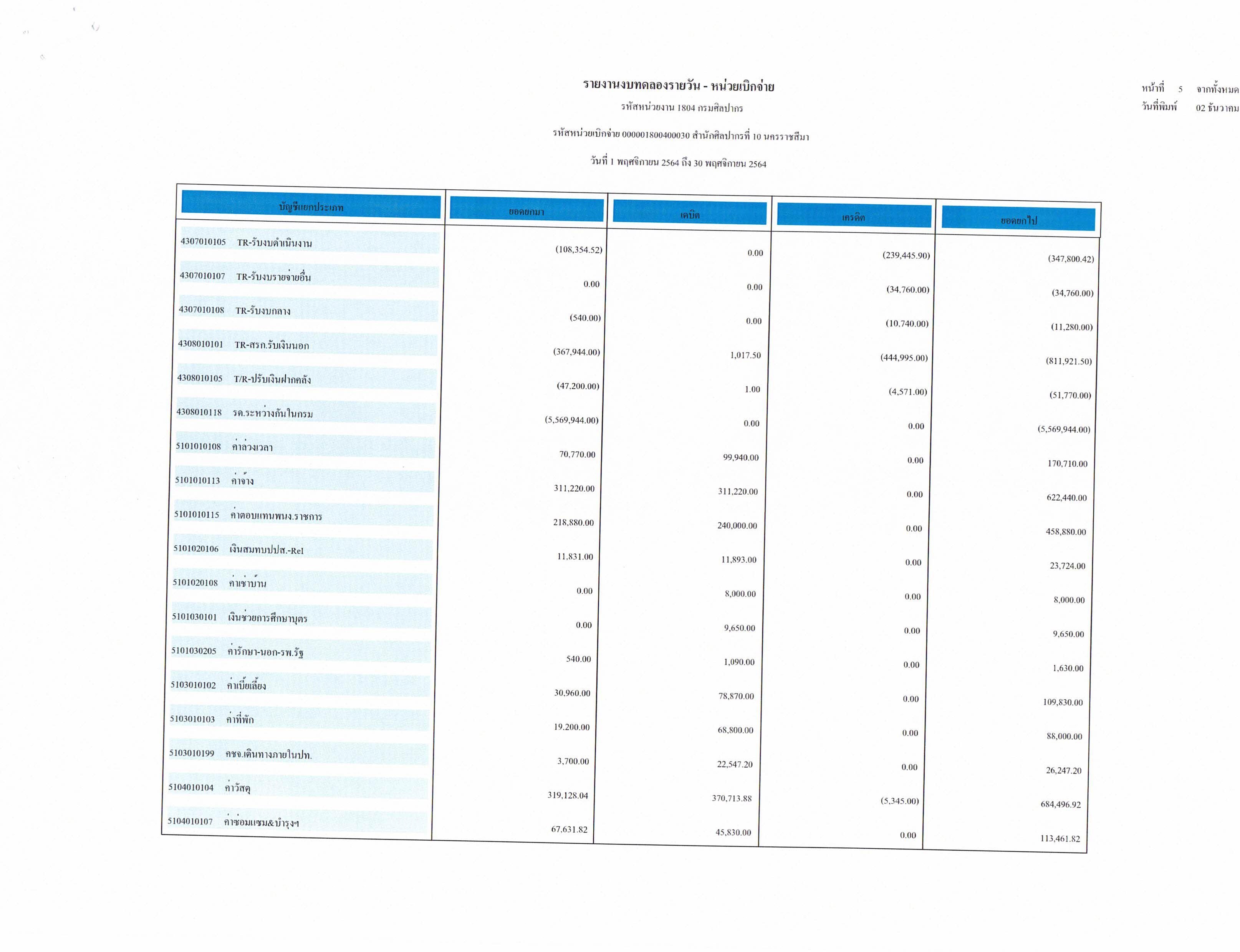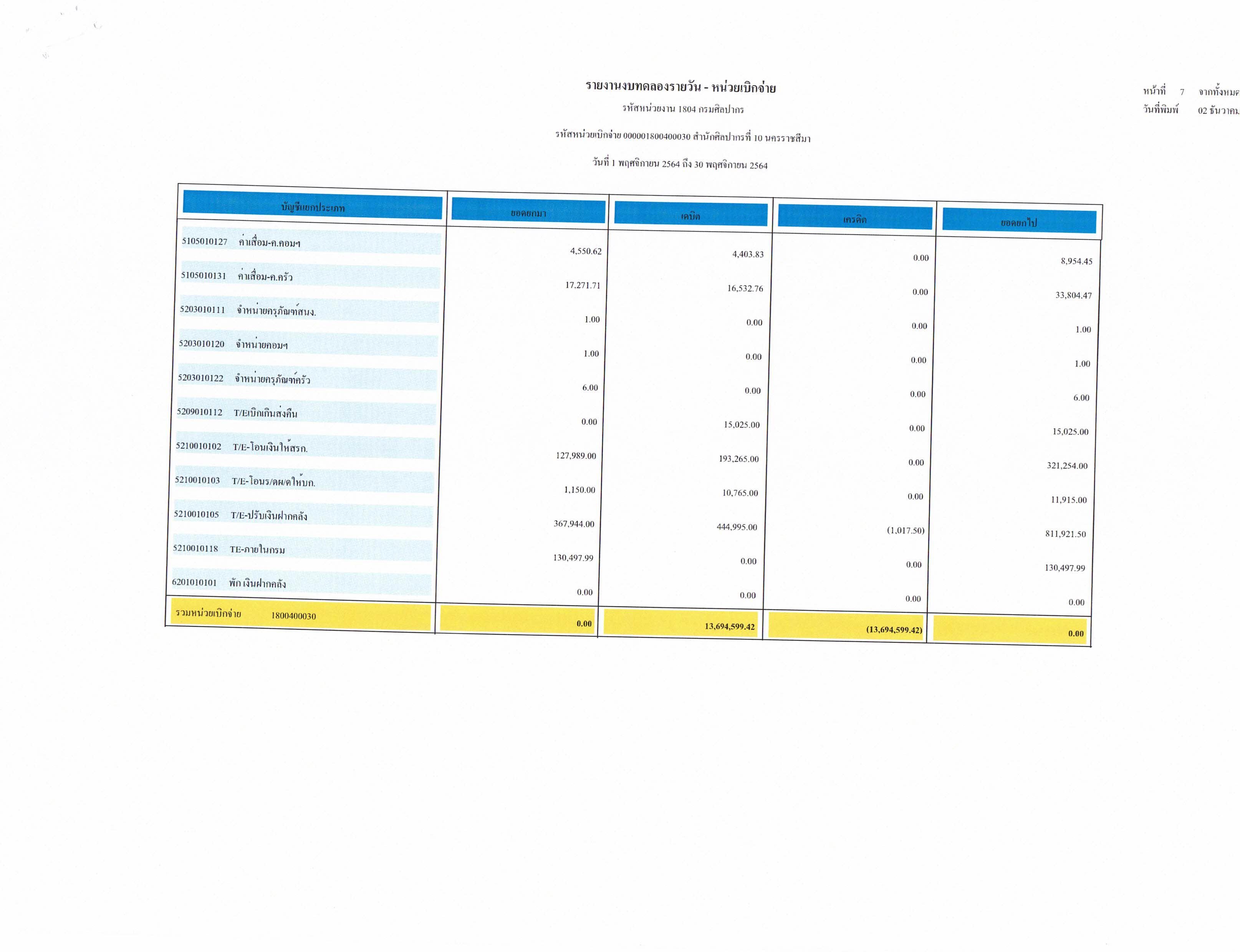 รายละเอียดงบทดลองประจำเดือน พฤศจิกายน ๒๕๖๔