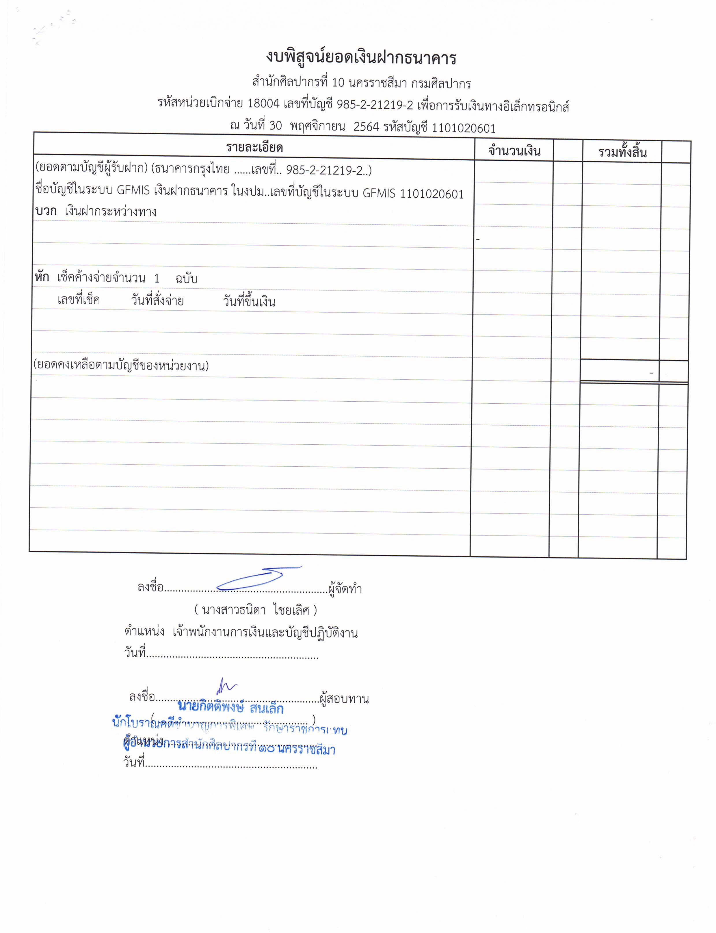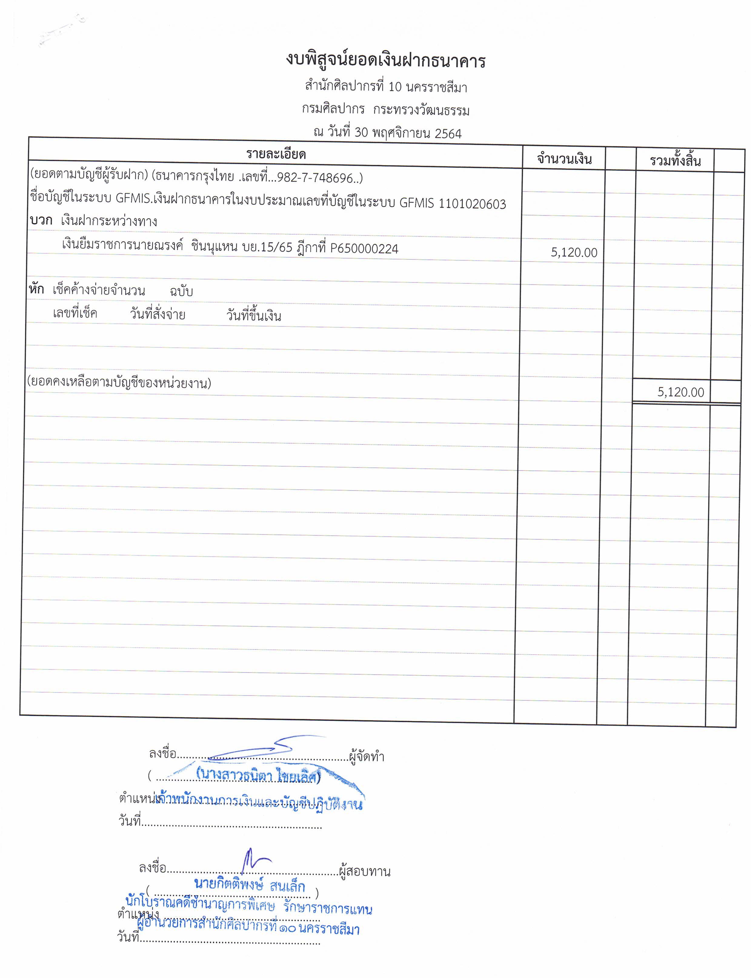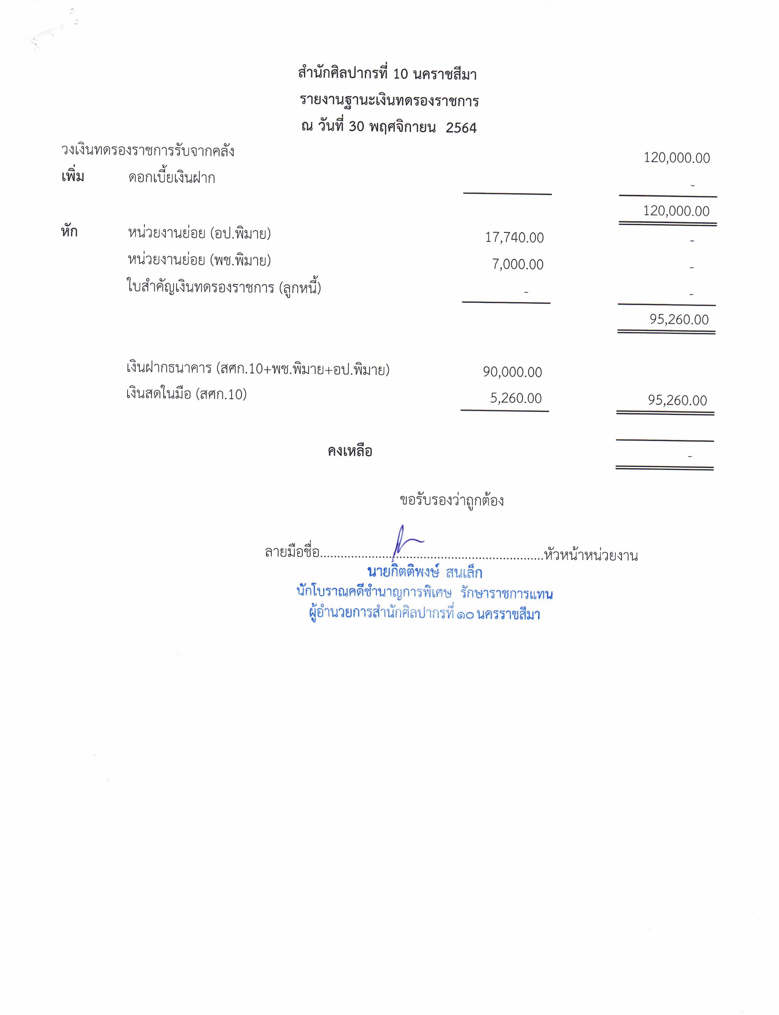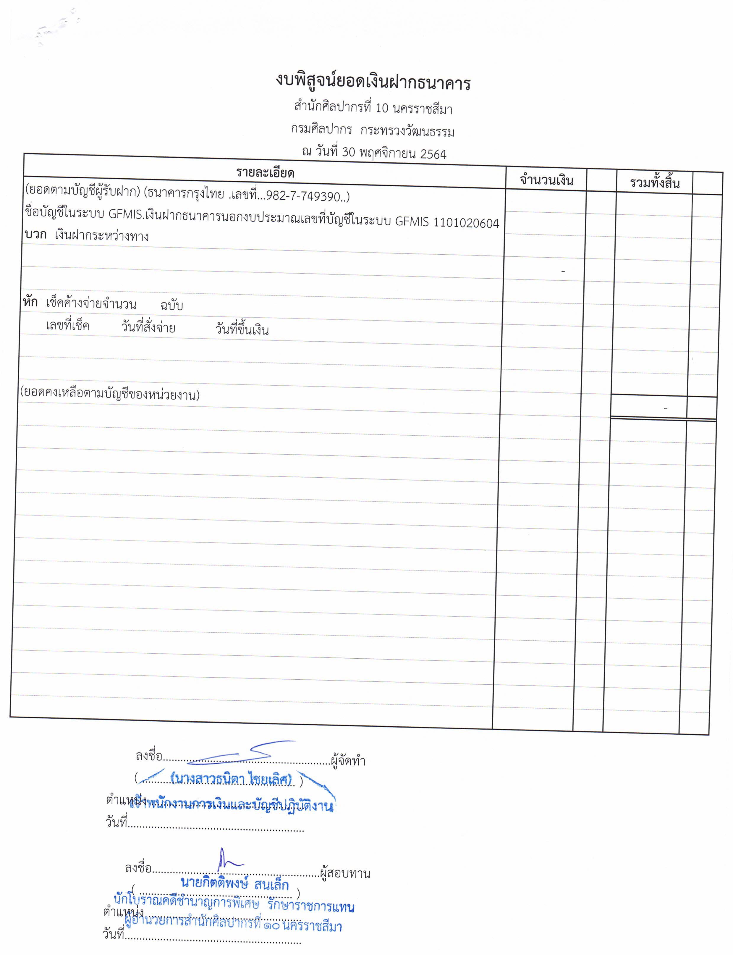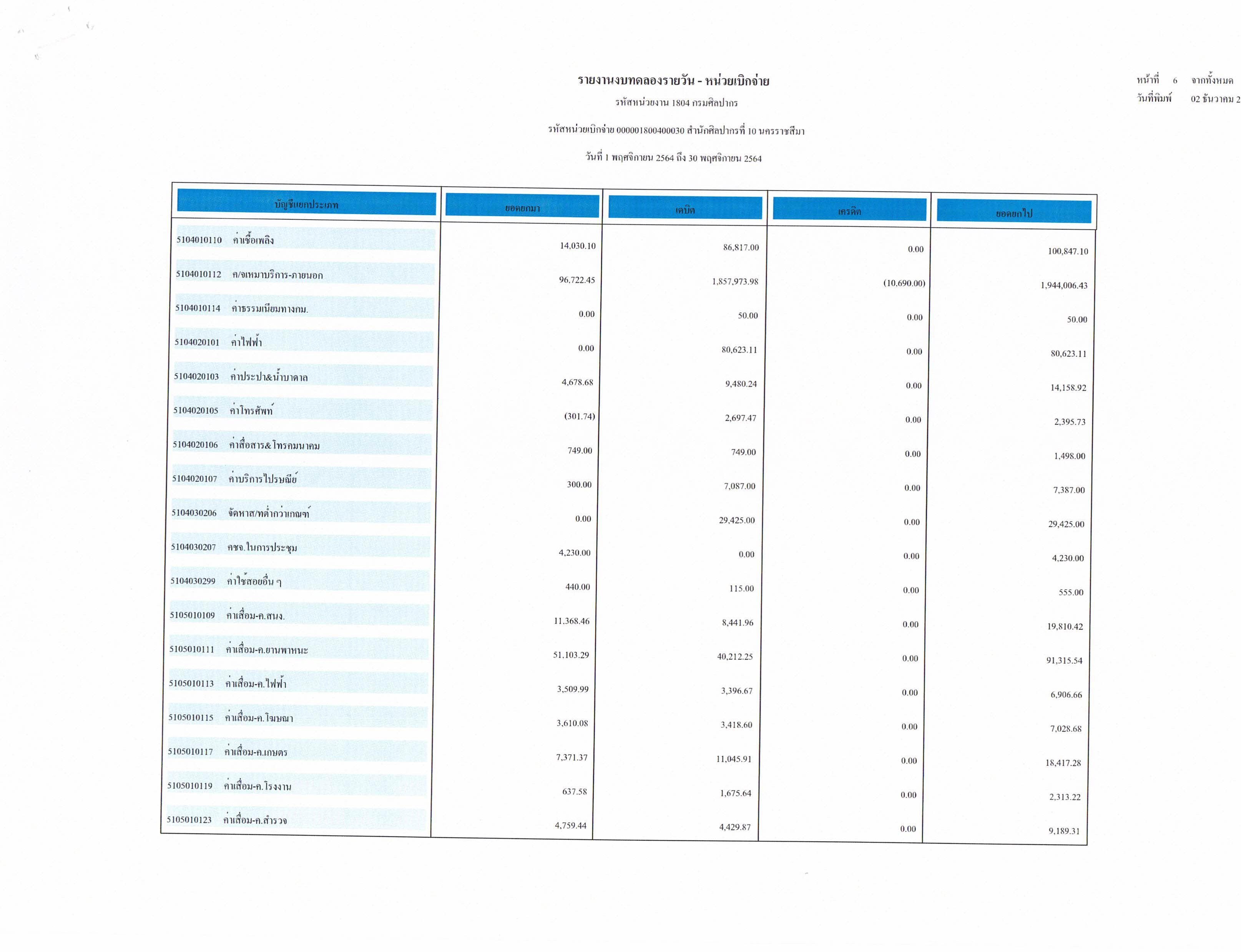 รายละเอียดงบทดลองประจำเดือน พฤศจิกายน ๒๕๖๔