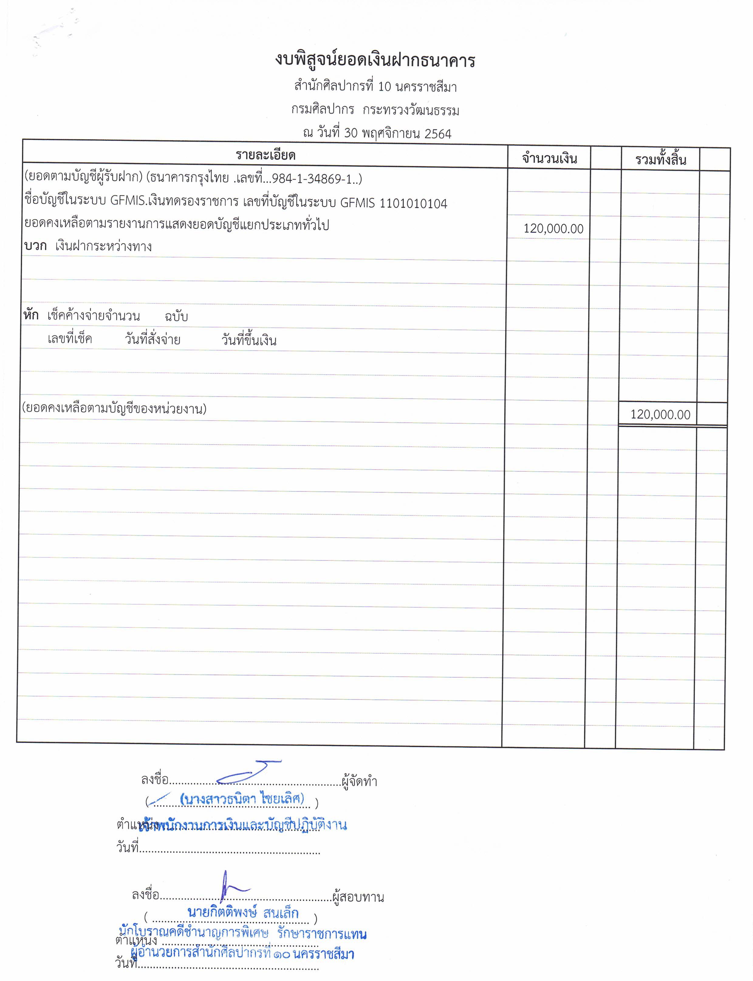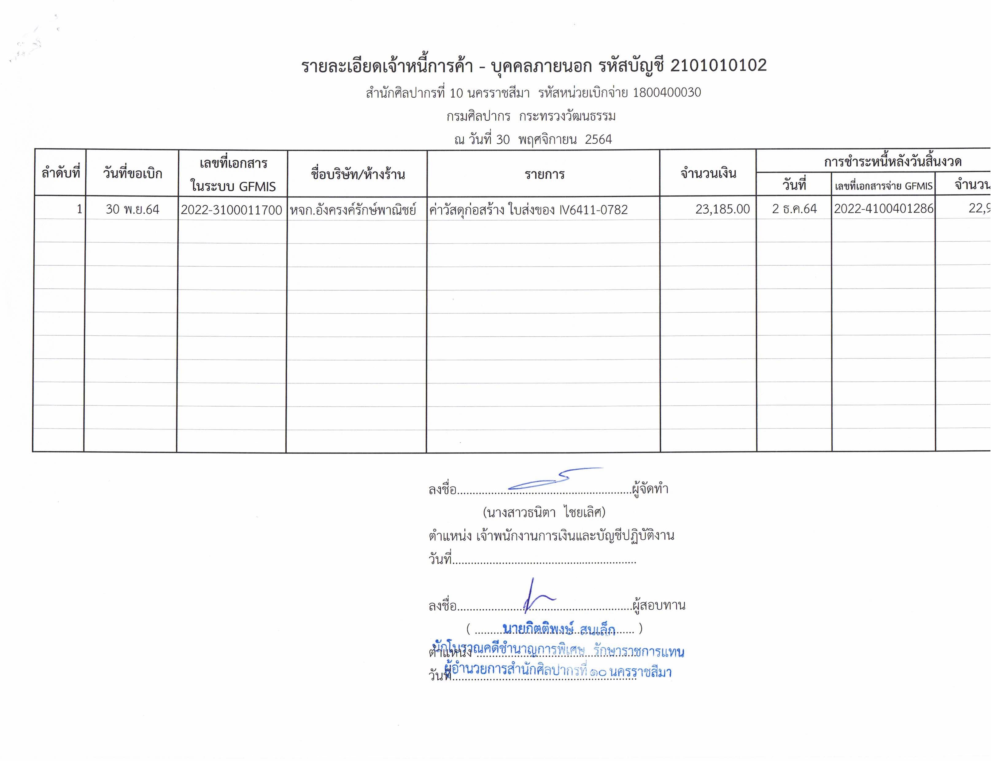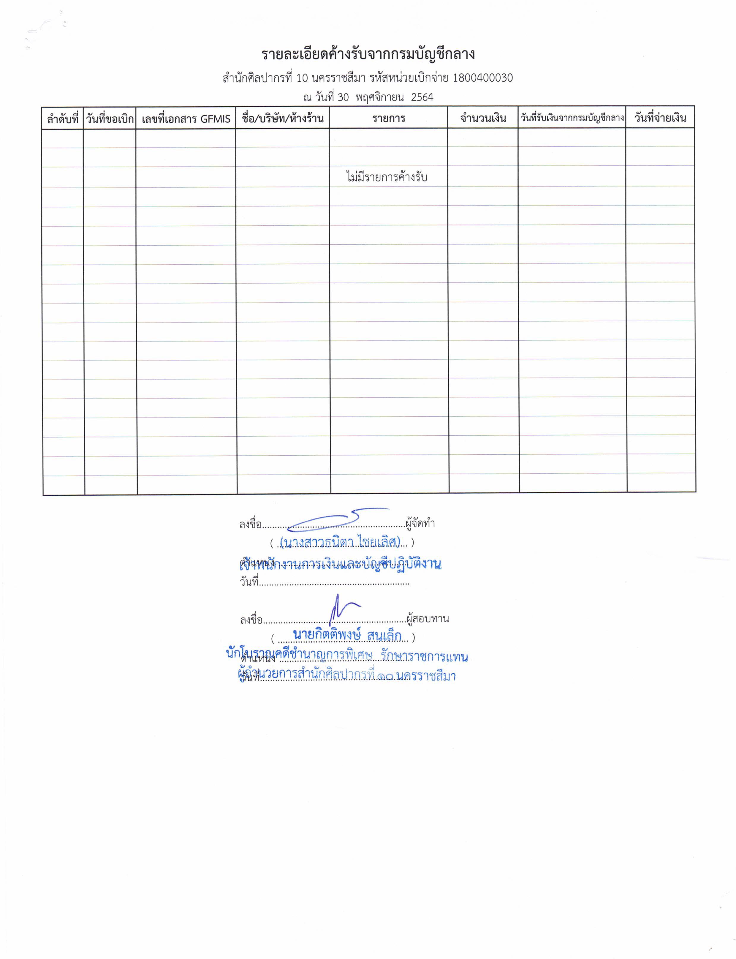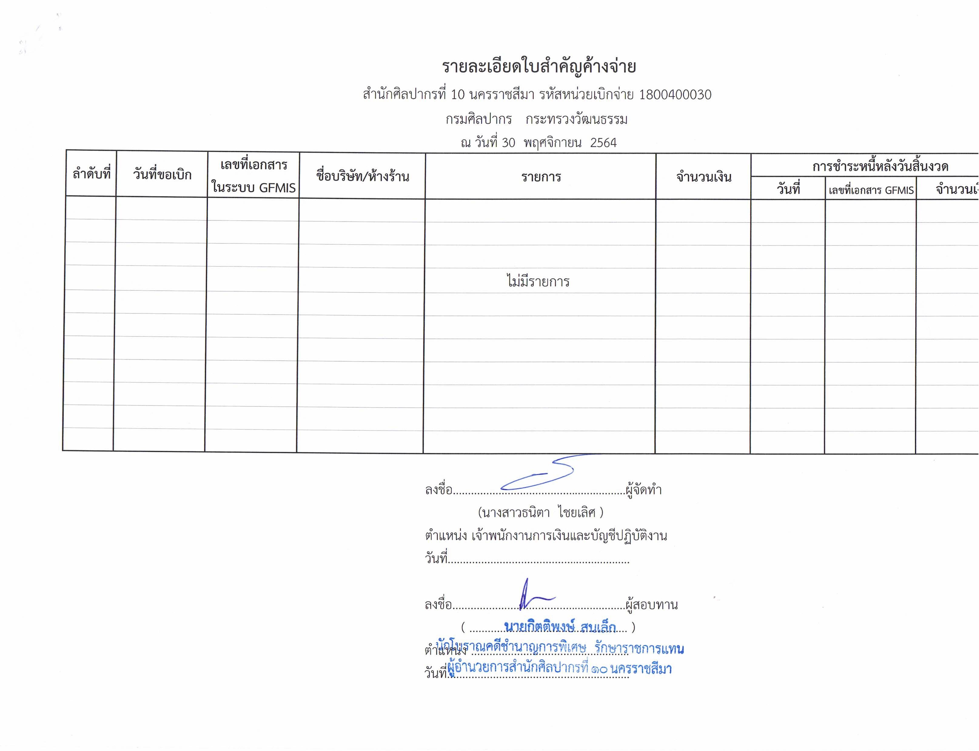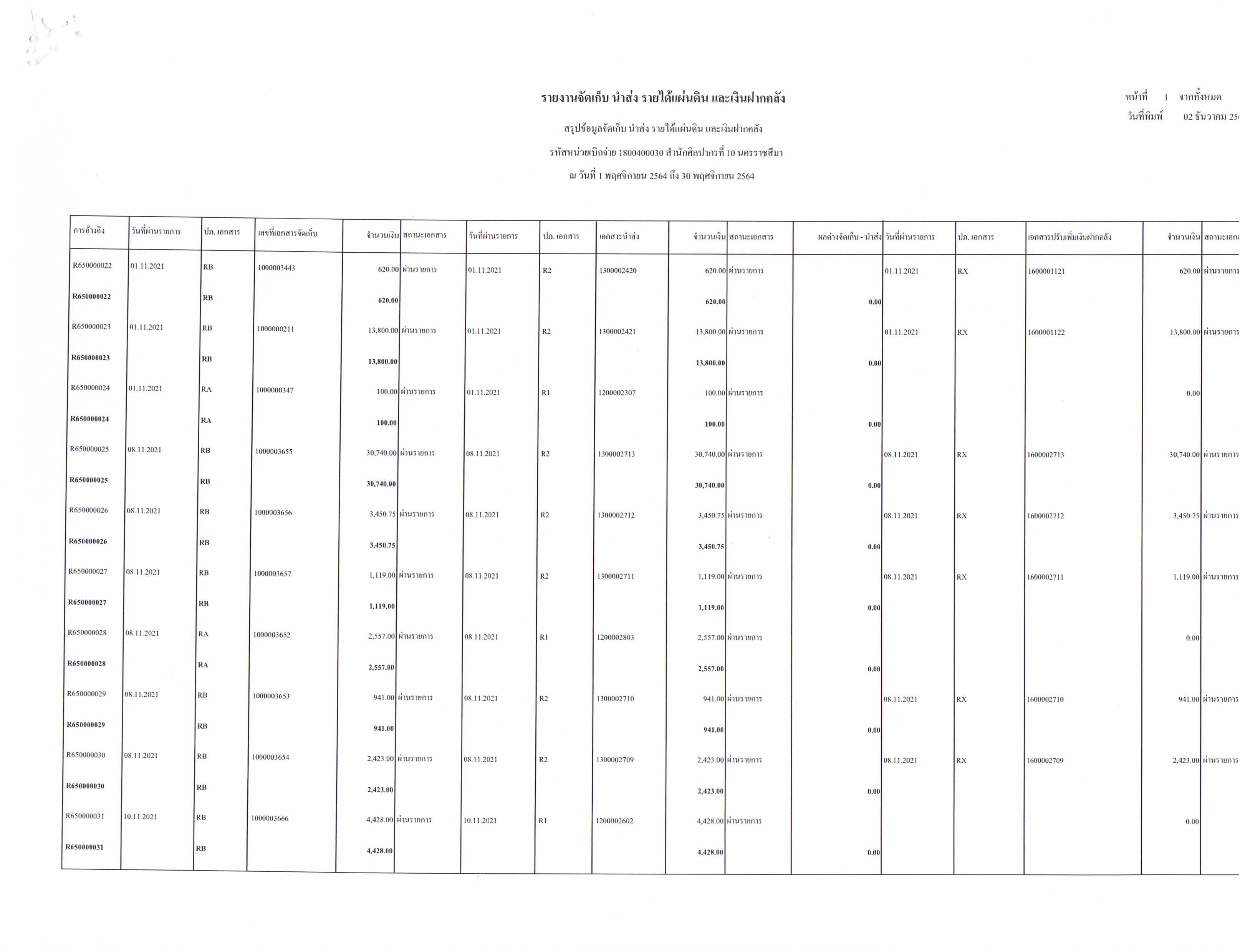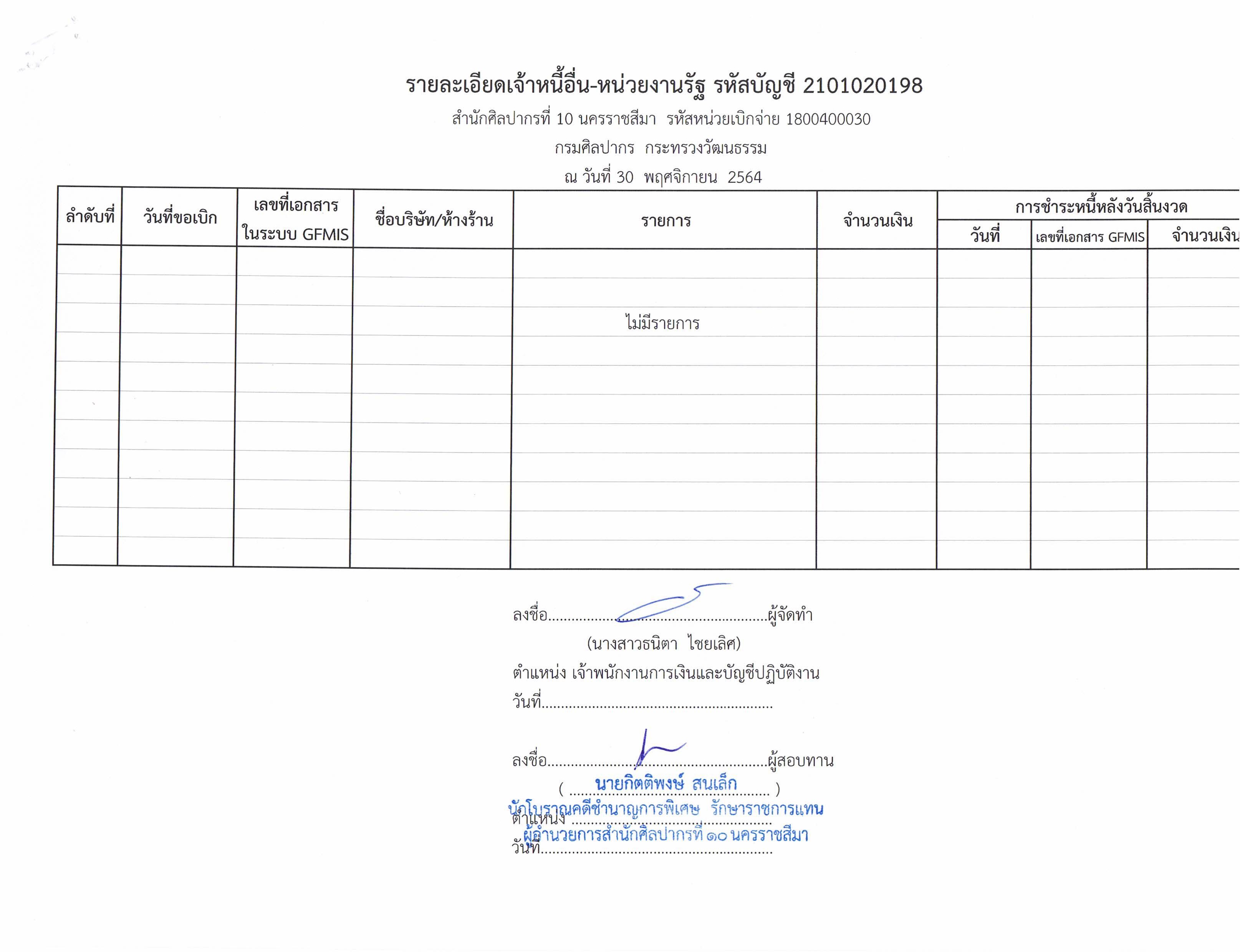 รายละเอียดงบทดลองประจำเดือน พฤศจิกายน ๒๕๖๔