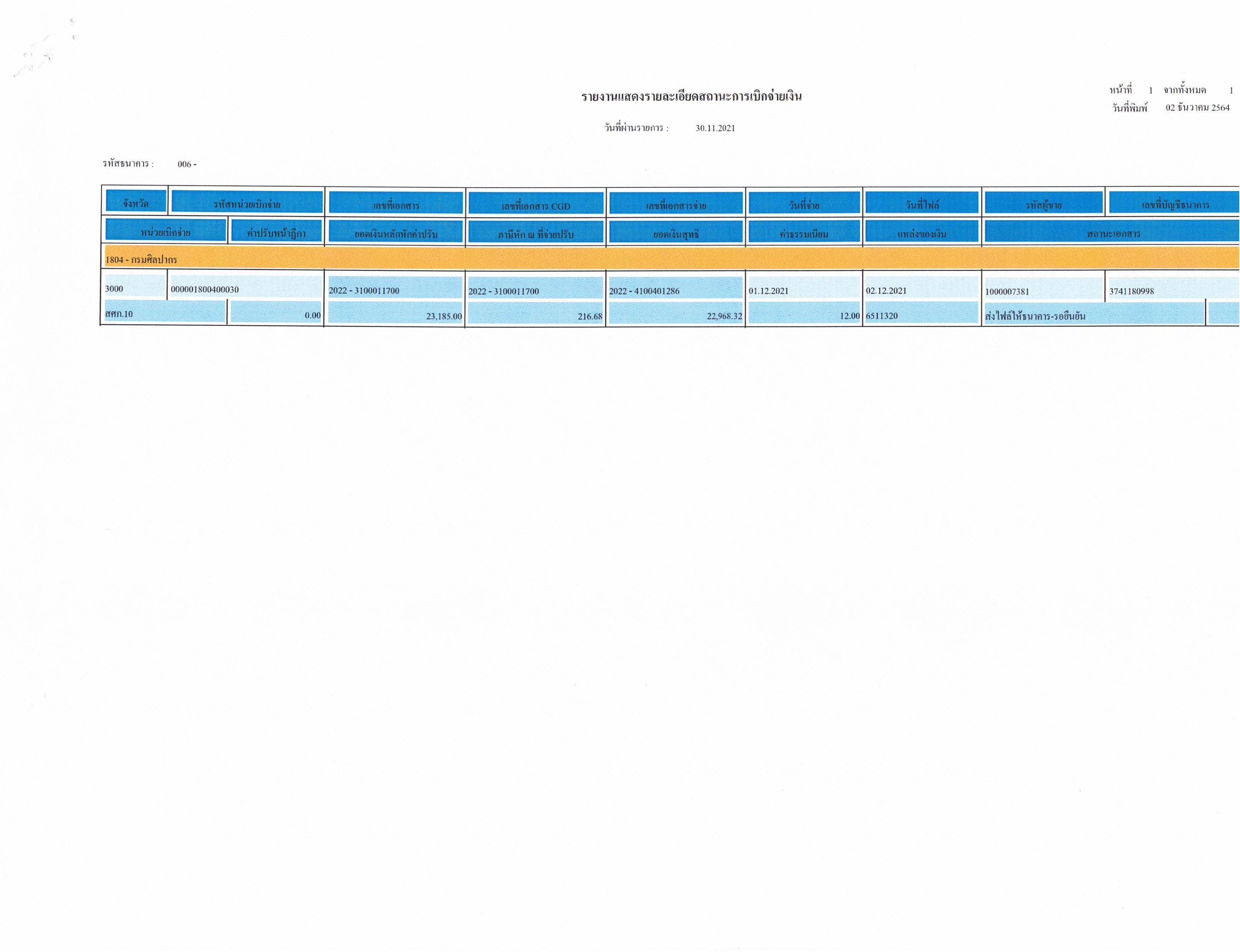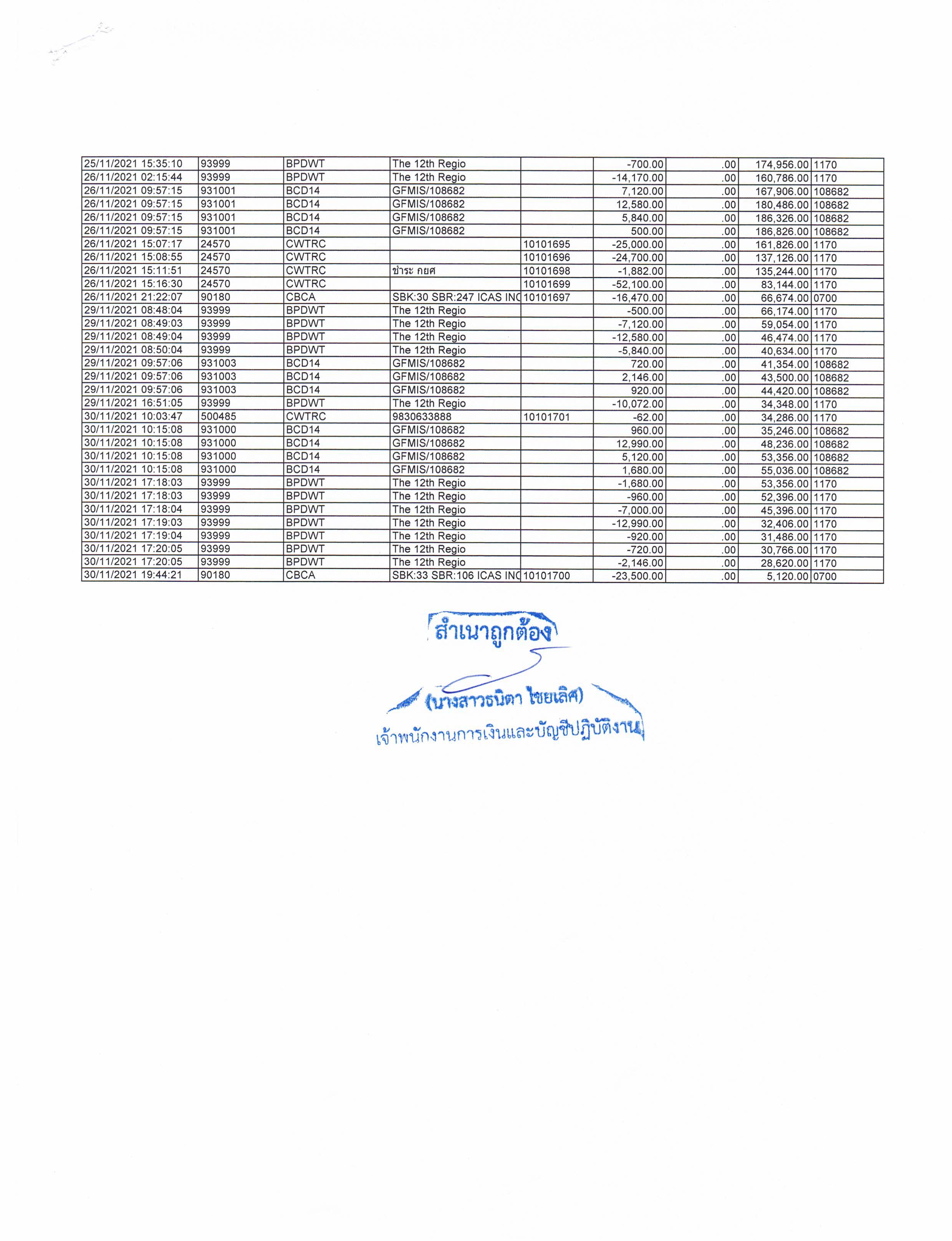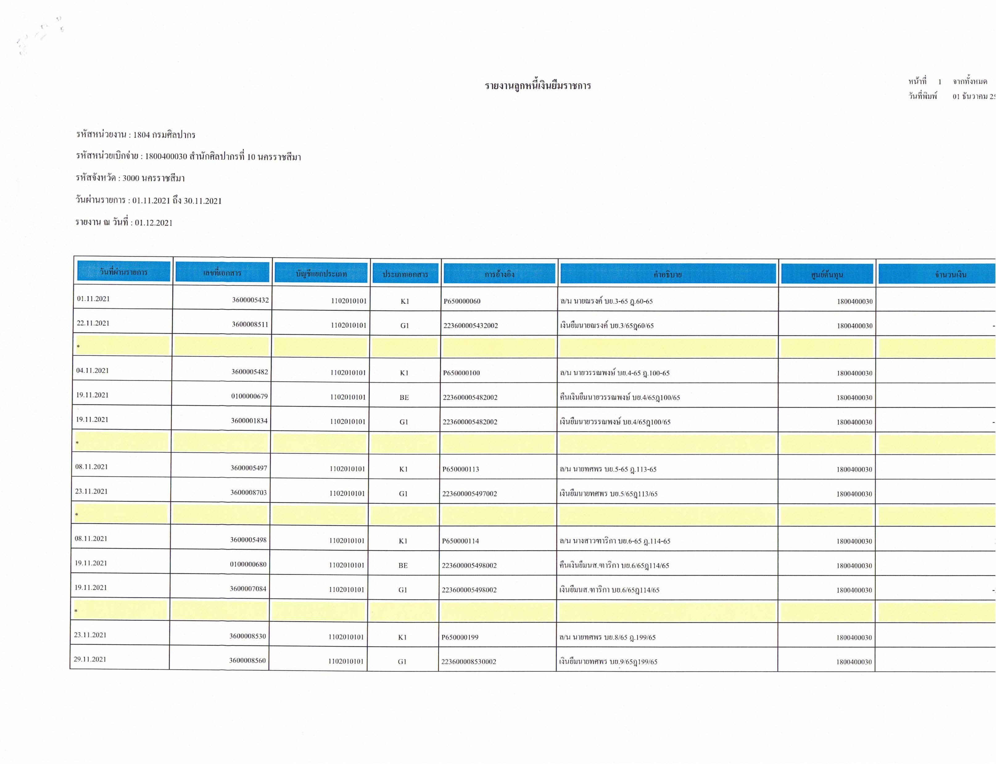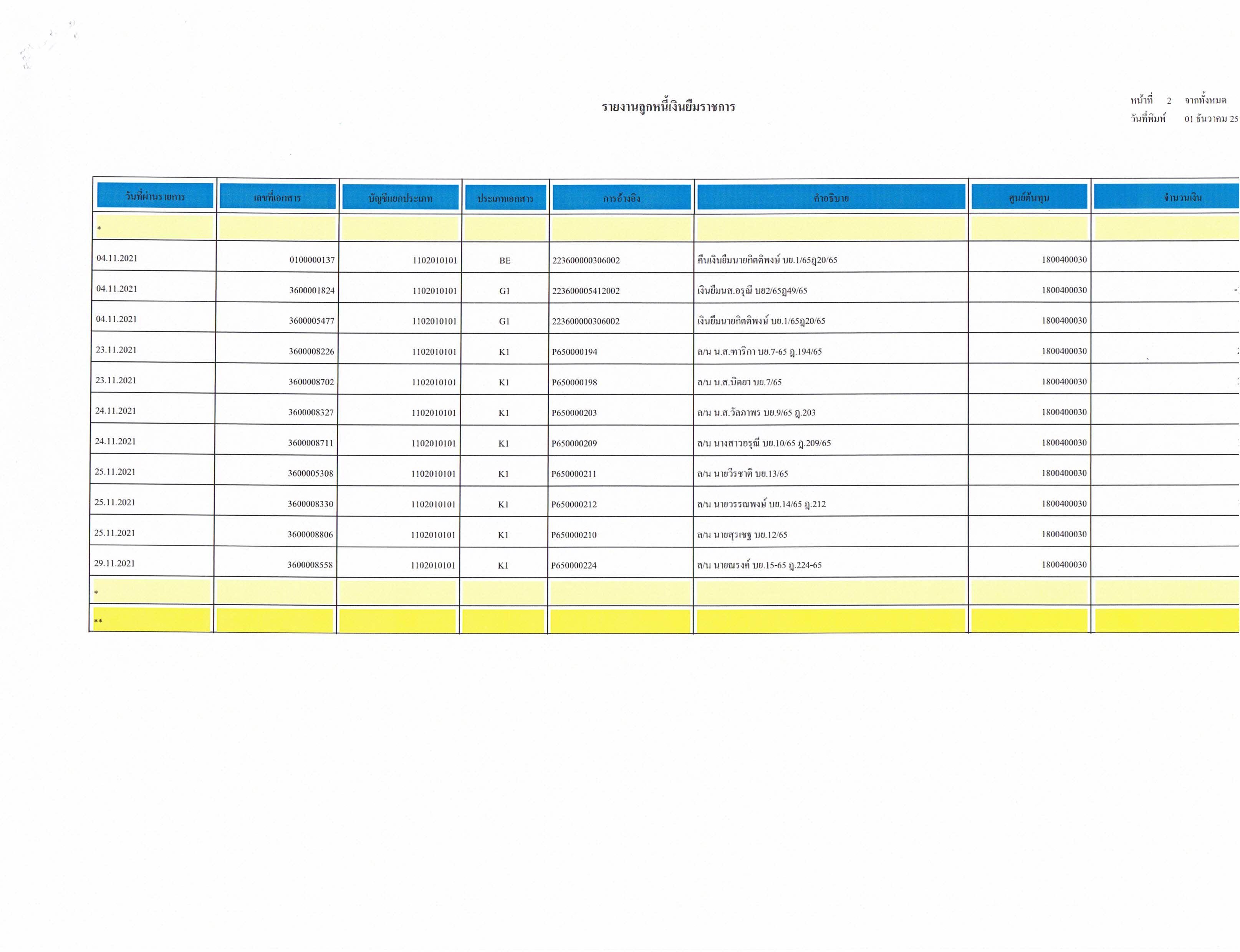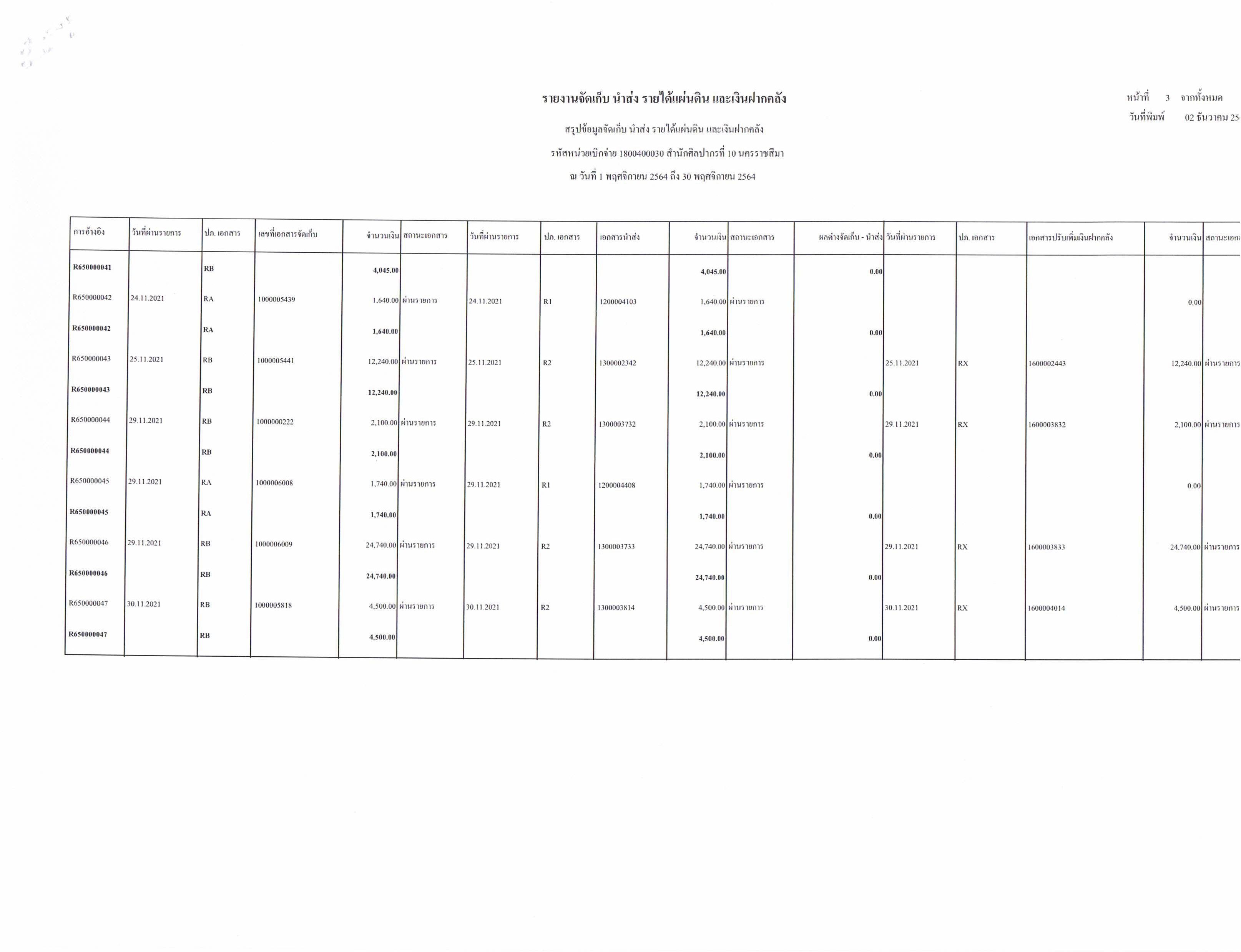 รายละเอียดงบทดลองประจำเดือน พฤศจิกายน ๒๕๖๔