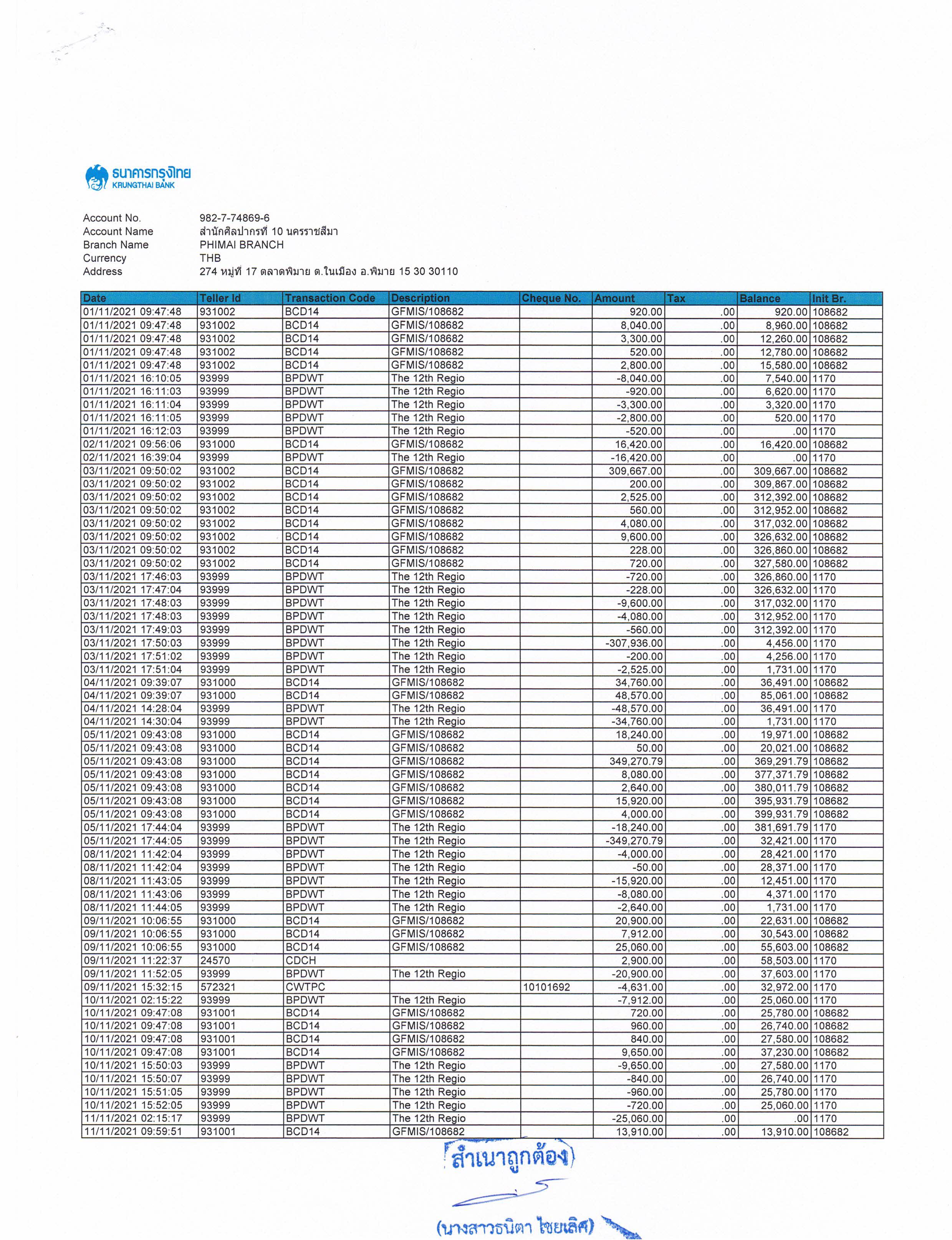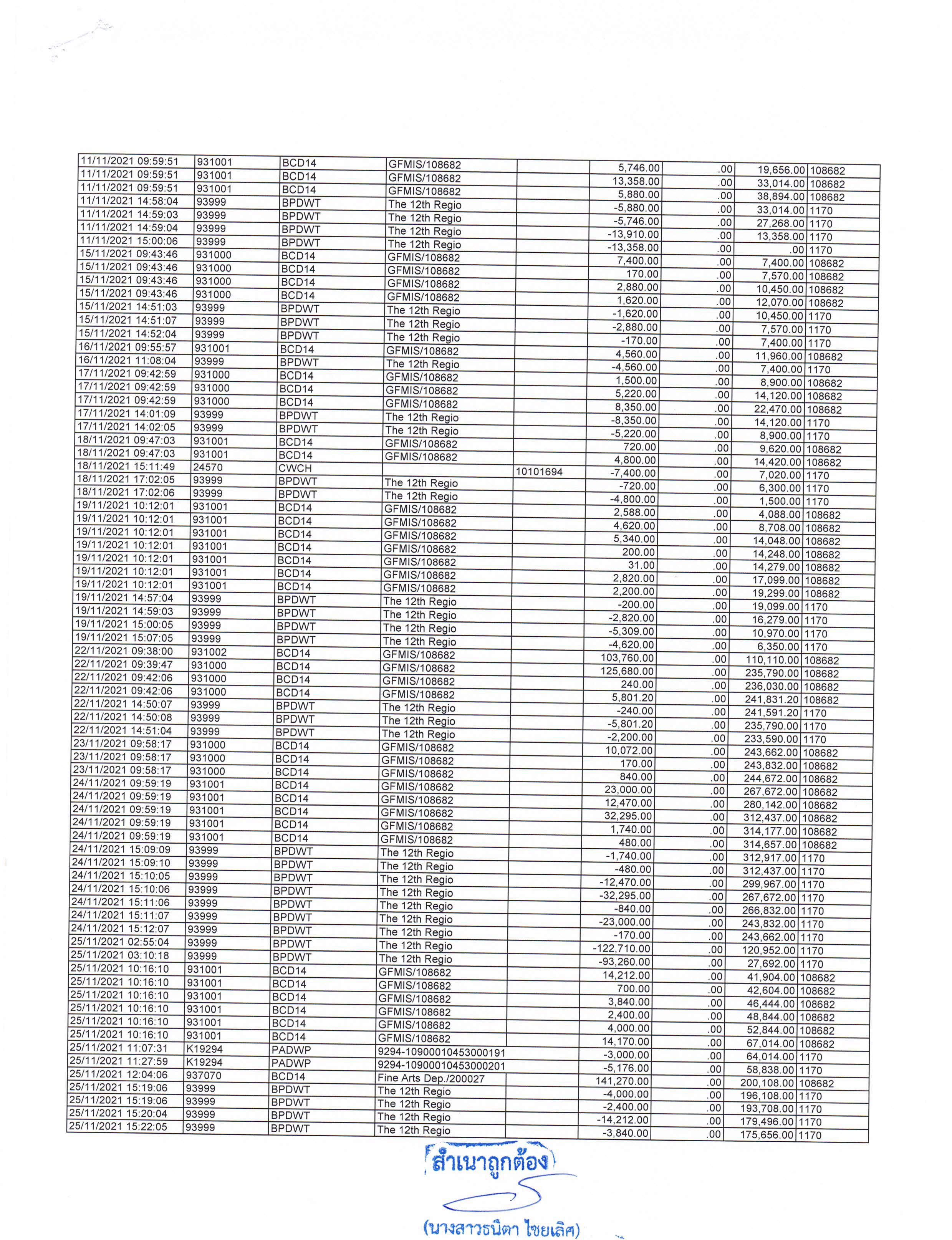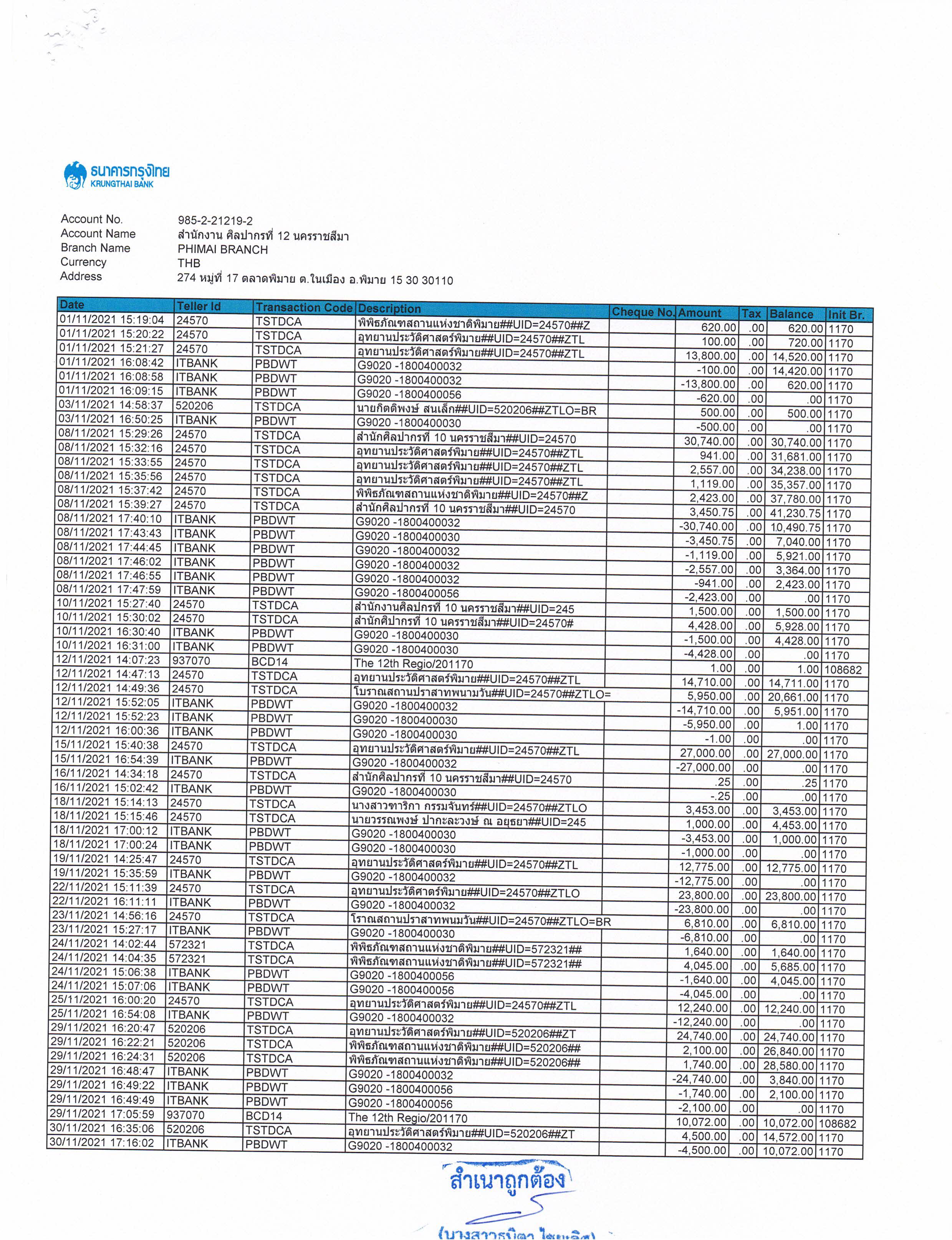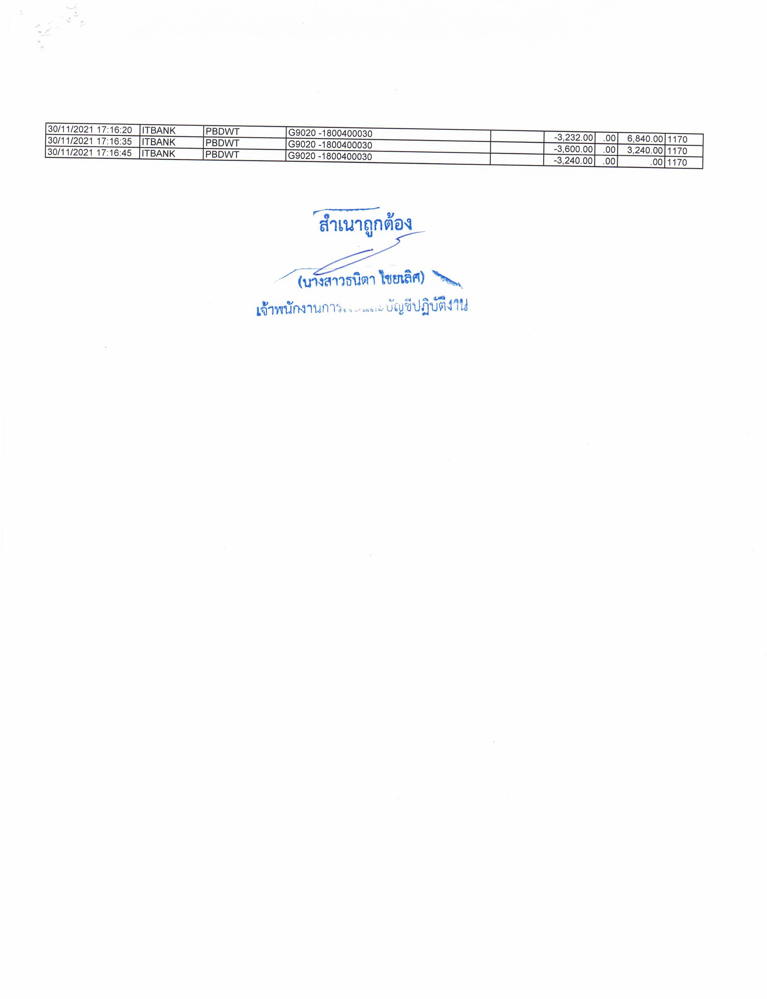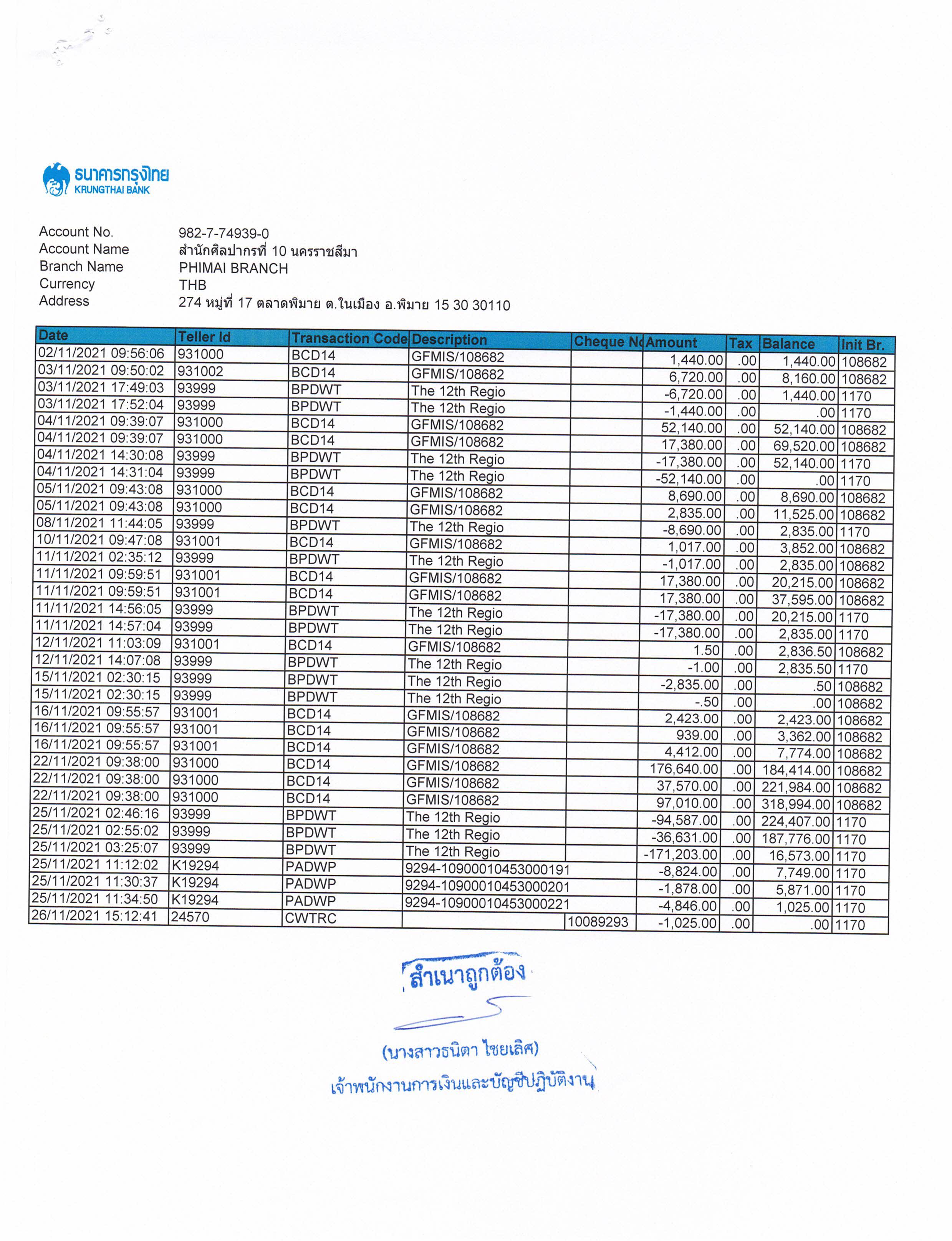 รายละเอียดงบทดลองประจำเดือน พฤศจิกายน ๒๕๖๔