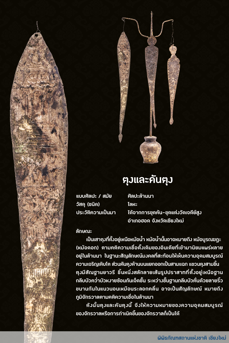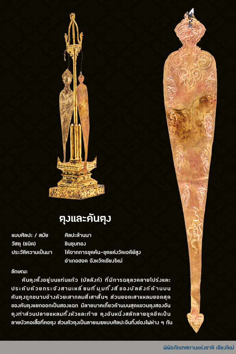 . พิพิธภัณฑสถานแห่งชาติ เชียงใหม่ ขอยกตัวอย่างตุงจากห้องโบราณวัตถุที่ได้จากการขุดค้นทางโบราณฮอด จังหวัดเชียงใหม่ 2 รายการ มาให้ทุกท่านได้ชมกันค่ะ หากท่านใดสนใจสามารถแวะเข้ามาชมได้ที่พิพิธภัณฑ์ของเรานะคะ พบกันใหม่ในองค์ความรู้รอบหน้าค่าาา