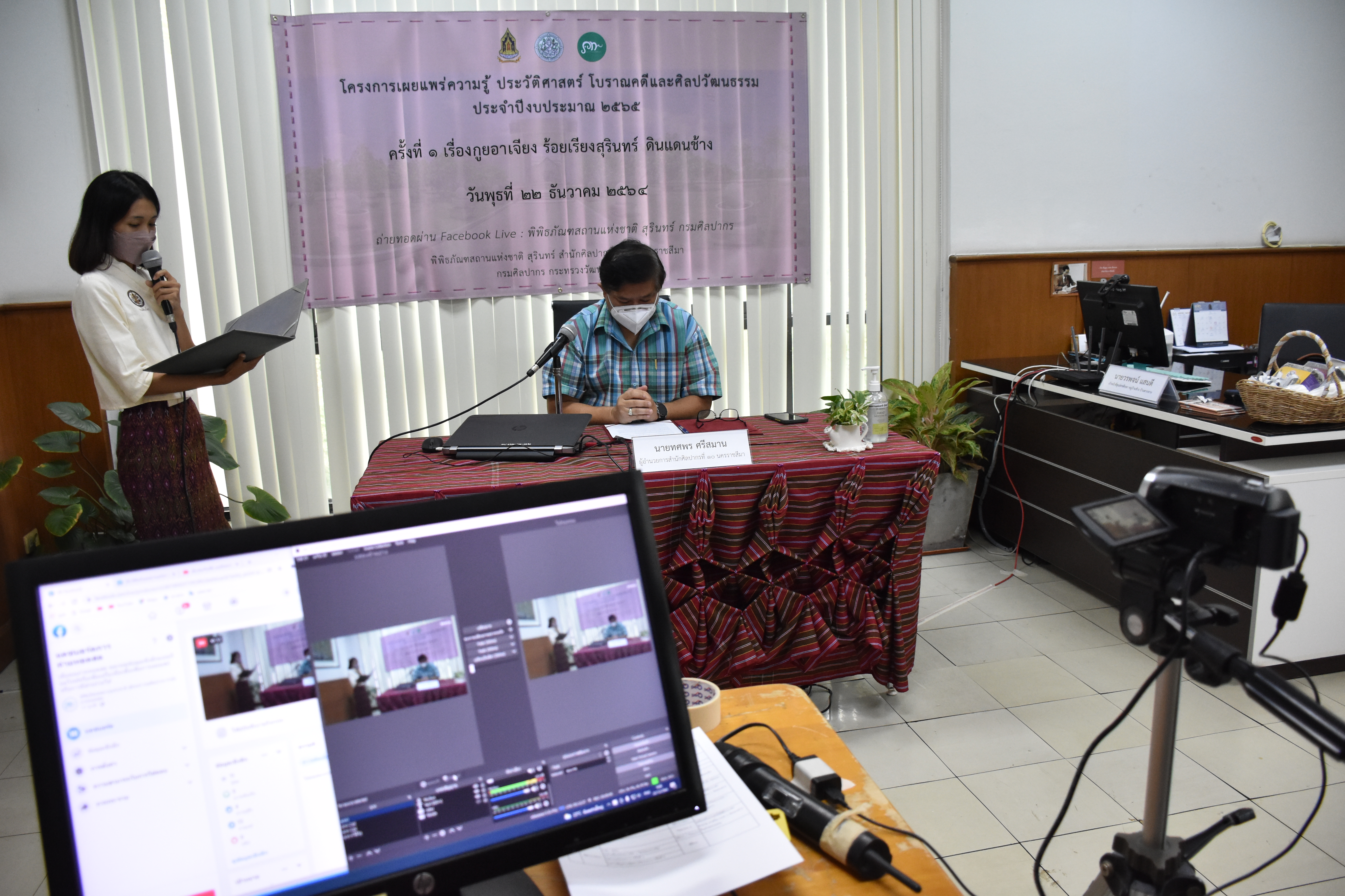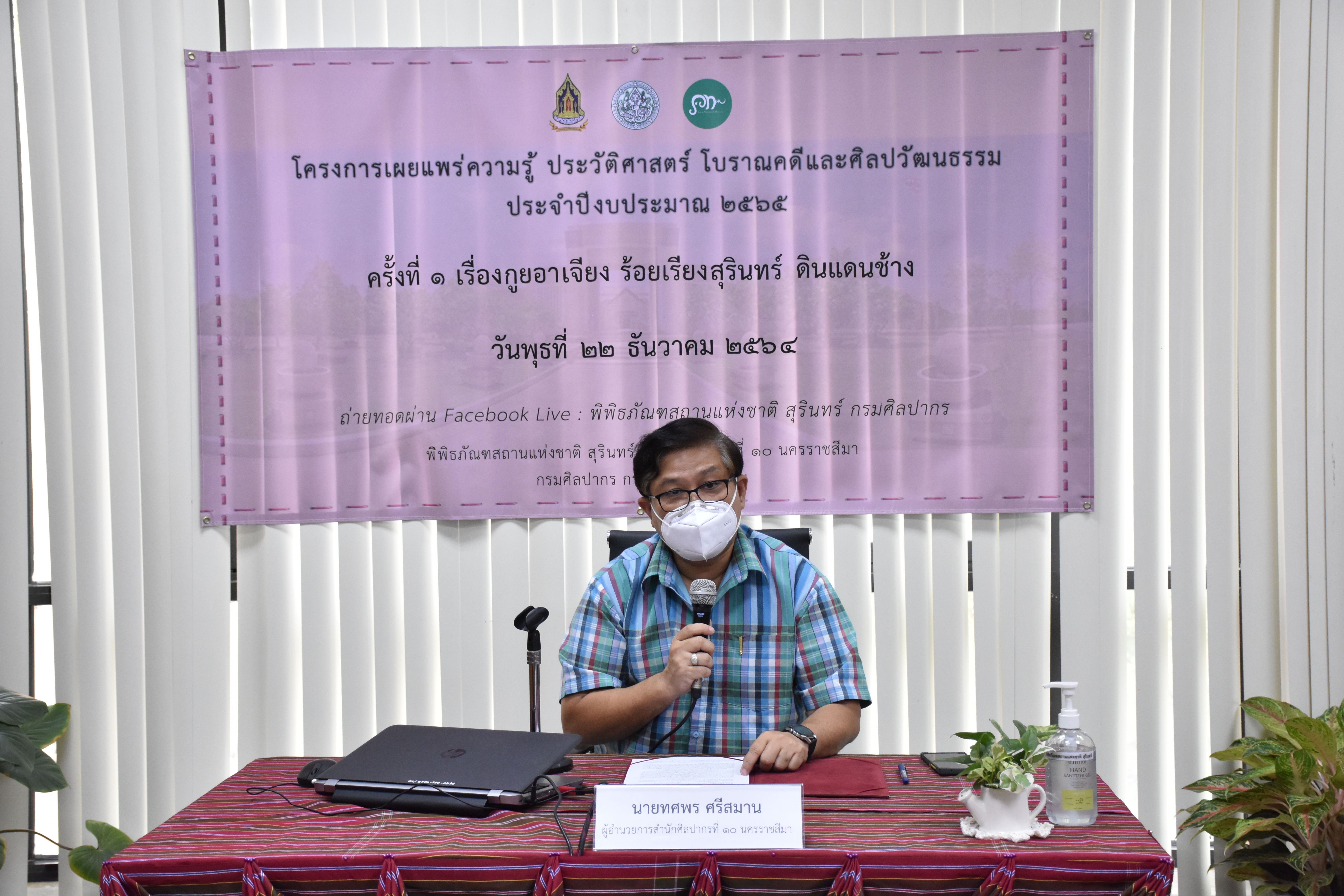 การบรรยายพิเศษ เรื่อง "กูยอาเจียง ร้อยเรียงสุรินทร์ ดินแดนช้าง" ในวันพุธที่ ๒๒ ธันวาคม ๒๕๖๔ ผ่านช่องทางออนไลน์ Facebook Live พิพิธภัณฑสถานแห่งชาติ สุรินทร์ กรมศิลปากร