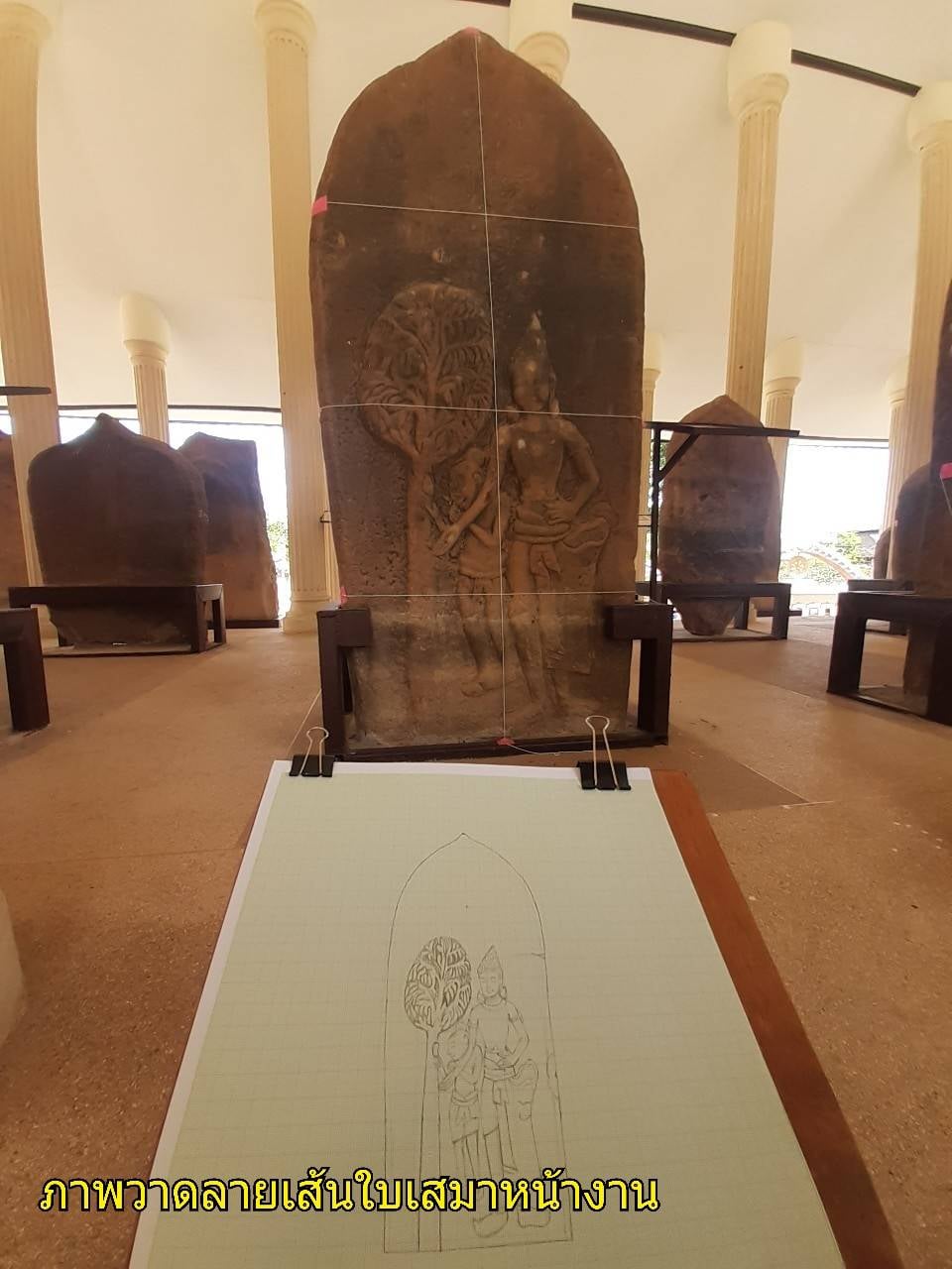 ๕. ดำเนินการวาดภาพลายเส้นใบเสมาให้สมบูรณ์ตามแนวทางการวิเคราะห์ร่วมกับนักโบราณคดี