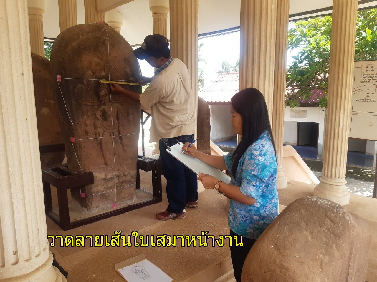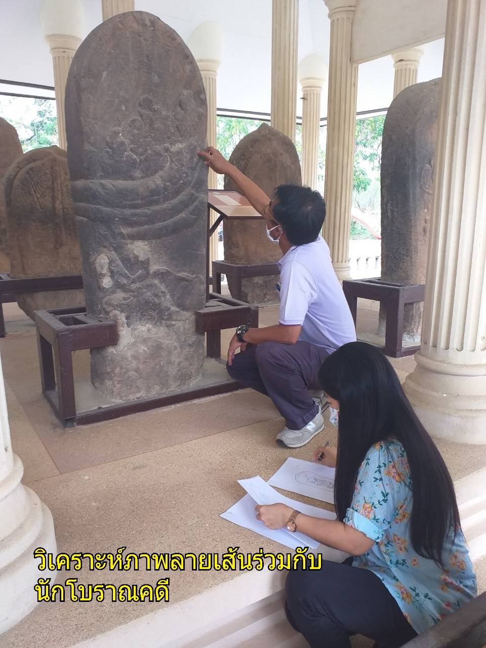 ๒. ดำเนินการวิเคราะห์ลายเส้นใบเสมา ร่วมกับนักโบราณคดี เพื่อเติมเต็มภาพลายเส้นให้สมบูรณ์