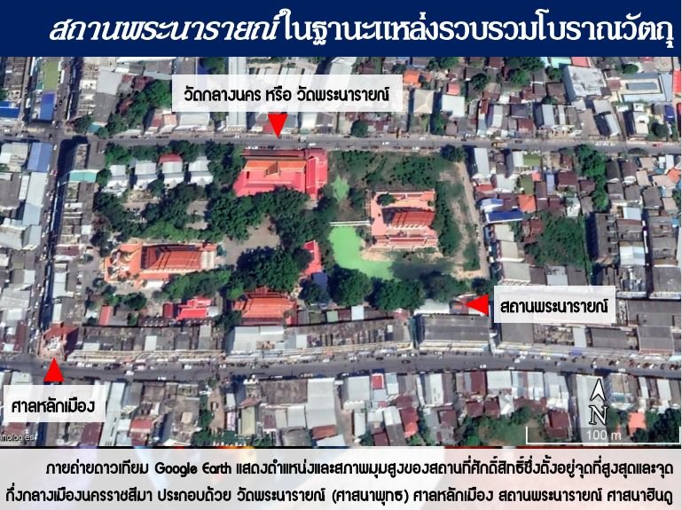 บริเวณจุดกึ่งกลางเมืองนครราชสีมา นอกจากจะเป็นจุดสูงสุดของเมืองนครราชสีมาแล้ว พื้นที่บริเวณนี้นับว่าเป็น หัวใจของเมืองอีกด้วย เพราะบริเวณดังกล่าวเป็นพื้นที่ศักดิ์สิทธิ์ ทั้งในศาสนาพุทธ และศาสนาฮินดู ที่ชาวโคราชให้ความเคารพศรัทธามาอย่างยาวนาน อันได้แก่ วัดกลางนคร (วัดพระนารายณ์มหาราช) ศาลหลักเมือง และสถานพระนารายณ์ ที่จะนำมาเสนอในวันนี้ครับ