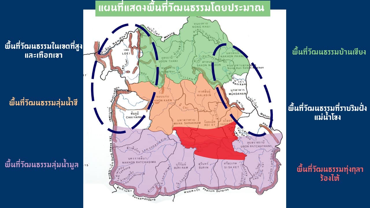 "พื้นที่วัฒนธรรมยุคก่อนประวัติศาสตร์ในภาคตะวันออกเฉียงเหนือ โดยแบ่งตามวัถุทางวัฒนธรรมโดยสังเขป"