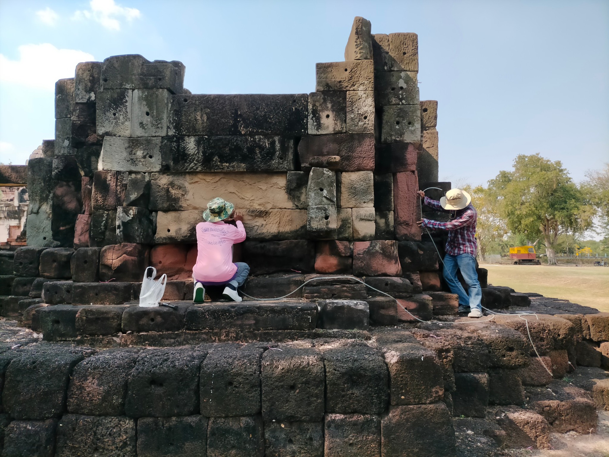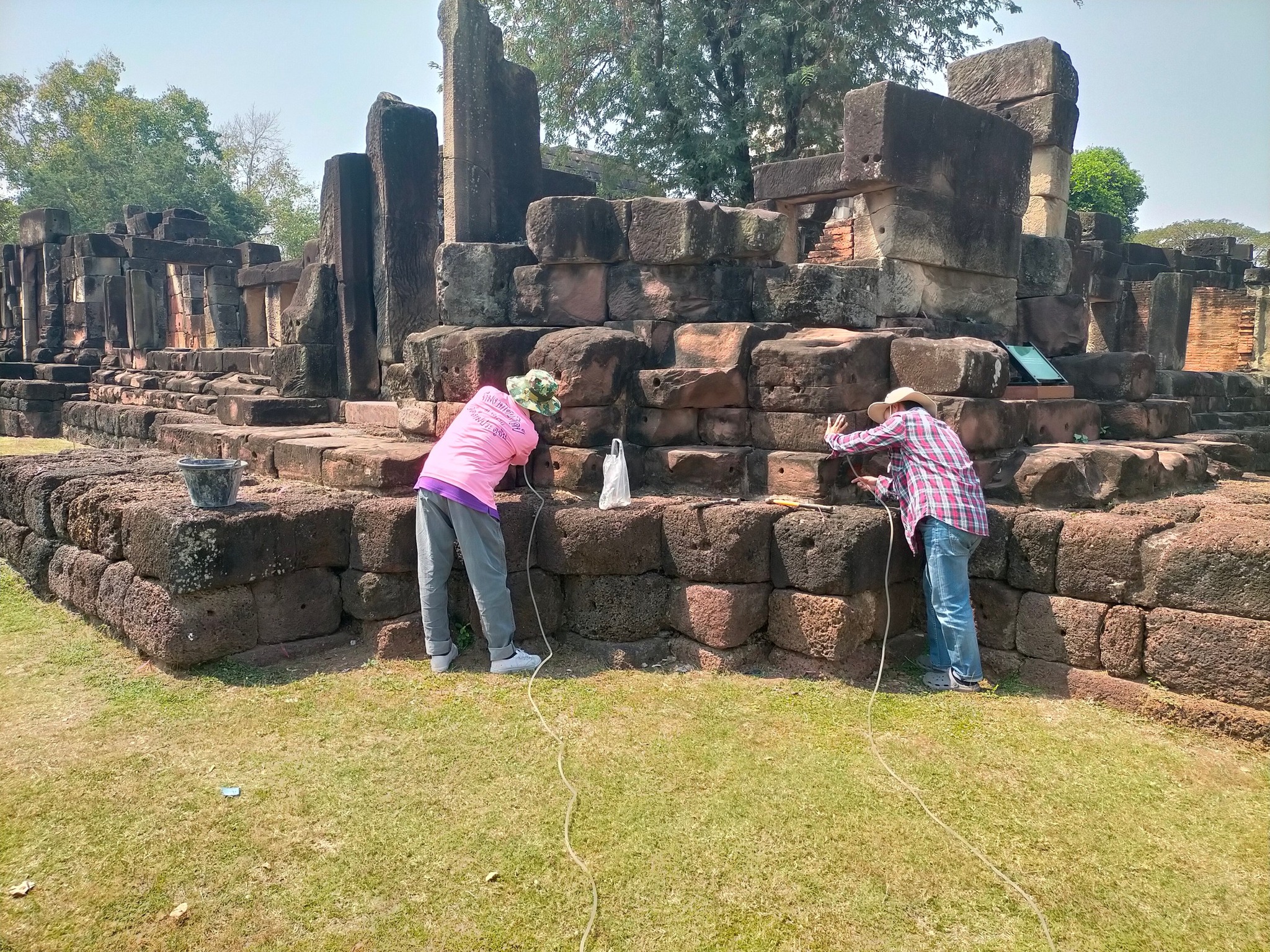 สำนักศิลปากรที่ ๑๐ นครราชสีมา โดยกลุ่มอนุรักษ์โบราณสถาน ลงพื้นที่ปฏิบัติงานตามแผนงานกิจกรรมทดลองประกอบหินโบราณสถานปราสาทพนมวัน ตำบลบ้านโพธิ์ อำเภอเมืองนครราชสีมา จังหวัดนครราชสีมา ประจำปีงบประมาณ พ. ศ. ๒๕๖๕ ระหว่างวันที่ ๑ – ๔ มีนาคม ๒๕๖๕