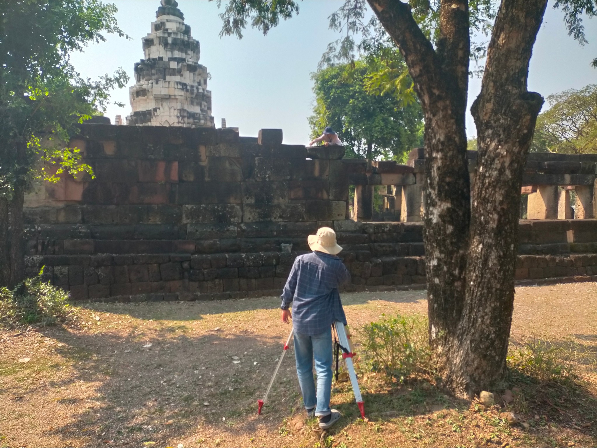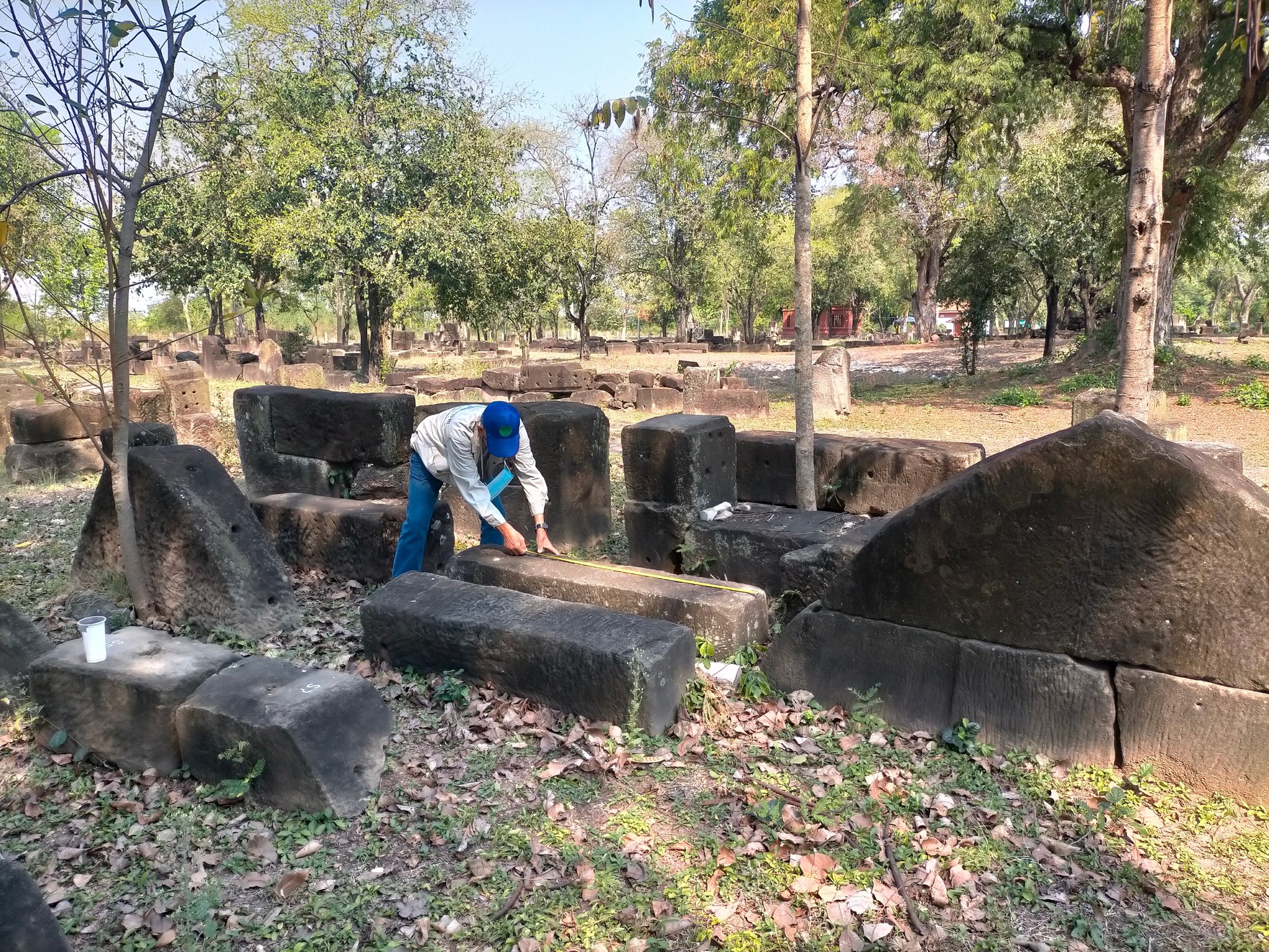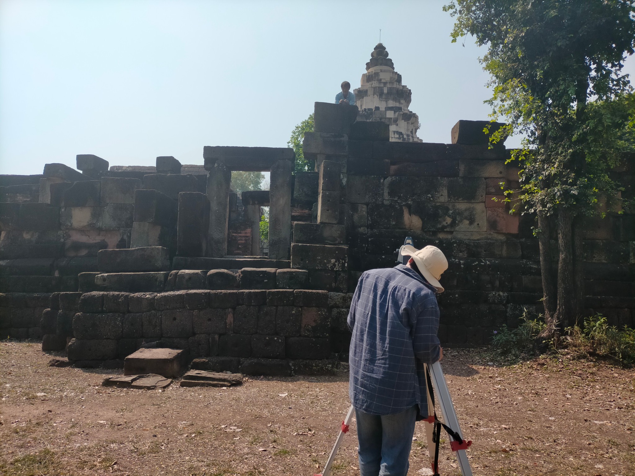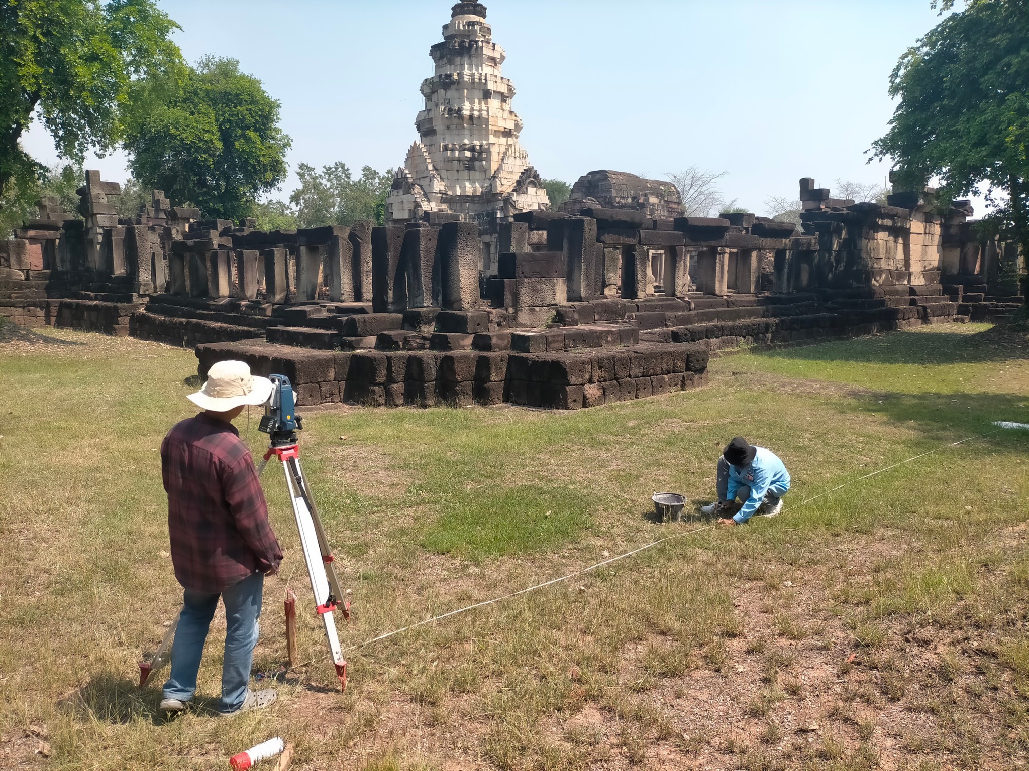 - วางผังกริดโดยรอบโบราณสถานปราสาทพนมวันเพื่อดำเนินการเขียนแบบสภาพหลังการบูรณะ (สภาพปัจจุบัน) ดำเนินการวางผังกริดรอบนอกโคปุระและระเบียงคตทิศใต้