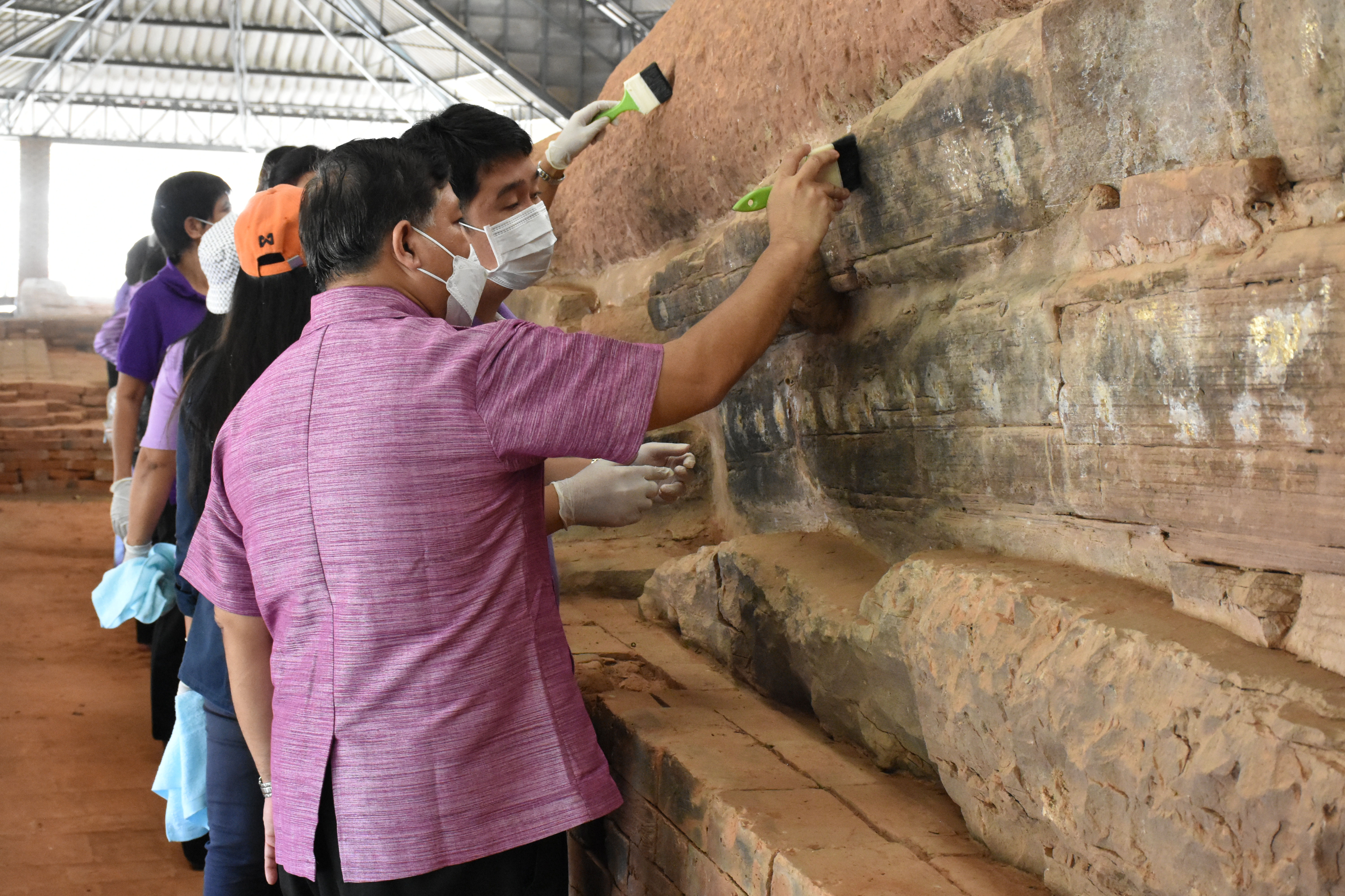 วันอังคารที่ ๕ เมษายน ๒๕๖๕ เวลา ๐๙.๓๐ น. นายวิเชียร จันทรโณทัย ผู้ว่าราชการจังหวัดนครราชสีมา เป็นประธานในพิธีเปิดกิจกรรมรณรงค์การดูแลรักษามรดกทางศิลปวัฒนธรรมของชาติ เนื่องในวันอนุรักษ์มรดกไทย พุทธศักราช ๒๕๖๕ เพื่อเทิดพระเกียรติสมเด็จพระกนิษฐาธิราชเจ้า กรมสมเด็จพระเทพรัตนราชสุดาฯ สยามบรมราชกุมารี โดยมีนายทศพร ศรีสมาน ผู้อำนวยการสำนักศิลปากรที่ ๑๐ นครราชสีมา เป็นผู้กล่าวรายงานวัตถุประสงค์ และมีข้าราชการ รัฐวิสาหกิจ พ่อค้า ประชาชน เครือข่ายมรดกศิลปวัฒนธรรม และผู้มีเกียรติ เข้าร่วมกิจกรรมทำความสะอาดองค์พระนอน และพิพิธภัณฑ์ธรรมจักรเสมาราม ณ โบราณสถานพระนอนธรรมจักรเสมาราม ตำบลเสมา อำเภอสูงเนิน จังหวัดนครราชสีมา