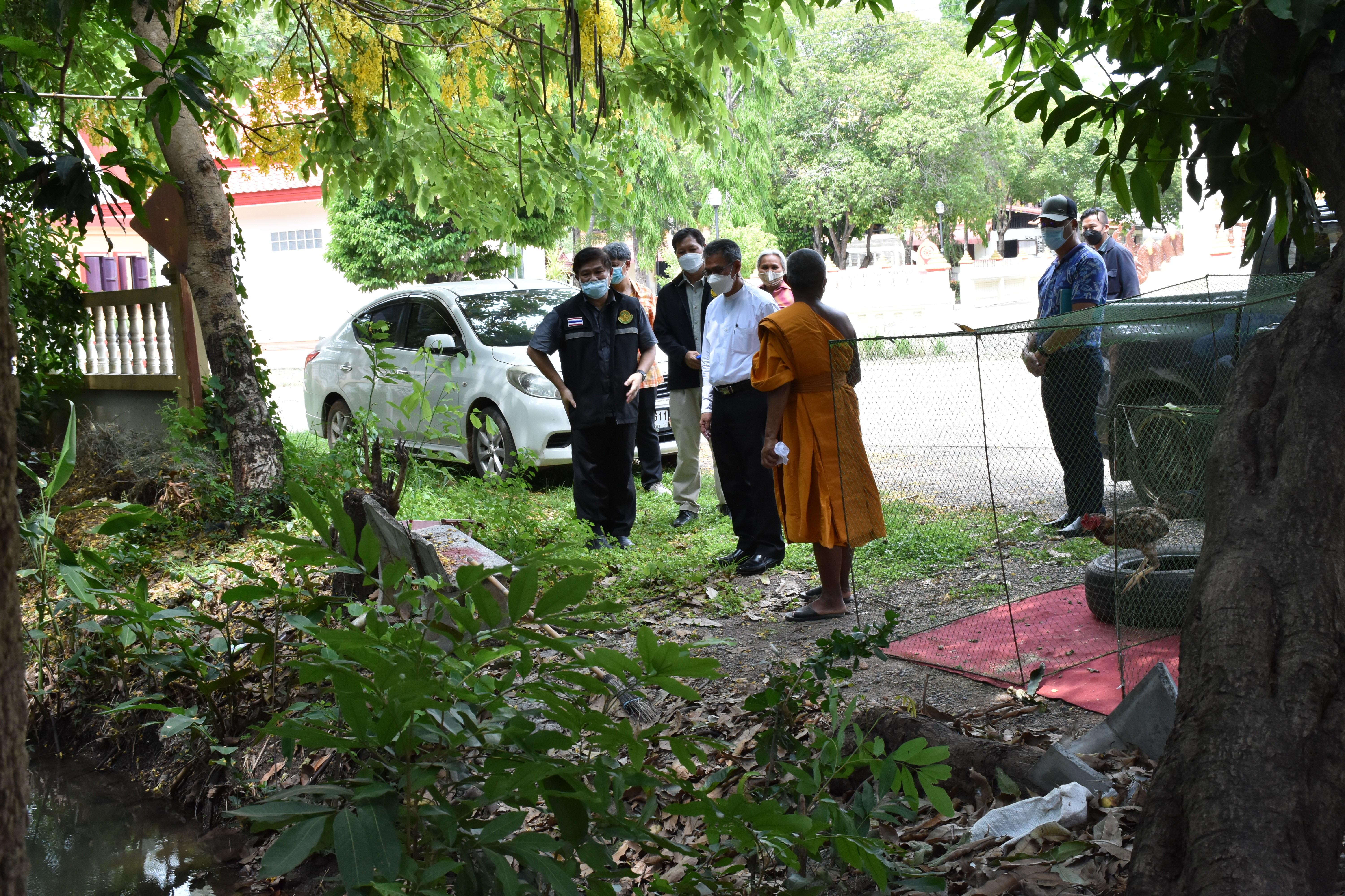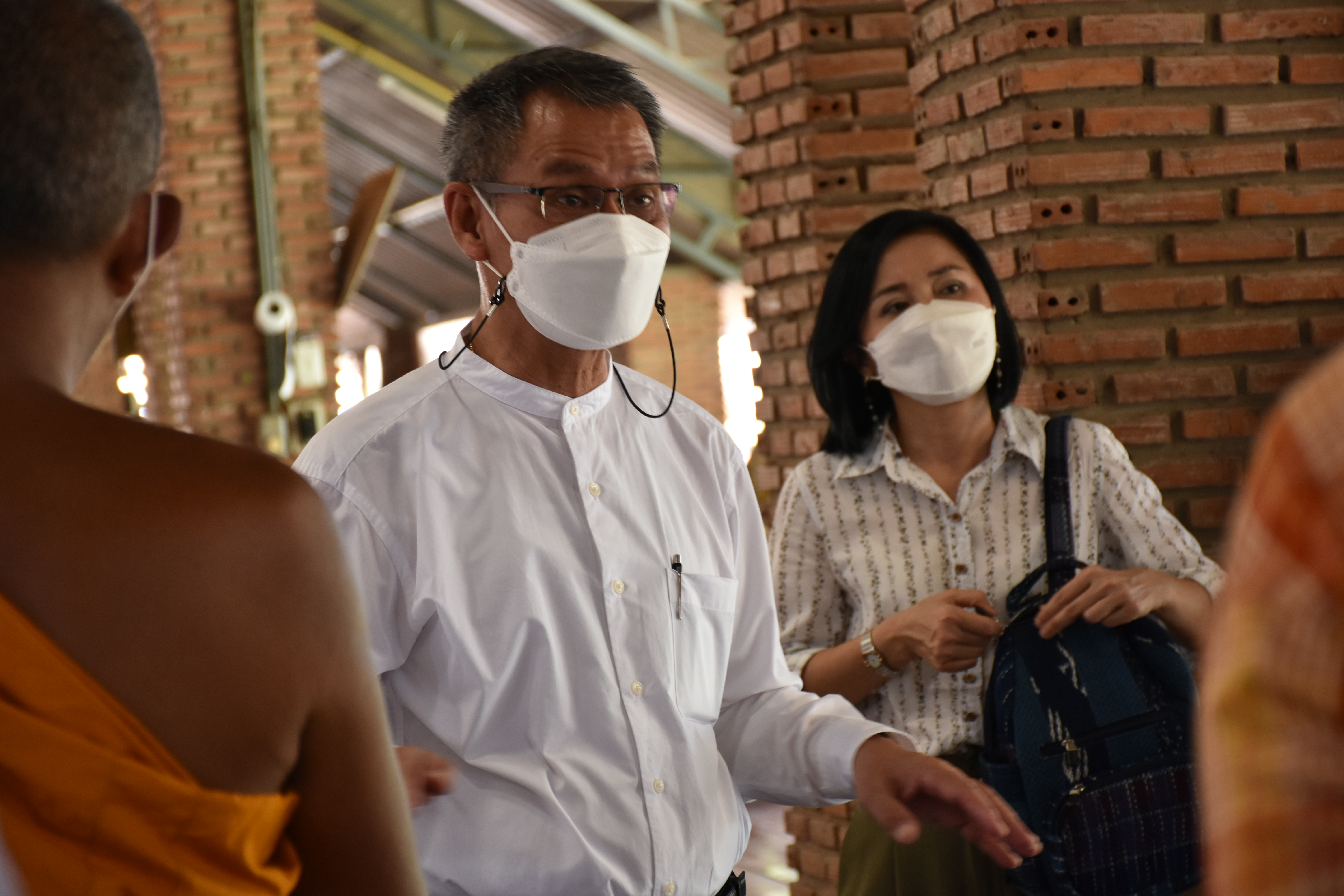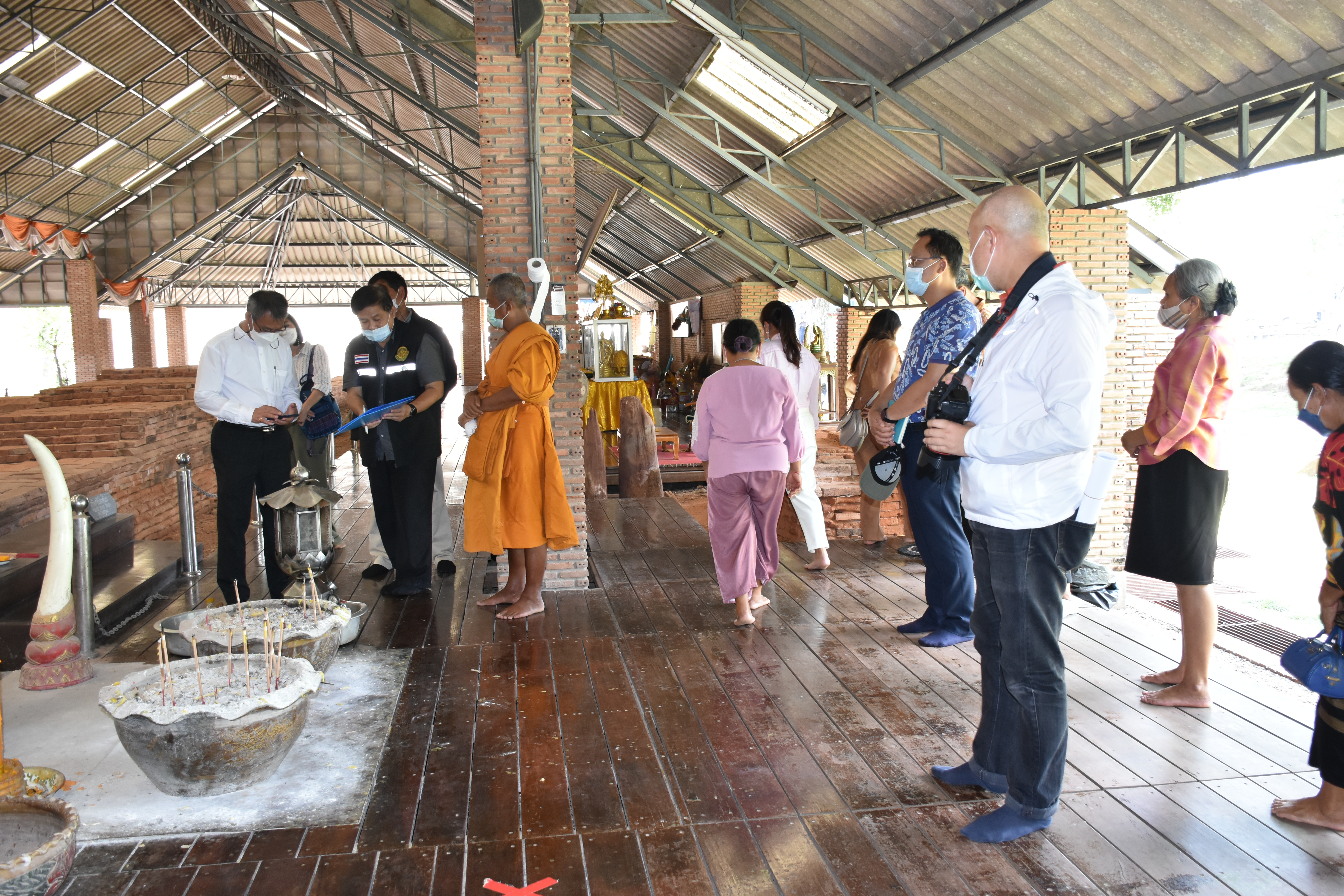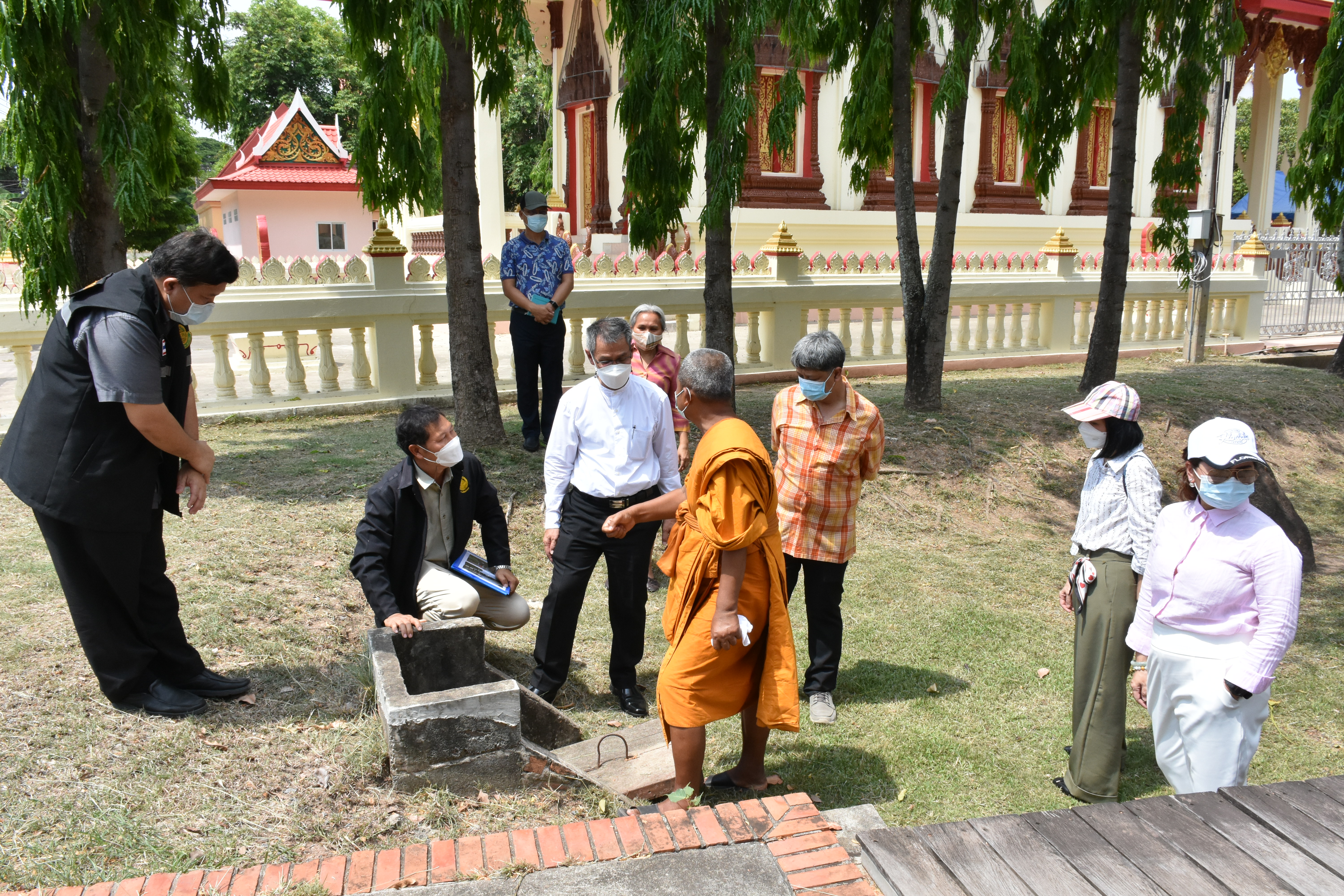 นายกิตติพันธ์ พานสุวรรณ อธิบดีกรมศิลปากร ลงพื้นที่ตรวจดูความเสียหายและหาแนวทางการบูรณะพระนอนหินทรายสมัยทวารวดี ที่เกิดความชื้นขององค์พระ สาเหตุจากระดับนํ้าใต้ดิน