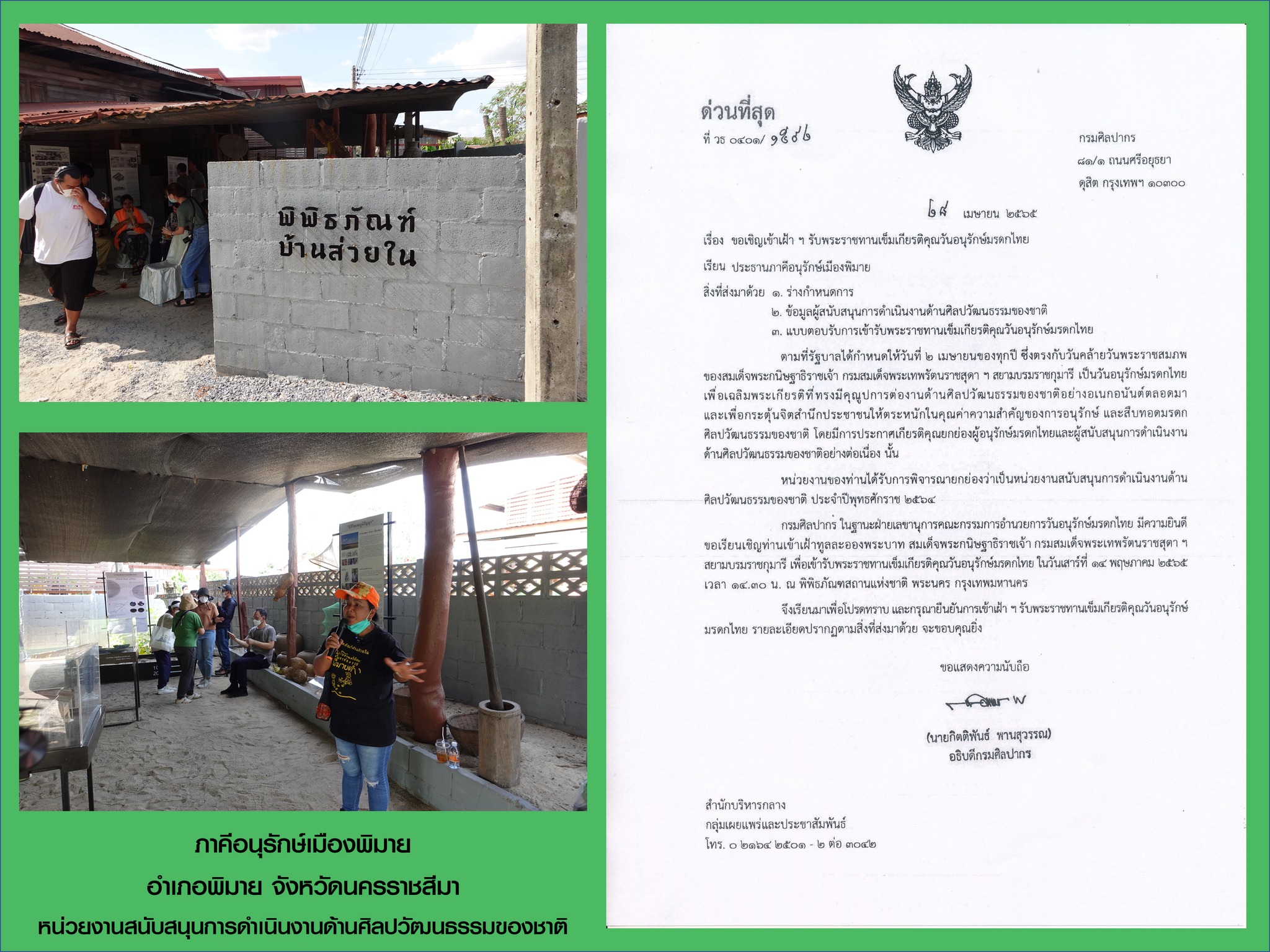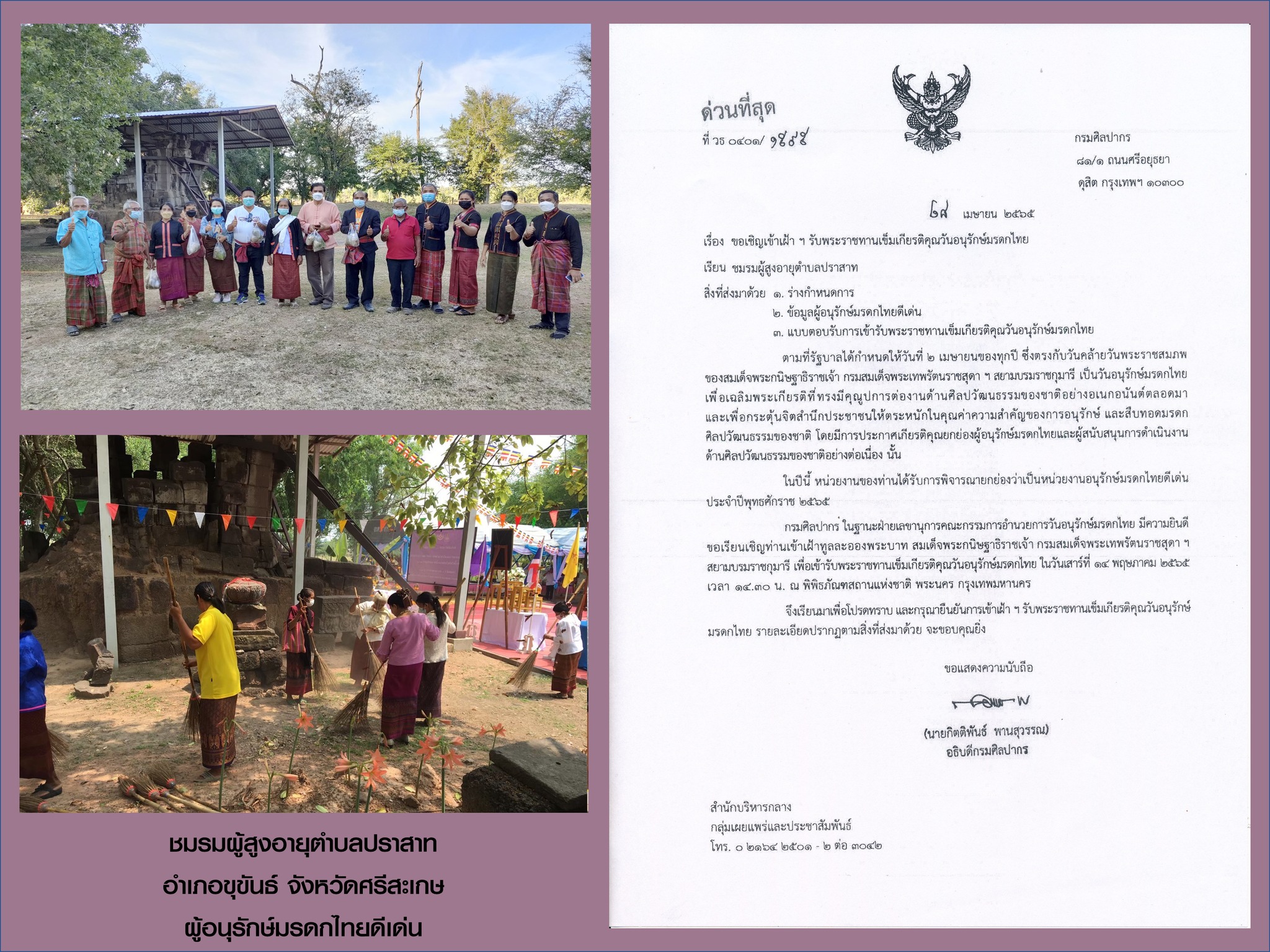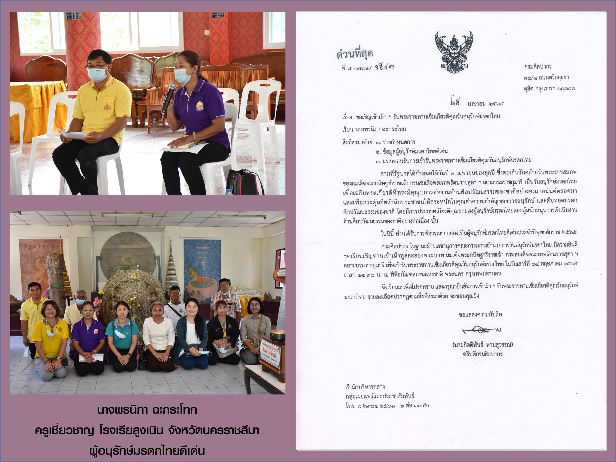 ขอแสดงความยินดี กับ บุคคลและเครือข่ายภาคประชาชน ในพื้นที่รับผิดชอบของ สำนักศิลปากรที่ 10 นครราชสีมา ที่ได้รับการพิจารณายกย่องเป็น ผู้อนุรักษ์มรดกไทย และ ผู้สนับสนุนการดำเนินงานด้านศิลปวัฒนธรรมของชาติ ประจำปีพุทธศักราช 2564-2565