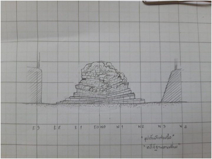 ๓. รูปด้านทิศเหนือ เจดีย์ฐานสี่เหลี่ยม (กู่ใหญ่) เจดีย์ฐานหกเหลี่ยม (กู่น้อย)