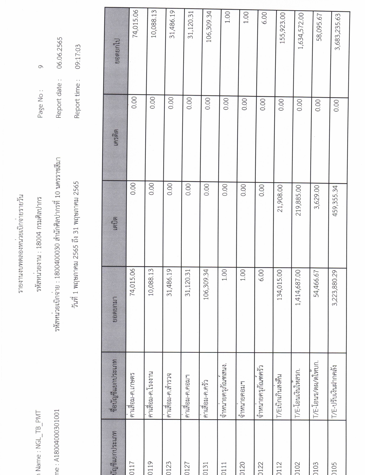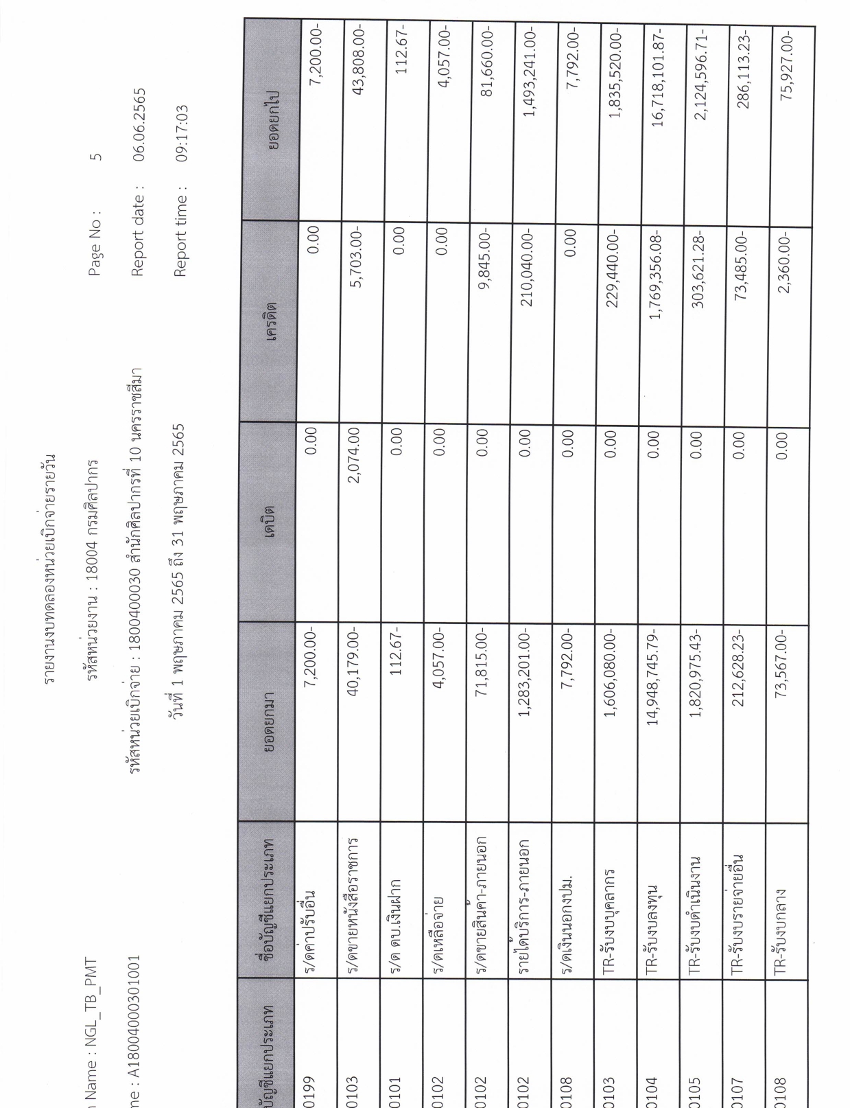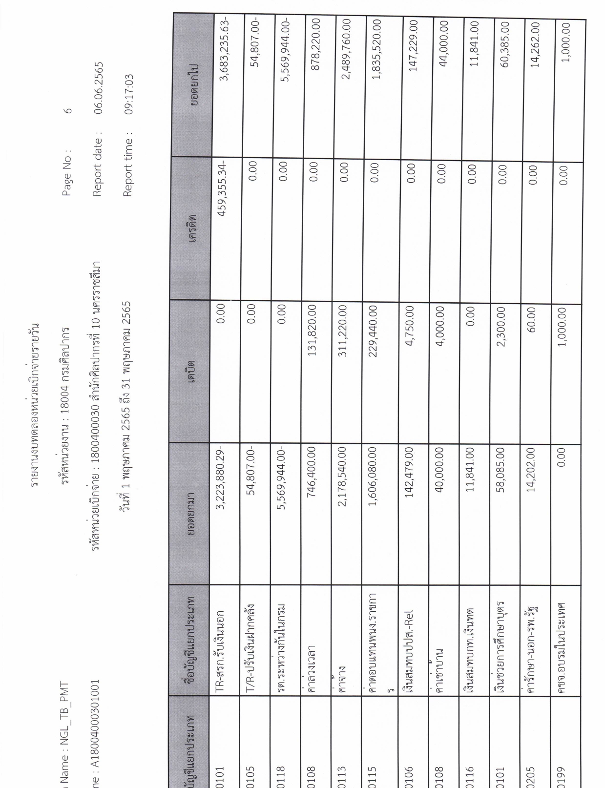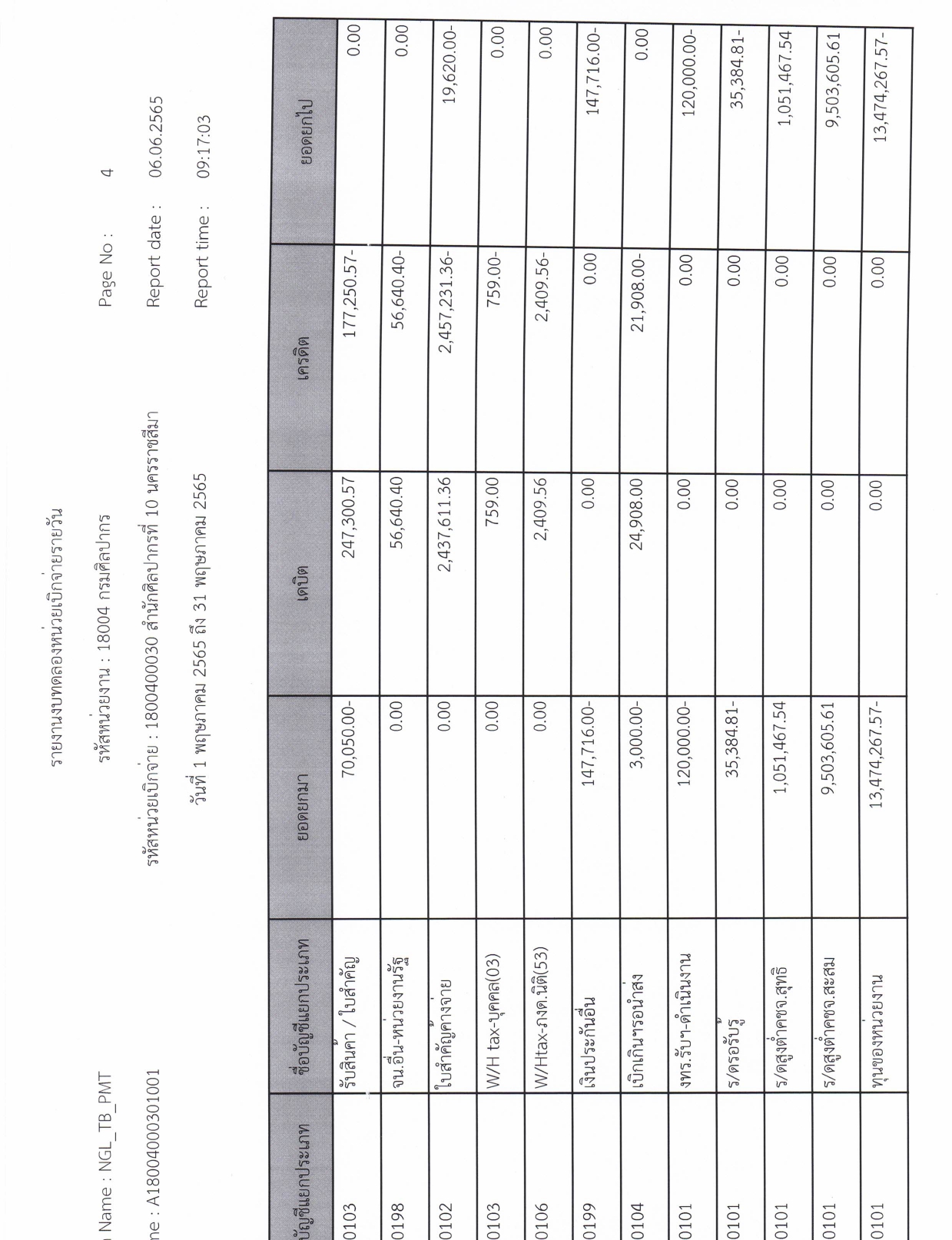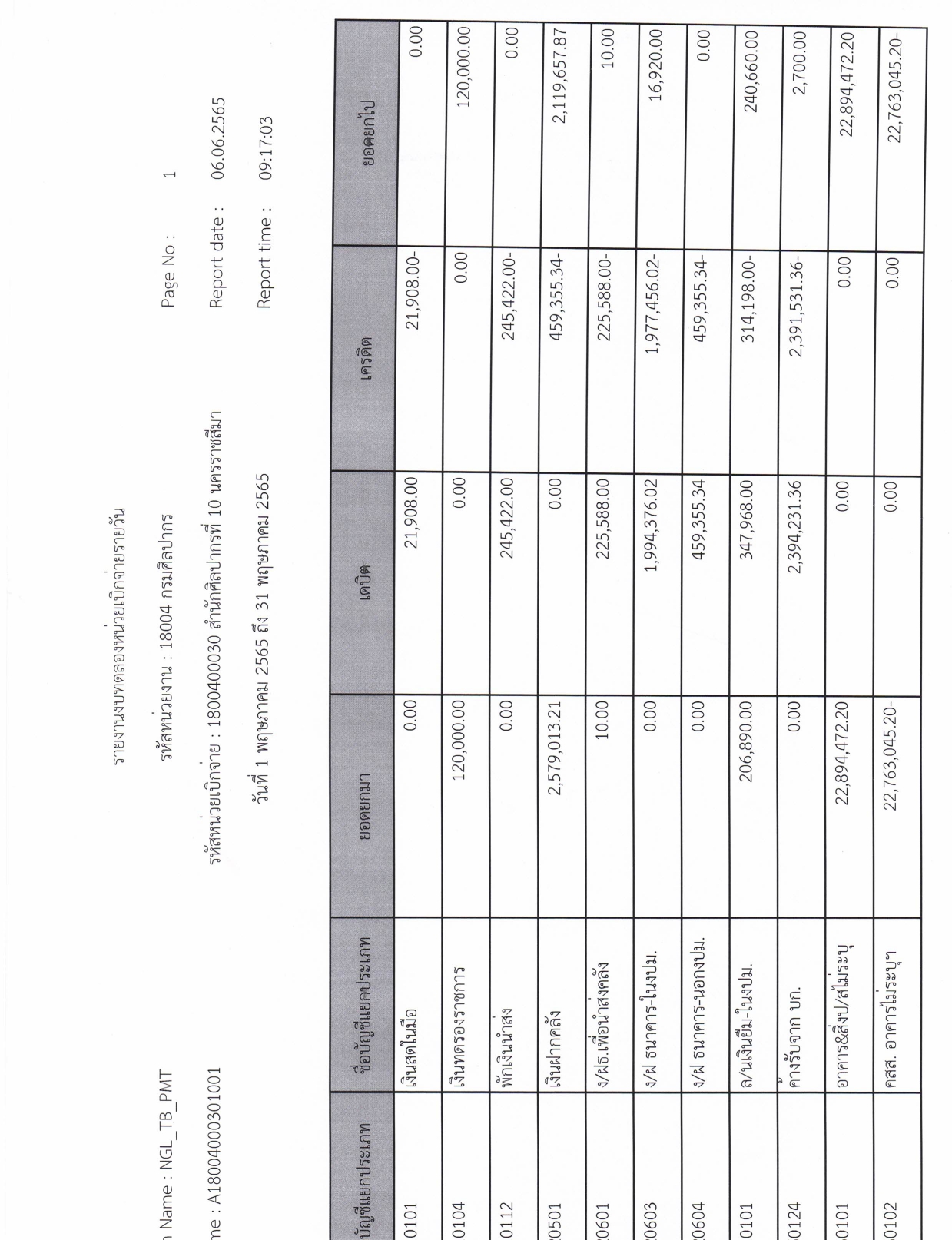 รายละเอียดงบทดลองประจำเดือน พฤษภาคม ๒๕๖๕