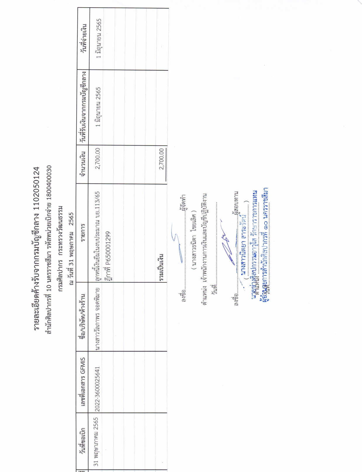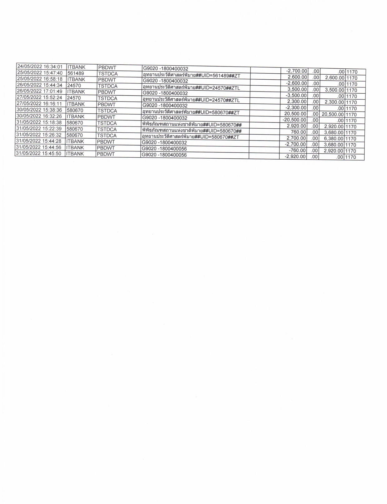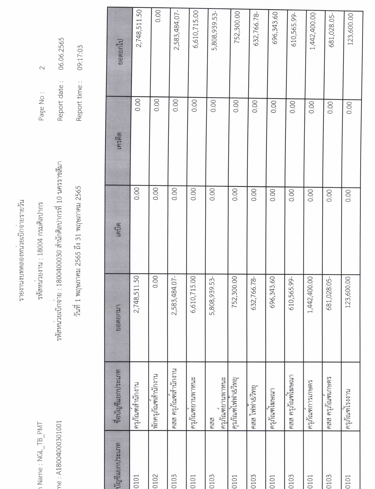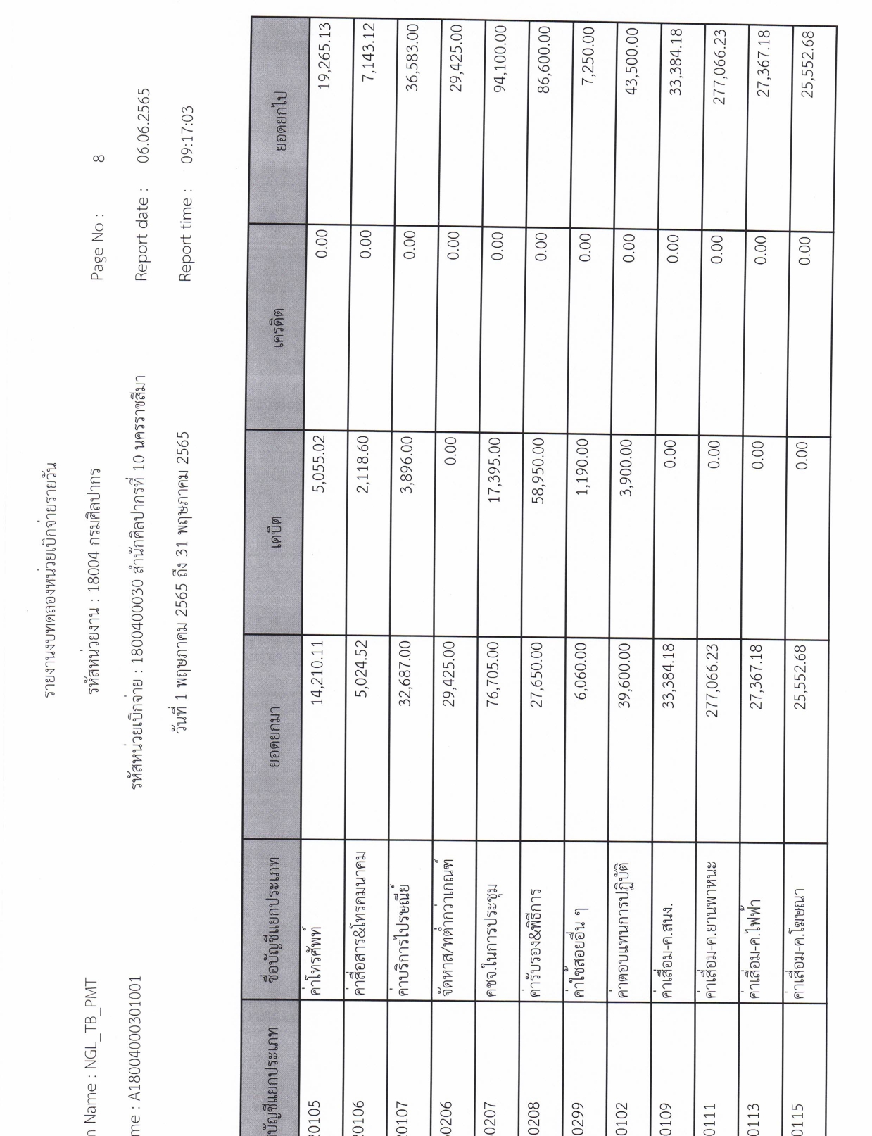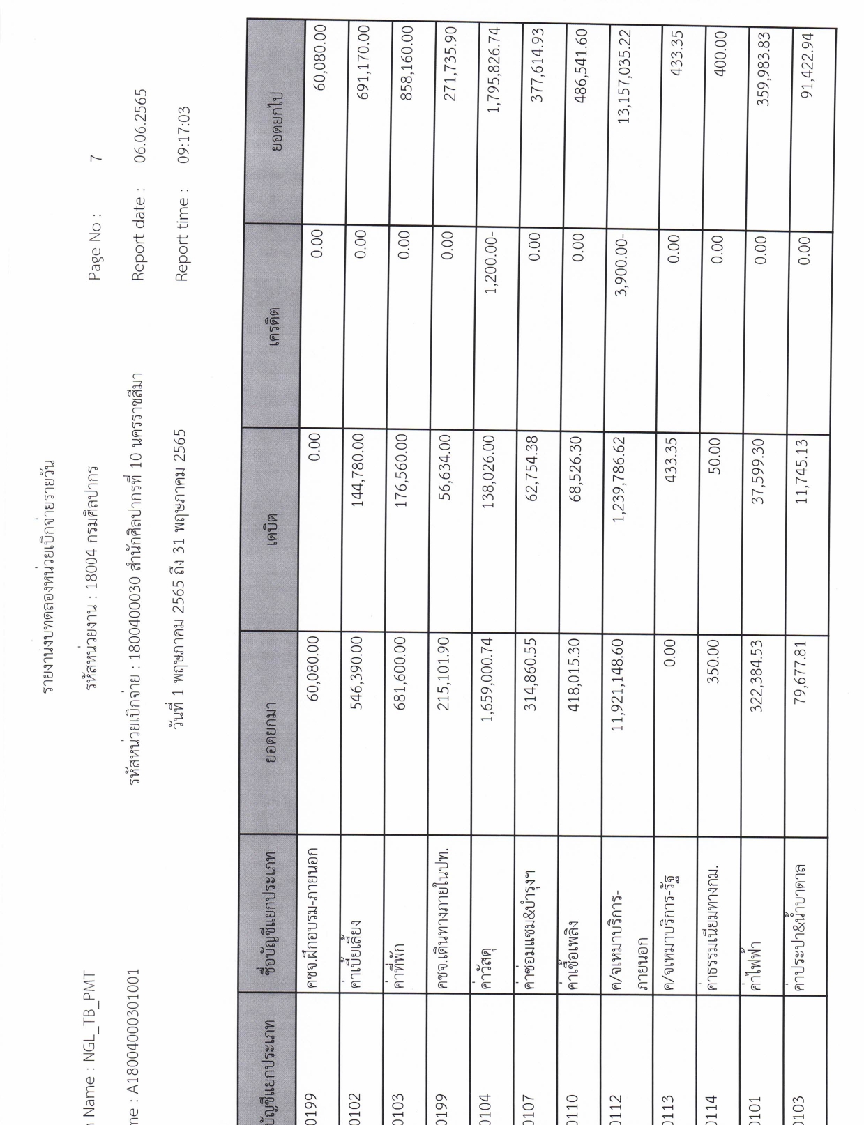 รายละเอียดงบทดลองประจำเดือน พฤษภาคม ๒๕๖๕