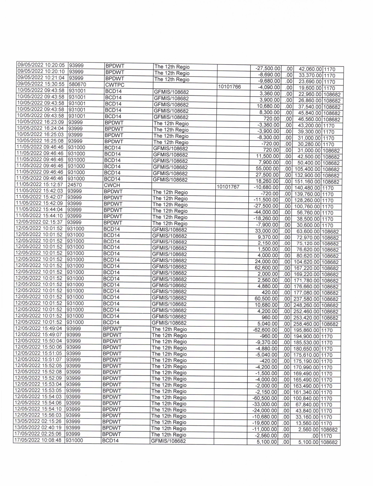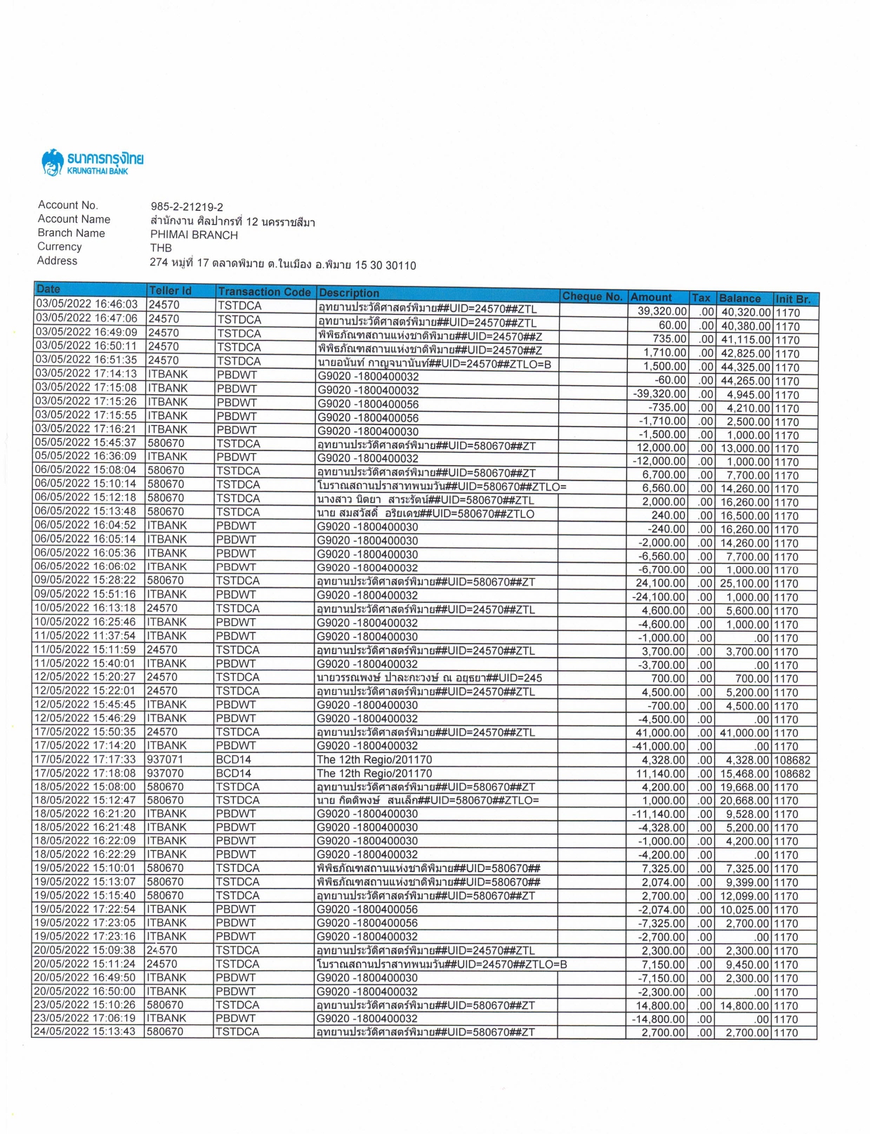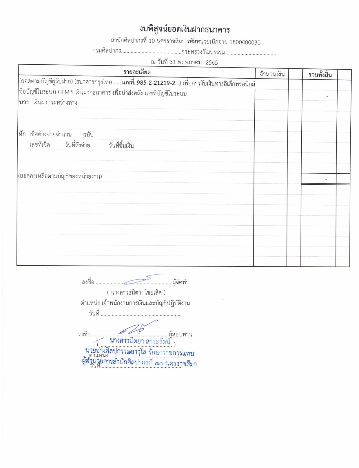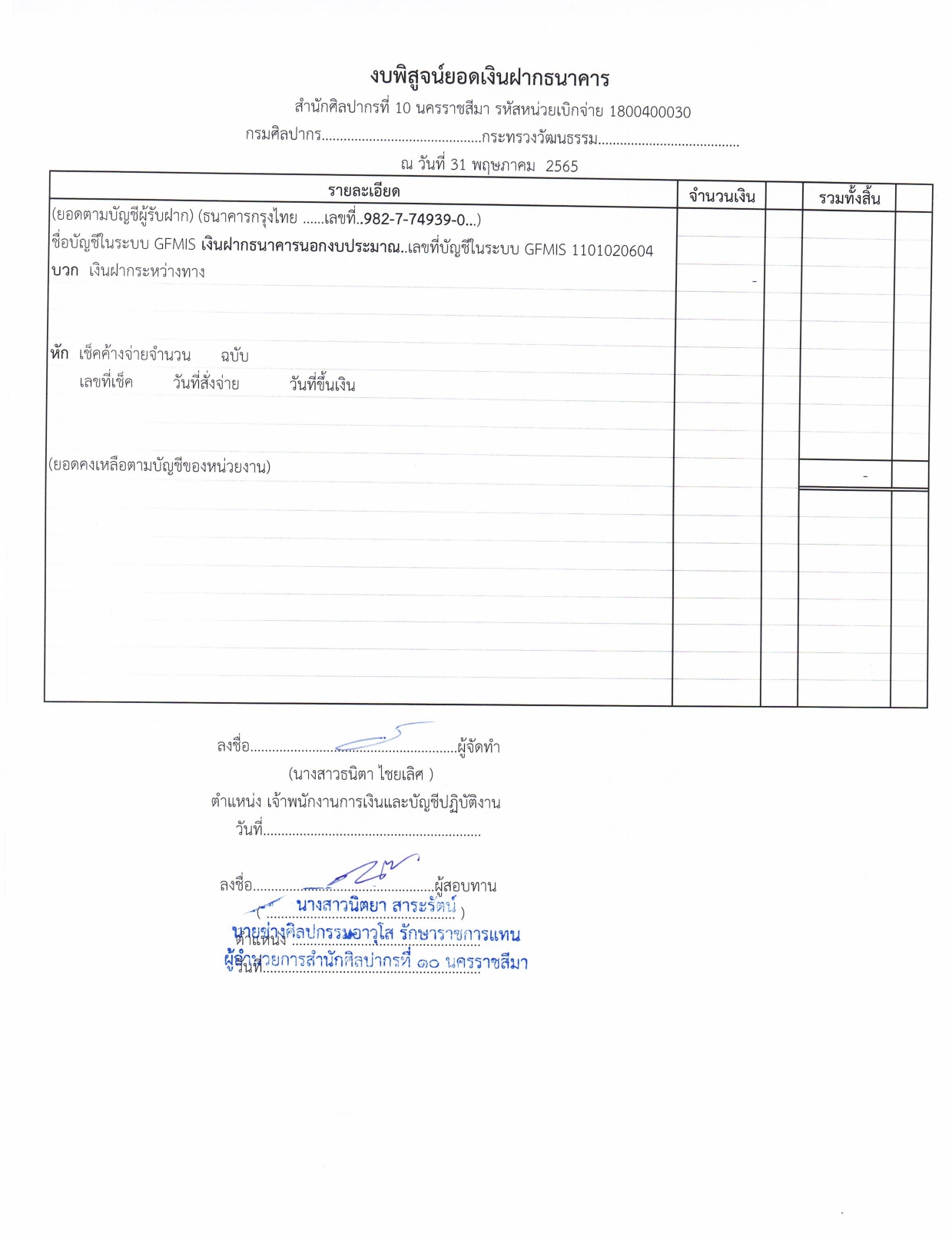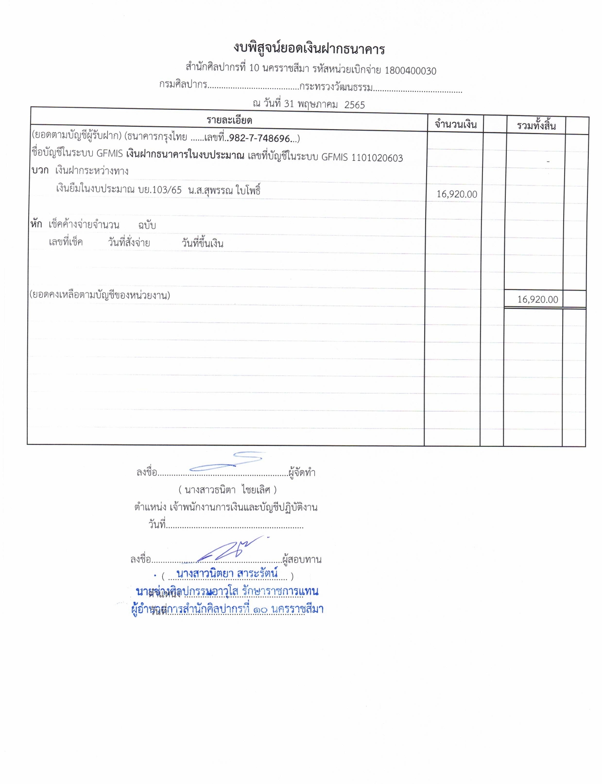 รายละเอียดงบทดลองประจำเดือน พฤษภาคม ๒๕๖๕