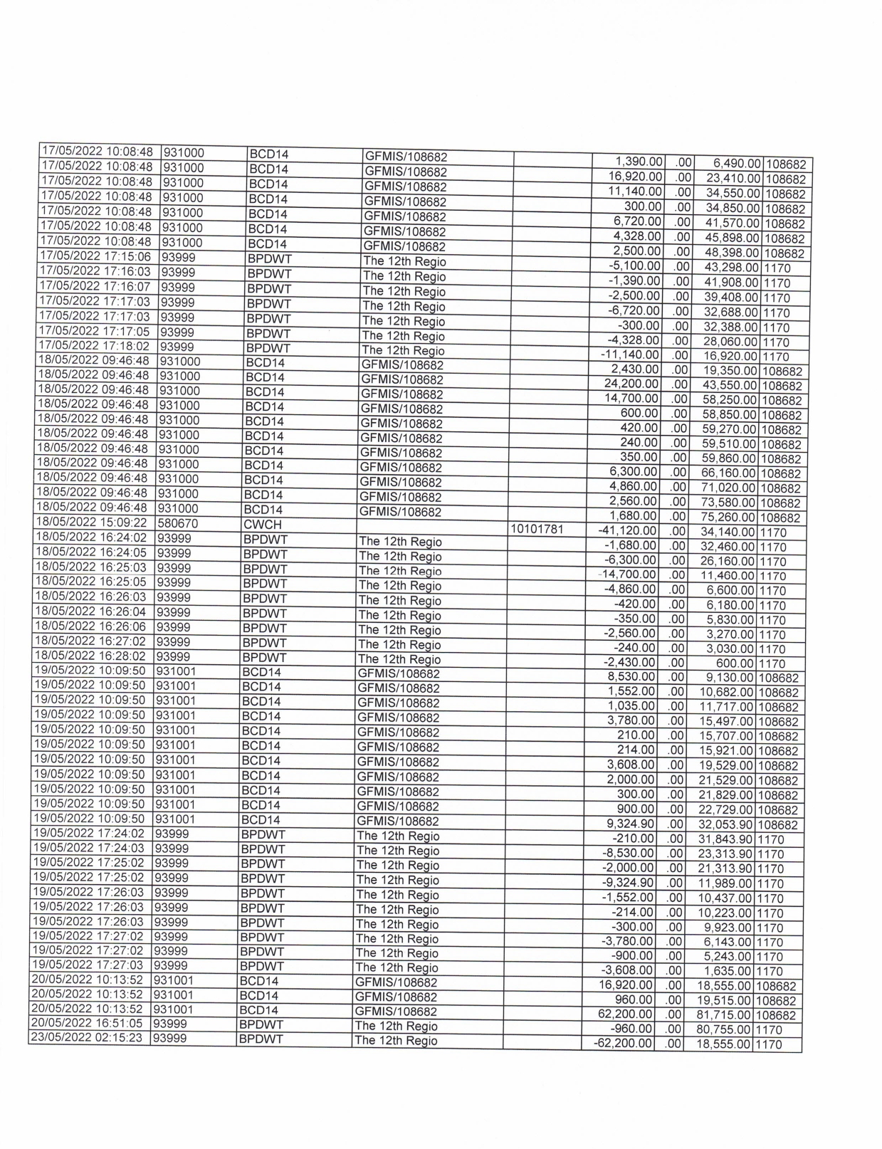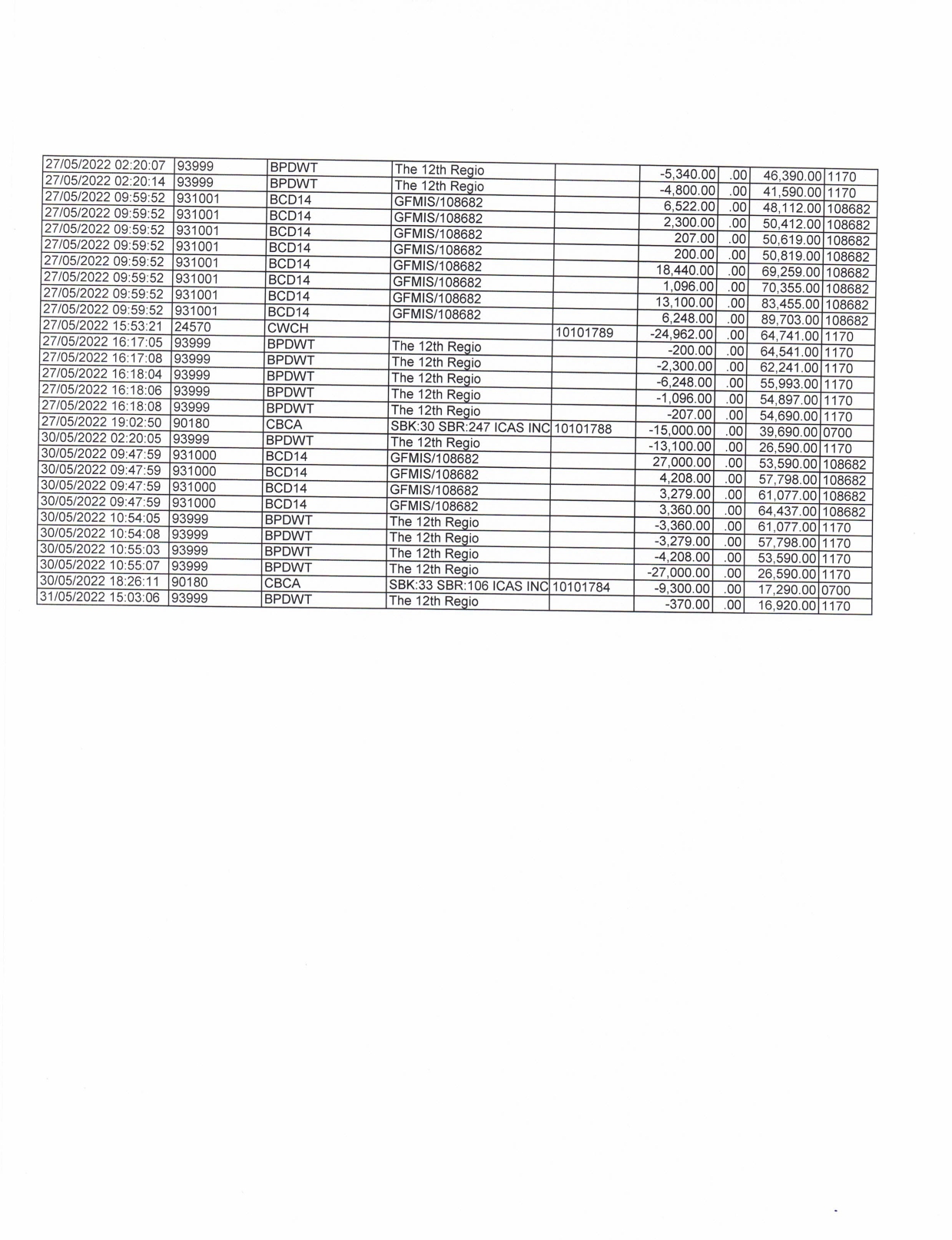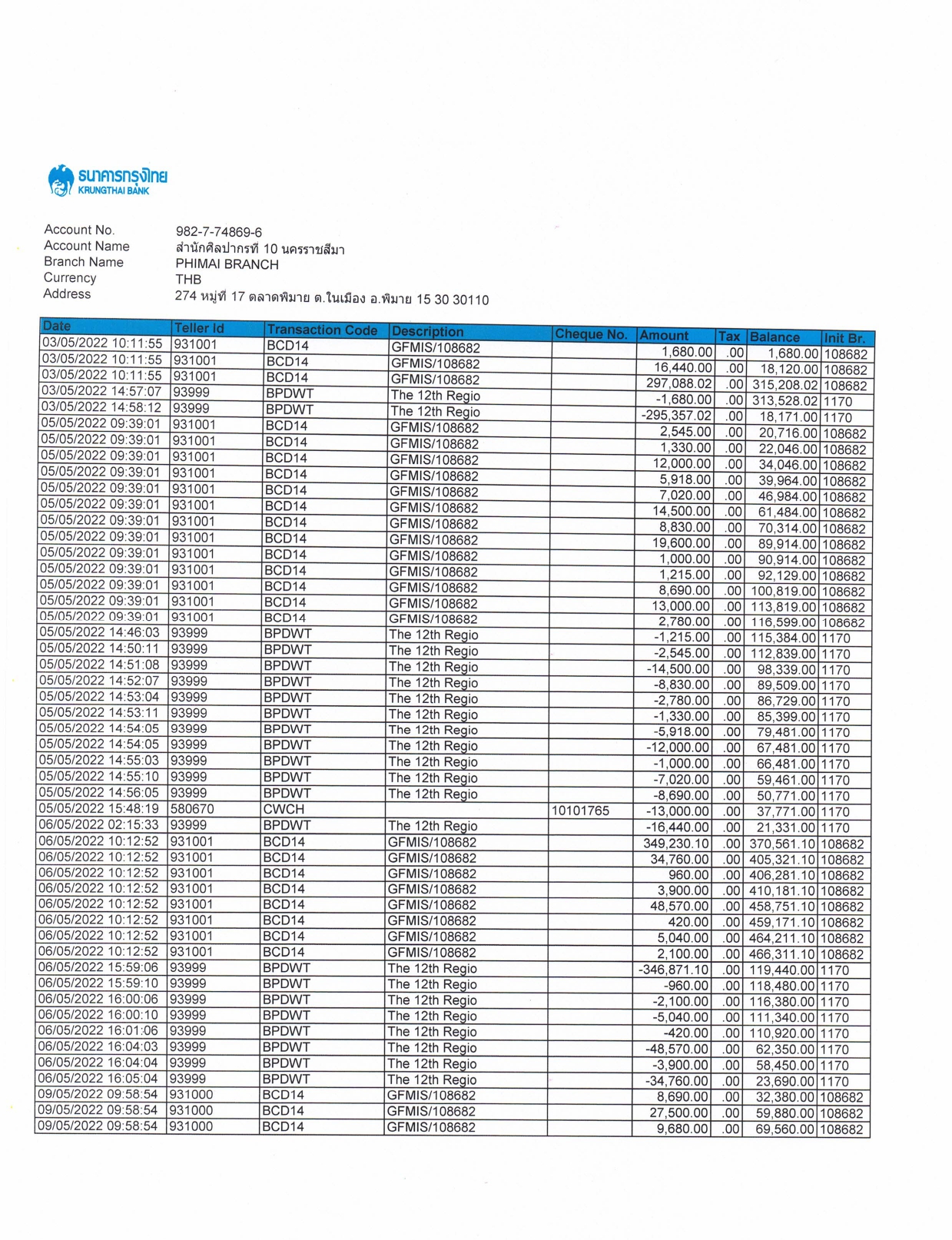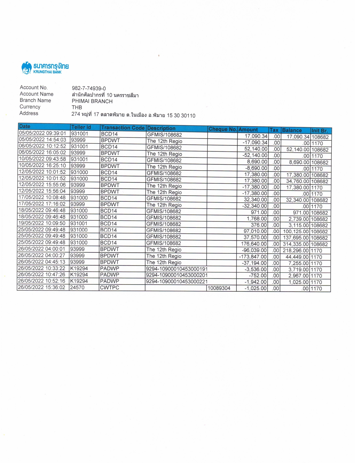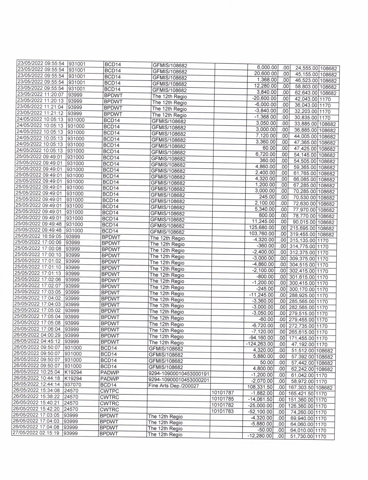 รายละเอียดงบทดลองประจำเดือน พฤษภาคม ๒๕๖๕