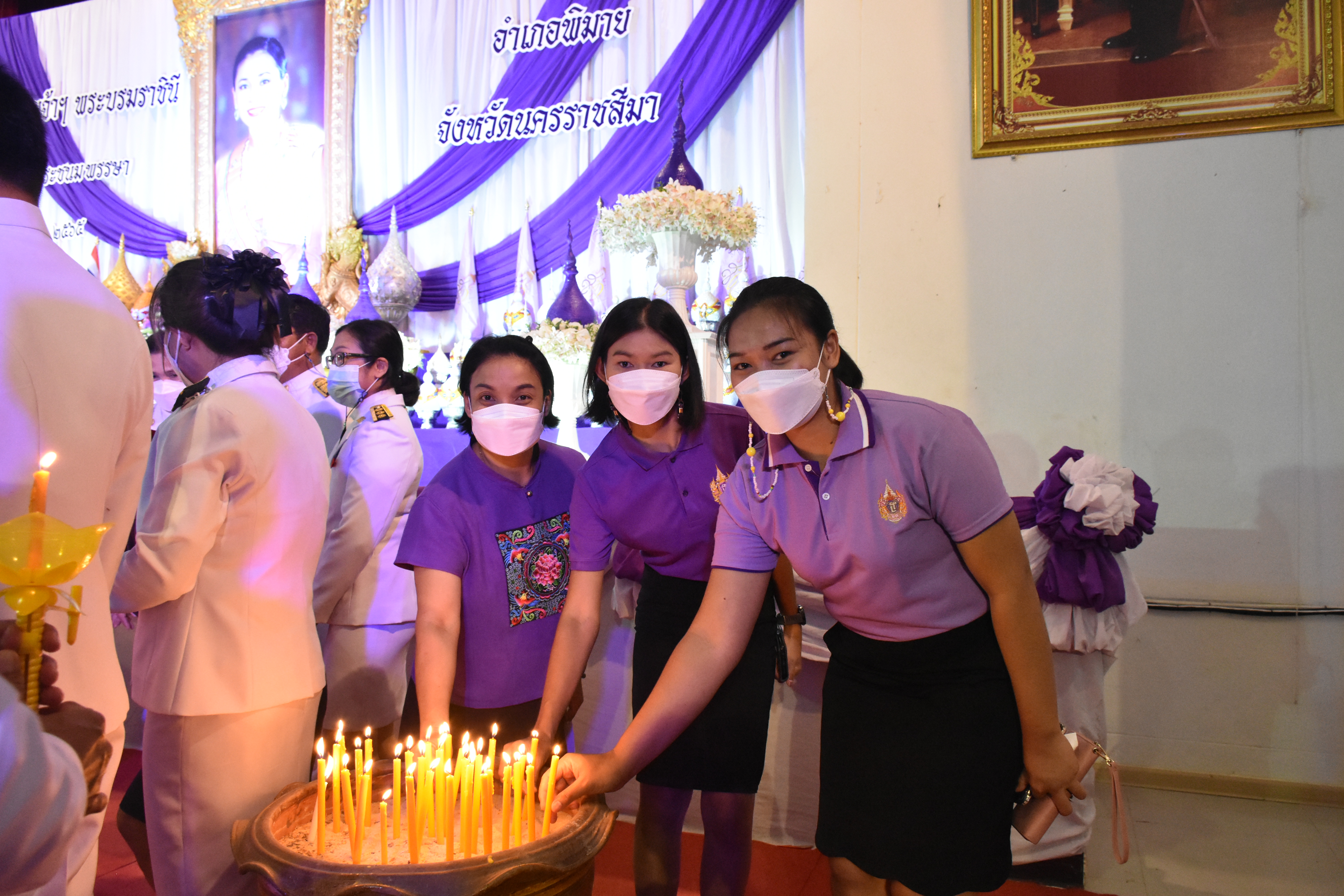พิธีถวายเครื่องราชสักการะและวางพานพุ่ม และพิธีจุดเทียนถวายพระพรชัยมงคล เนื่องในโอกาสวันเฉลิมพระชนมพรรษา สมเด็จพระนางเจ้าสุทิดา พัชรสุธาพิมลลักษณ พระบรมราชินี ๓ มิถุนายน ๒๕๖๕ ณ หอประชุมที่ว่าการอำเภอพิมาย จังหวัดนครราชสีมา