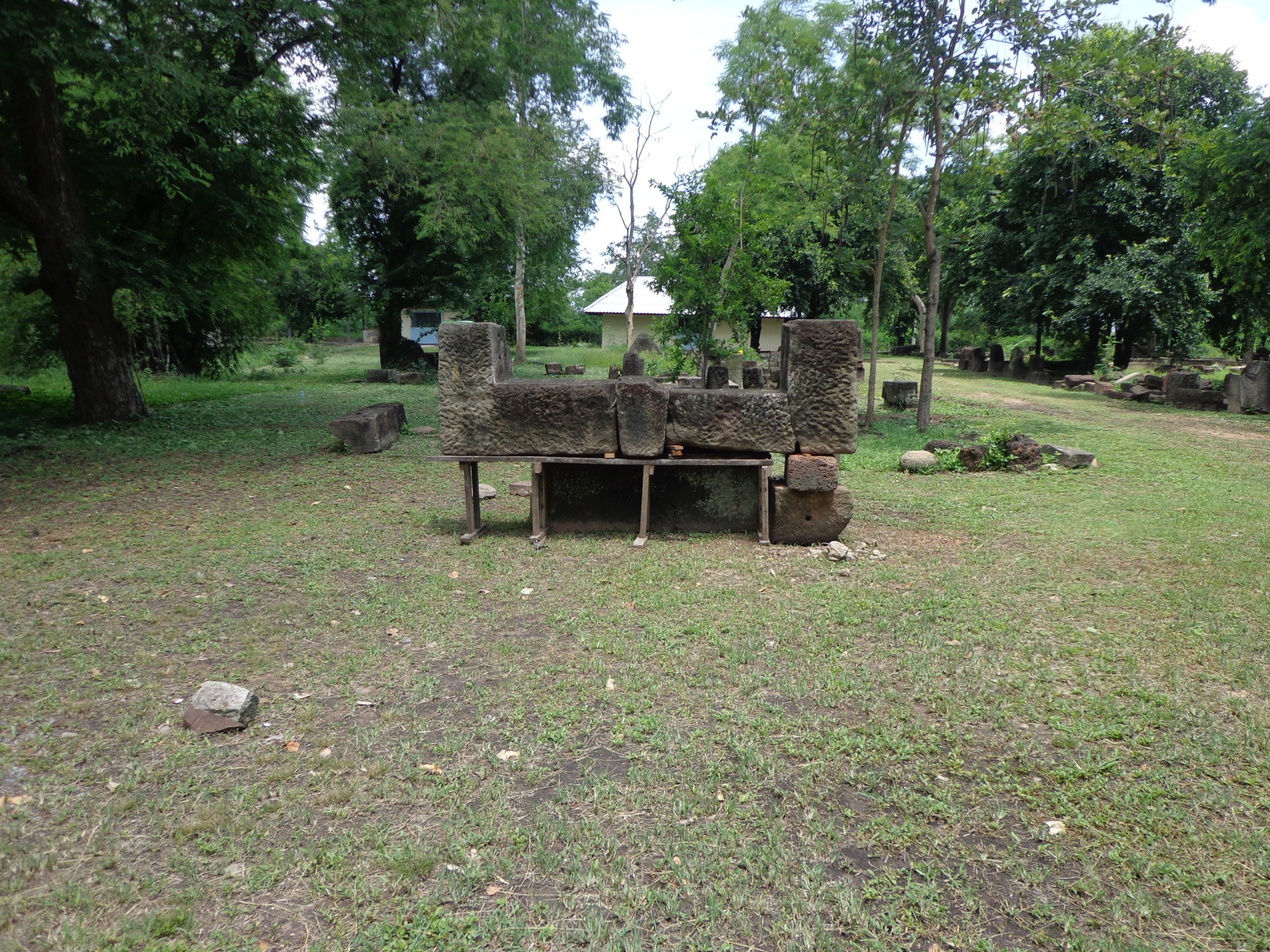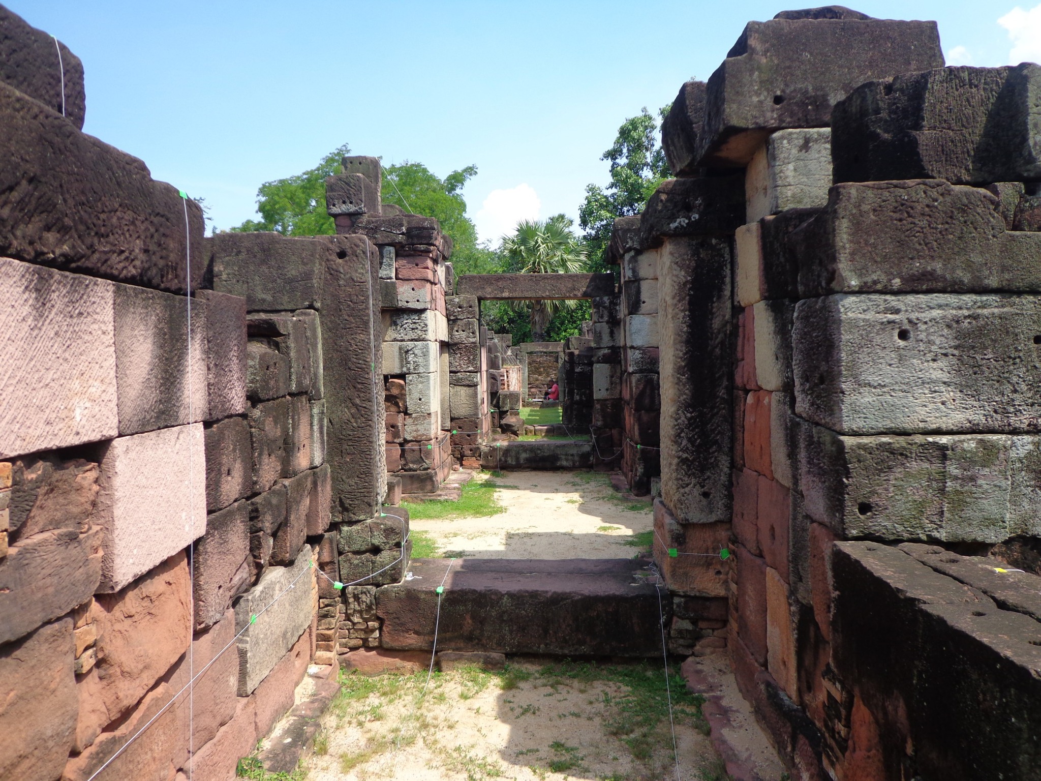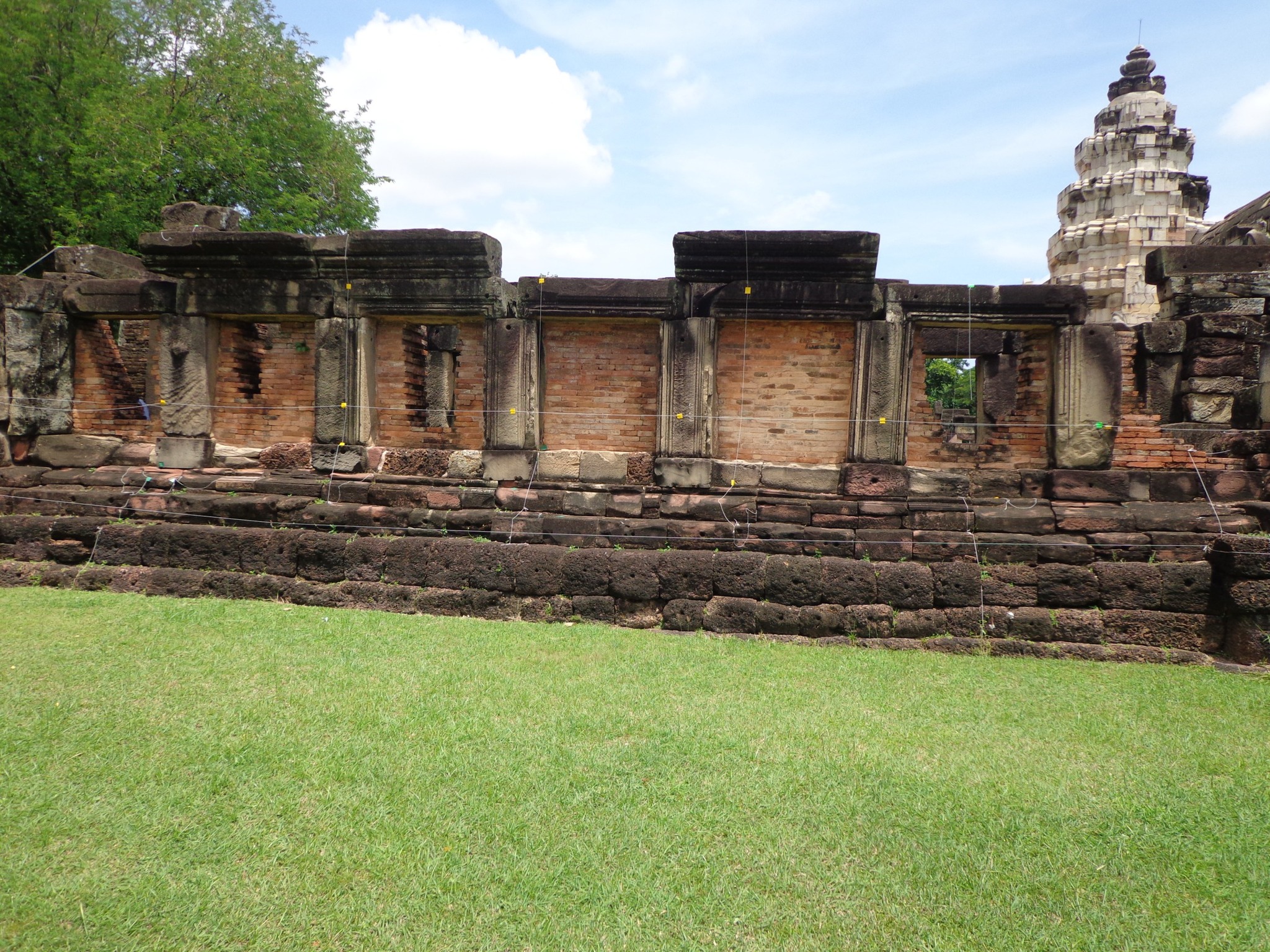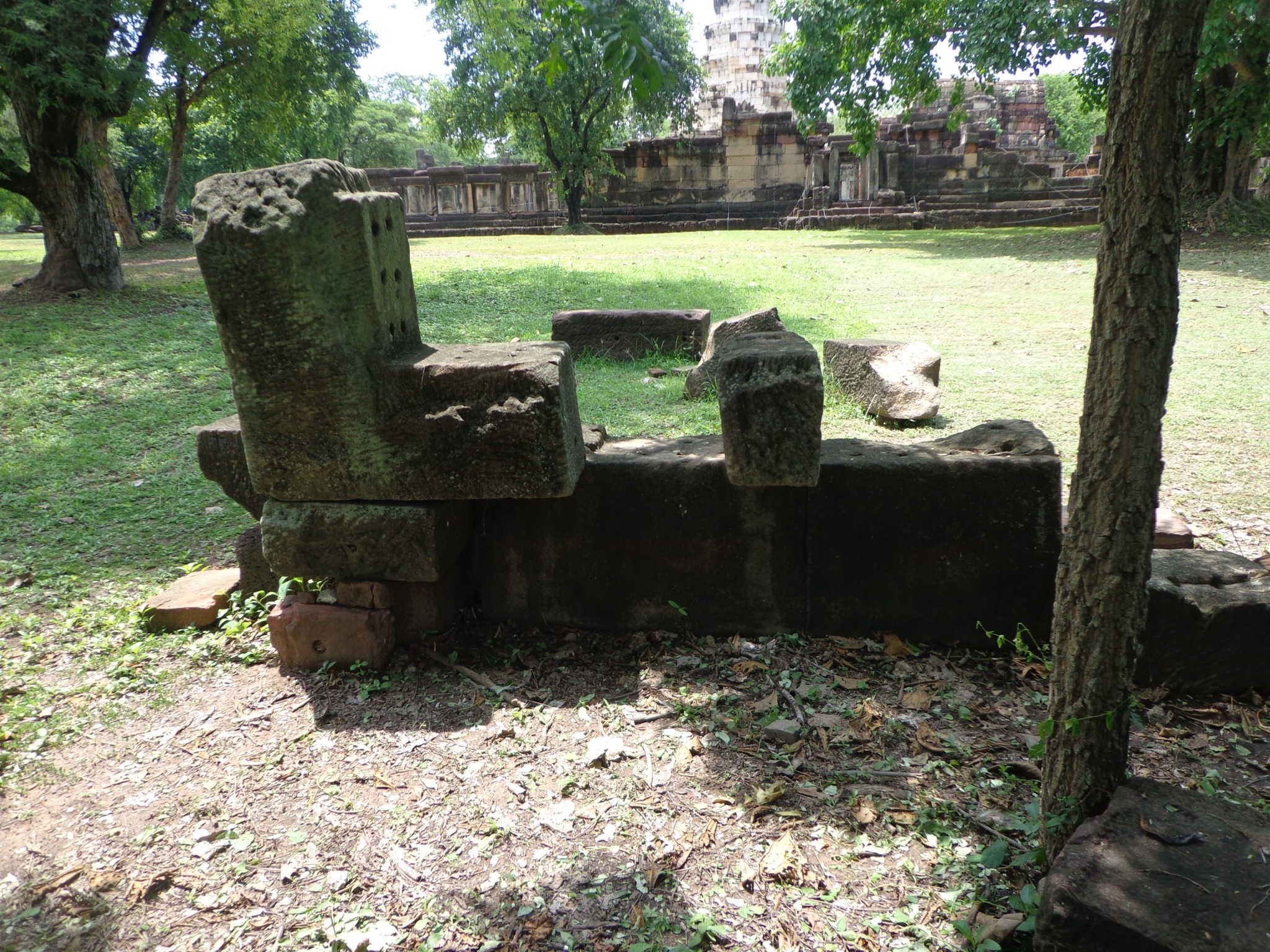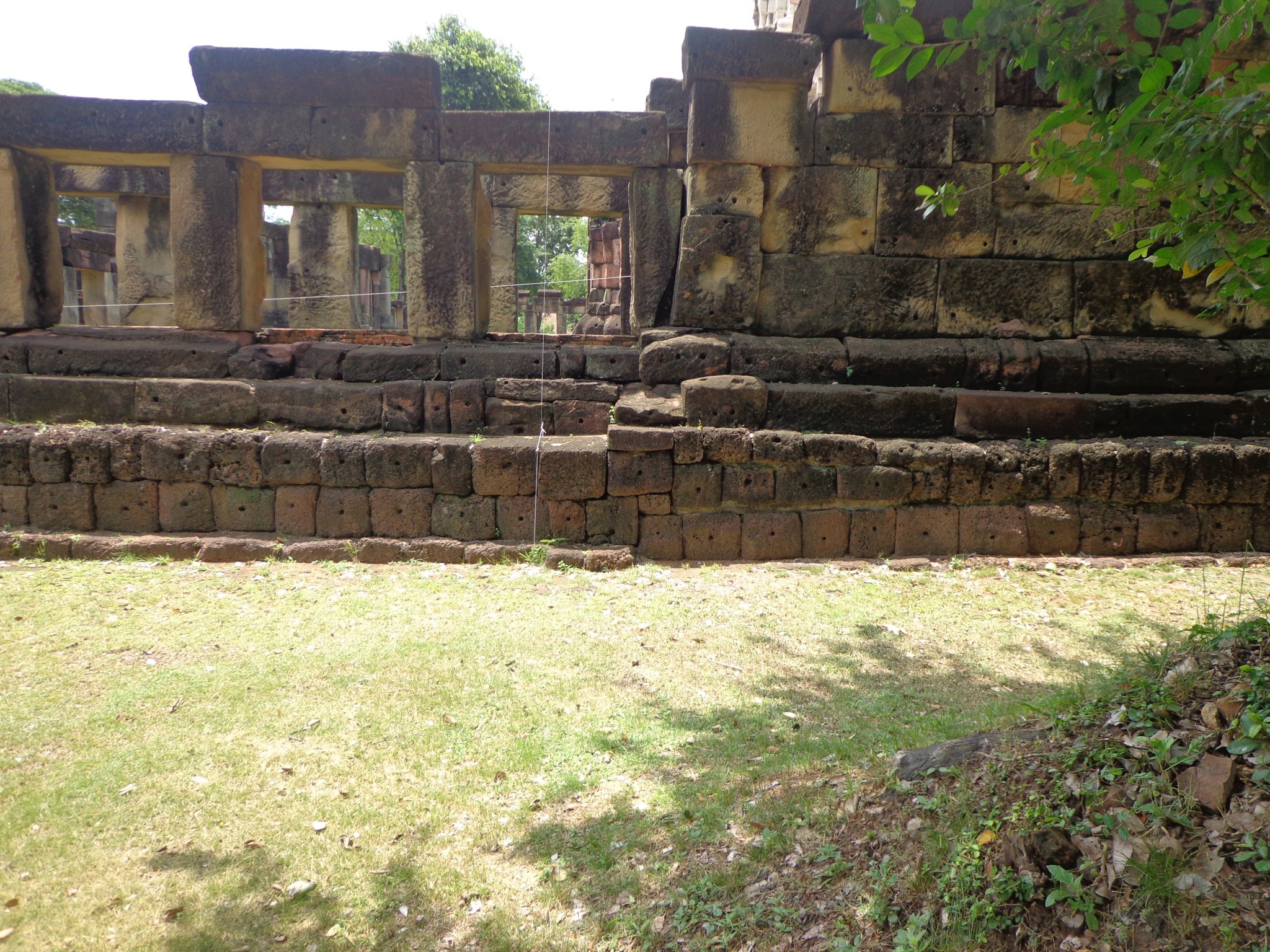 ชิ้นส่วนหินทดลองประกอบเป็นชั้นรองรับเชิงชายเหนือหน้าต่างหลอกระเบียงคต ด้านทิศตะวันออกซีกด้านทิศใต้