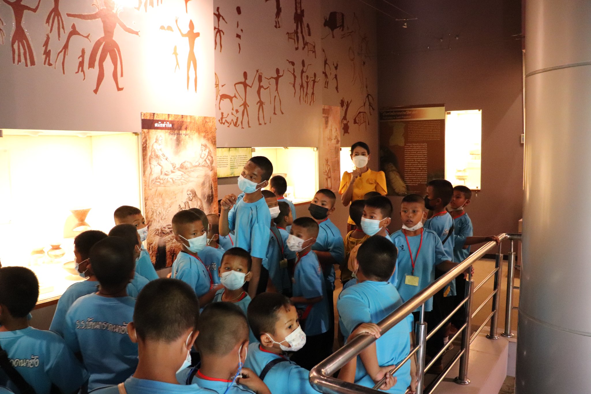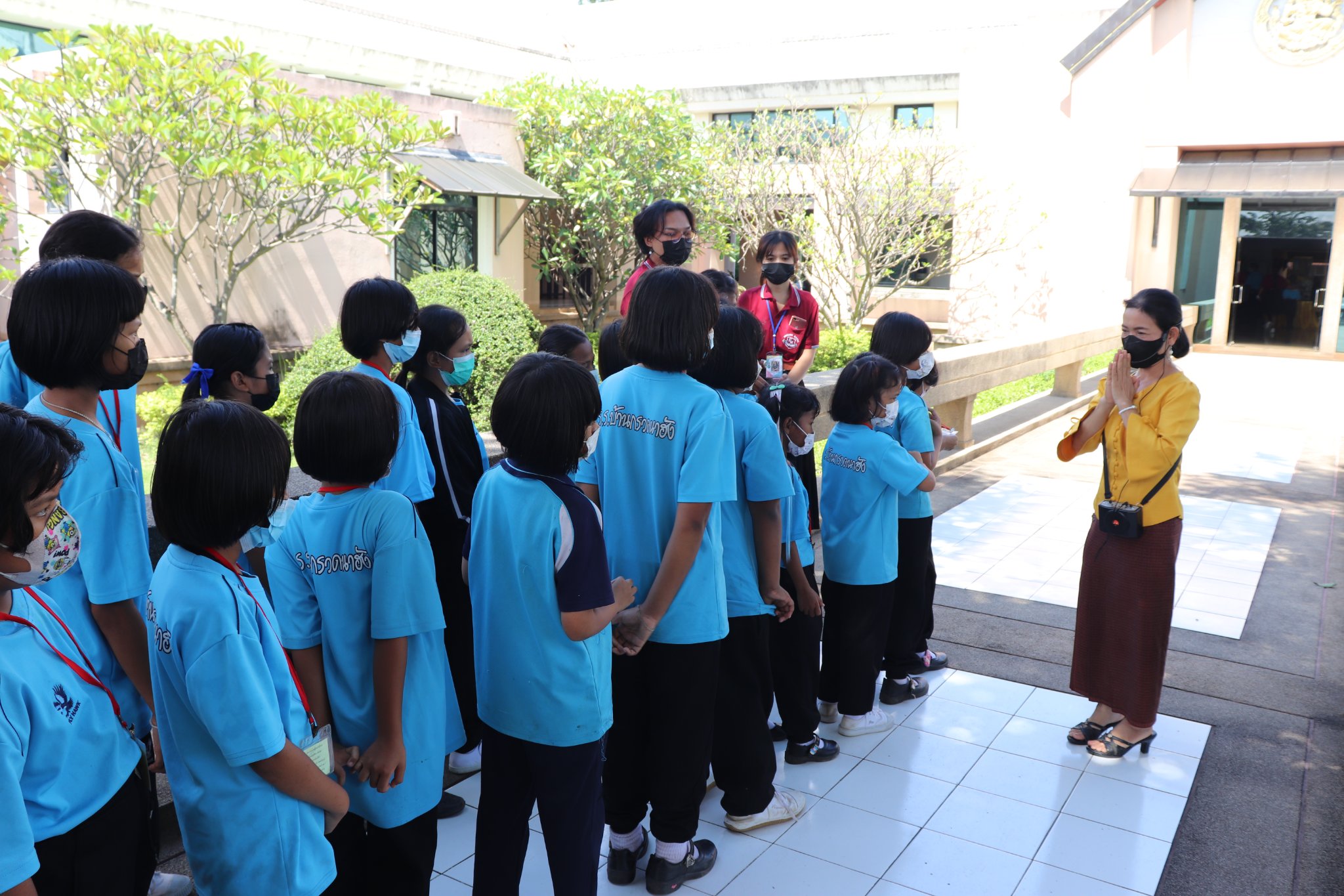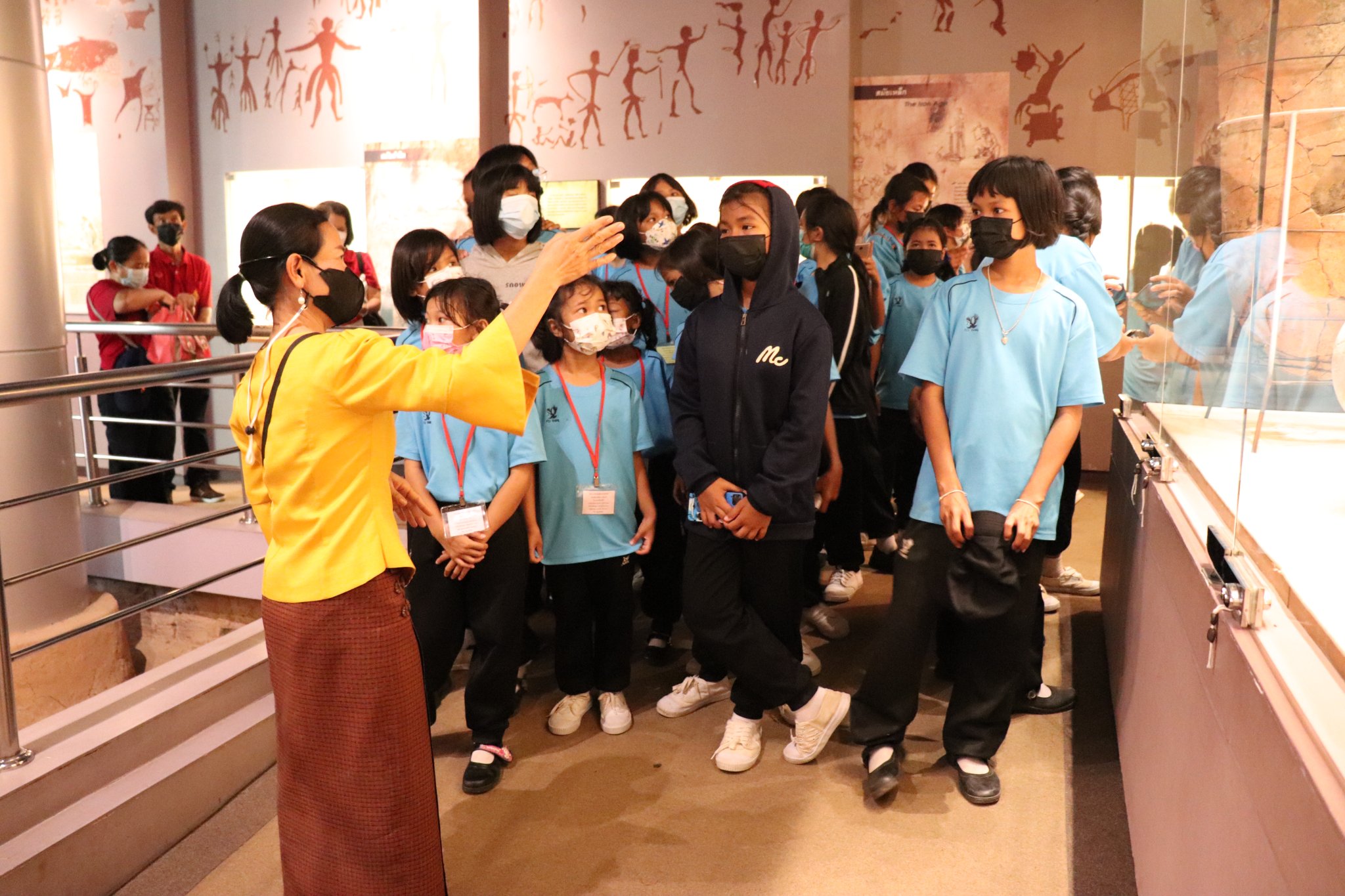 วันพุธที่ ๒๗ กรกฎาคม พ.ศ. ๒๕๖๕ เวลา ๑๔.๓๐ น. นักเรียนชั้นอนุบาล ๒ ถึงชั้นประถมศึกษาที่ ๖ โรงเรียนบ้านกรวดนาฮัง (ข็มแก้วบำรุง) ตำบลหนองขวาว อำเภอศีขรภูมิ จังหวัดสุรินทร์ จำนวน ๙๐ คน คุณครูจำนวน ๕ คน เข้าเยี่ยมชมพิพิธภัณฑสถานแห่งชาติ สุรินทร์ โดยแบ่งการบรรยายนำชมออกเป็น ๒ กลุ่มย่อย เพื่อป้องกันการแพร่ระบาดของเชื้อโควิด - ๑๙ อย่างเคร่งครัด โดยมีนางถนอม หลวงกลาง และนางสาวอภิญญา สุขใหญ่ พนักงานประจำห้อง ให้การต้อนรับและบรรยายนำชม