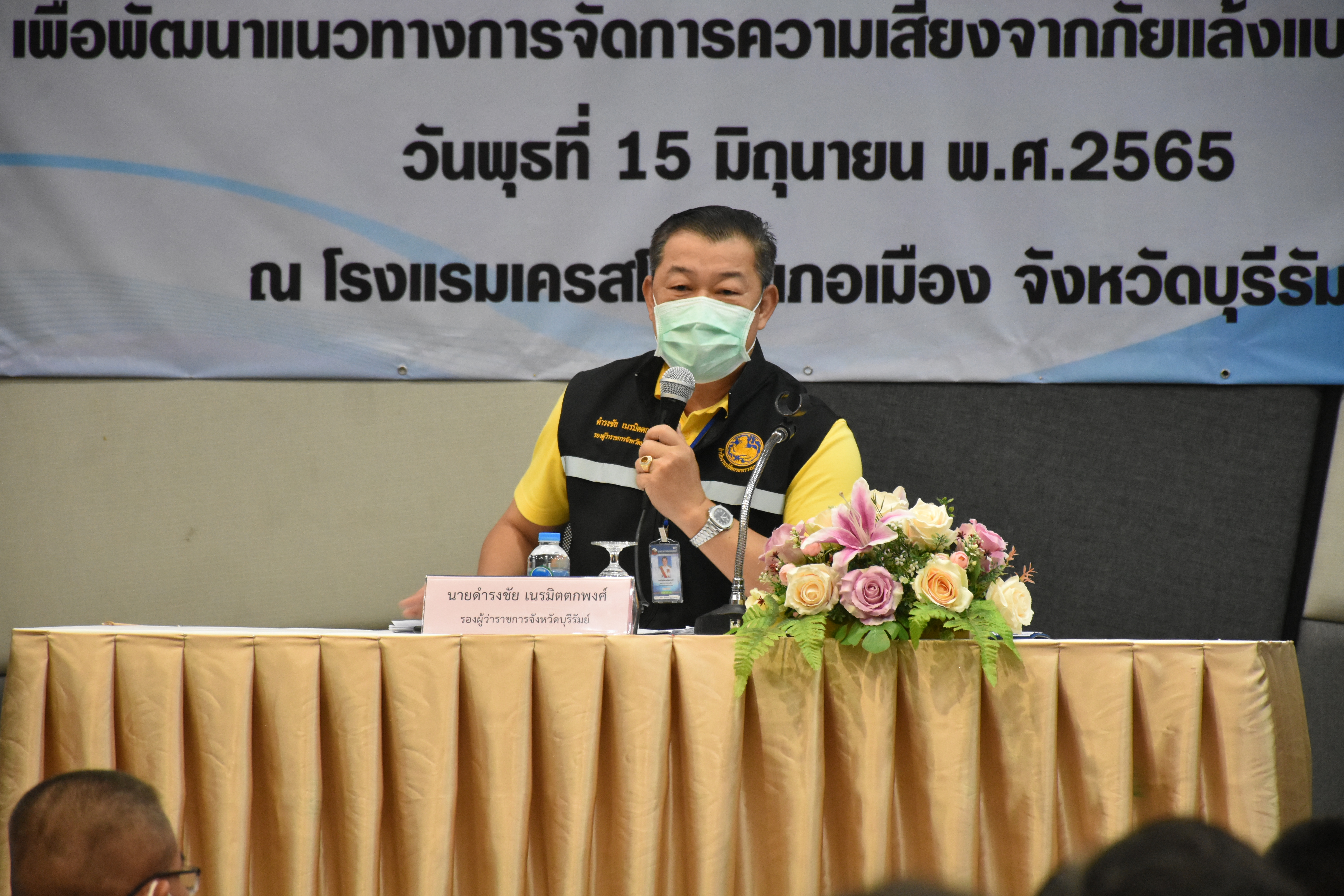 วันพุธที่ ๑๕ มิถุนายน ๒๕๖๕ นายทศพร ศรีสมาน ผู้อำนวยการสำนักศิลปากรที่ ๑๐ นครราชสีมา เข้าร่วมอภิปรายแนวทางการลดความเสี่ยงจากภัยแล้งระดับพื้นที่แบบบูรณาการเพื่อแก้ไขปัญหาและพัฒนาที่ยั่งยืน ในหัวข้อ...การใช้ประโยชน์ที่ดินที่เป็นโบราณสถานเพื่อการบริหารจัดการความเสี่ยงจากสาธารณภัย ของกรมป้องกันและบรรเทาสาธารณภัย โดยมีนายดำรงชัย เนรมิตตกพงศ์ รองผู้ว่าราชการจังหวัดบุรีรัมย์ เป็นประธาน ณ โรงแรมเครสโค อำเภอเมือง จังหวัดบุรีรัมย์